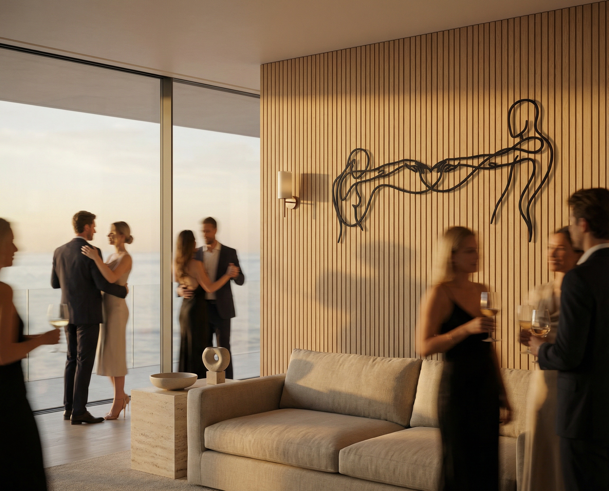 Heartline Exchange reduces connection to its clearest moment: two silhouettes extending toward one another until a shared touch becomes a heart. The scene reads as calm and intentional, capturing intimacy without narrative clutter and turning a simple gesture into a lasting symbol of bond and presence.