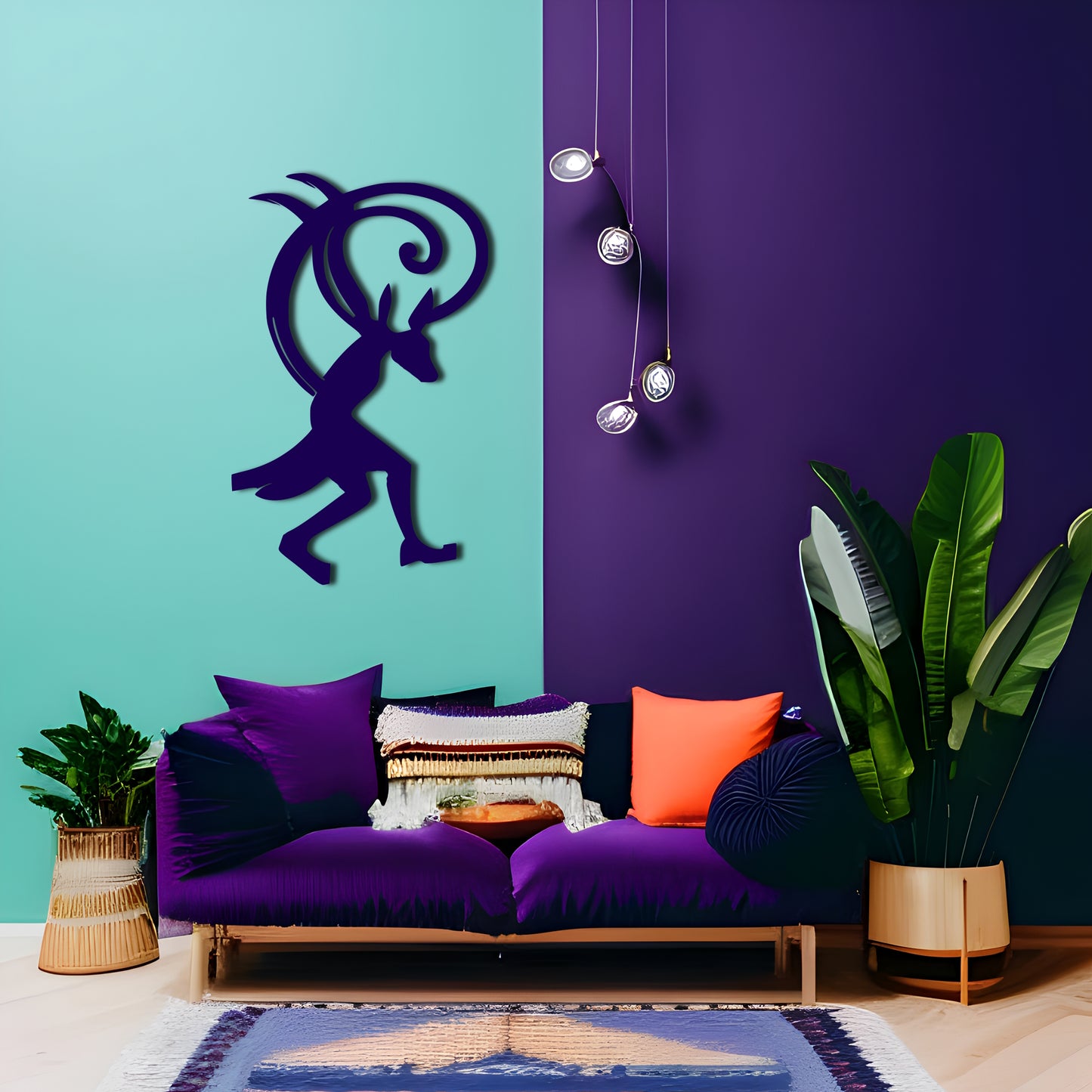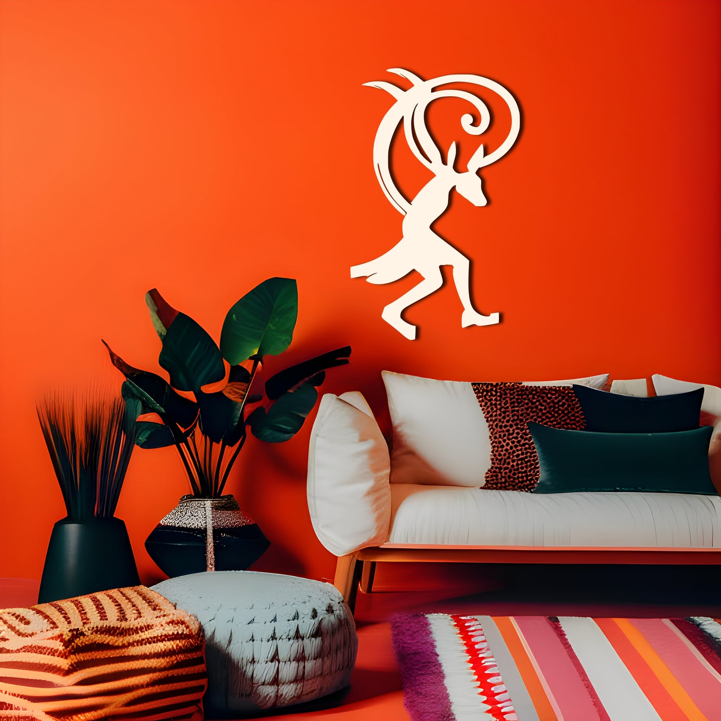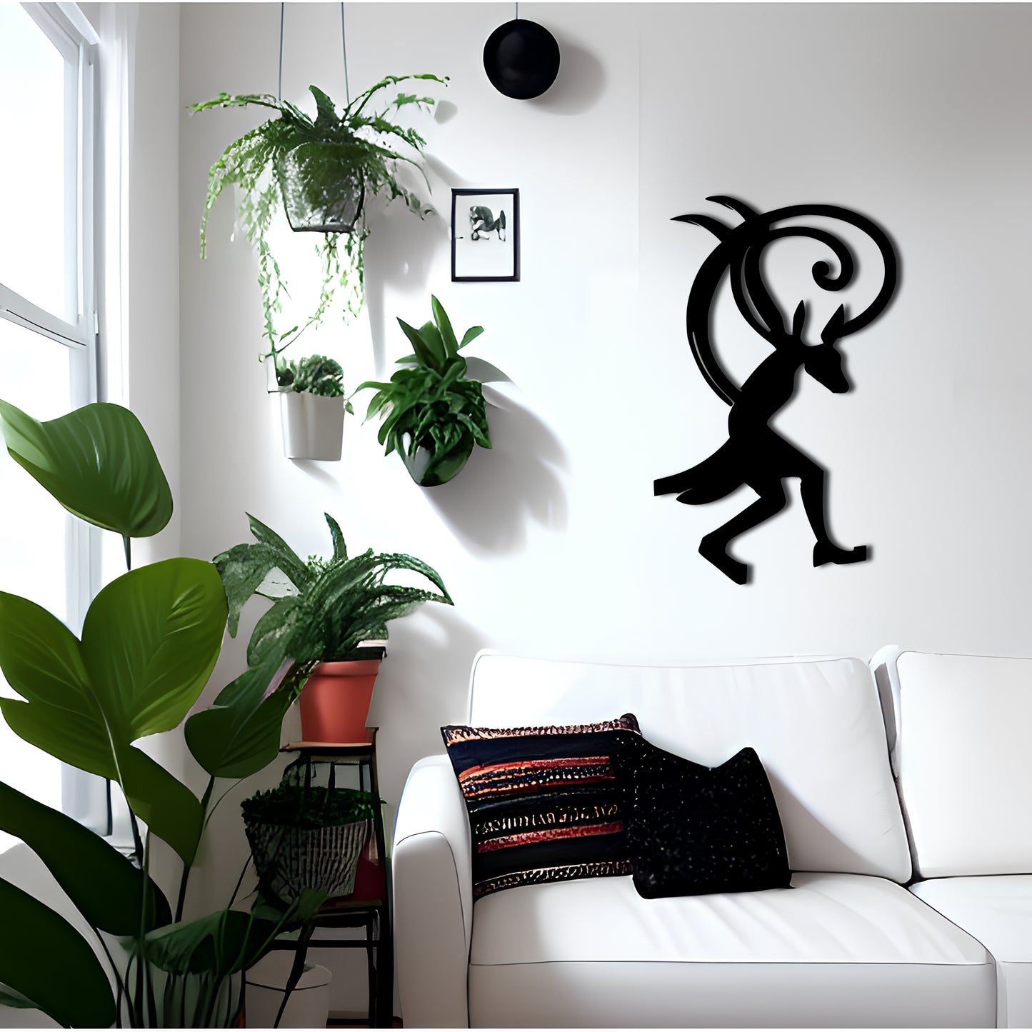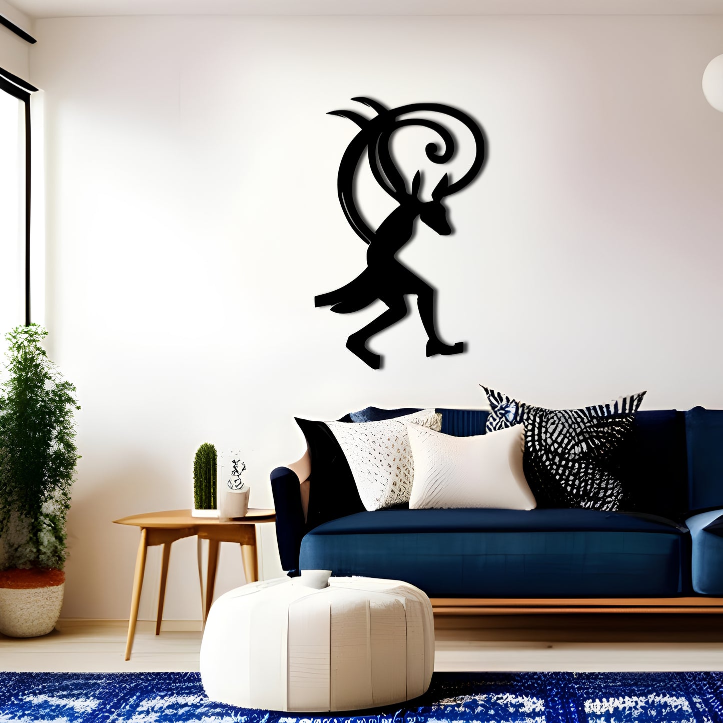 This stunning metal wall art features a stylized silhouette of a hunchback tribal dancer. The design is inspired by tribal dance and culture, making it the perfect addition to any bohemian or eclectic style decor. The intricate details and high-quality metal construction make this piece a standout addition to any room.