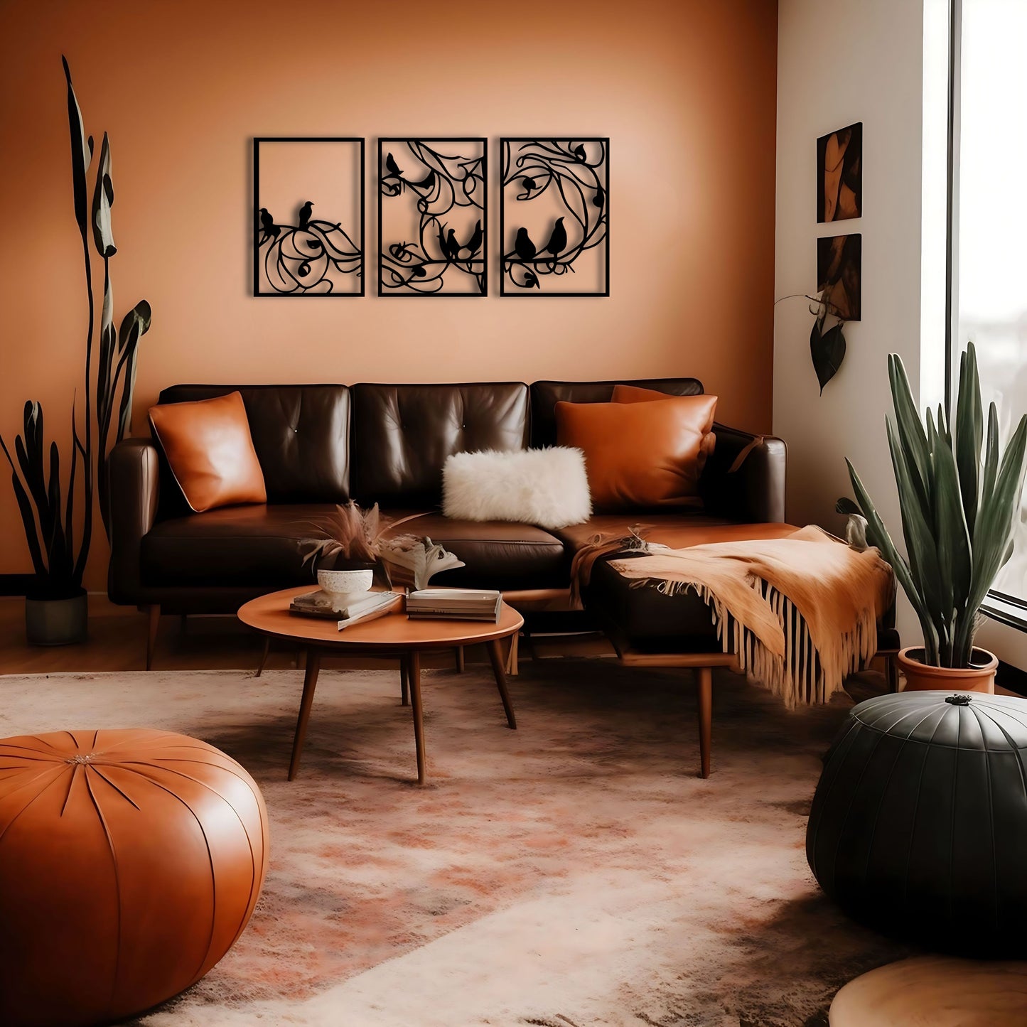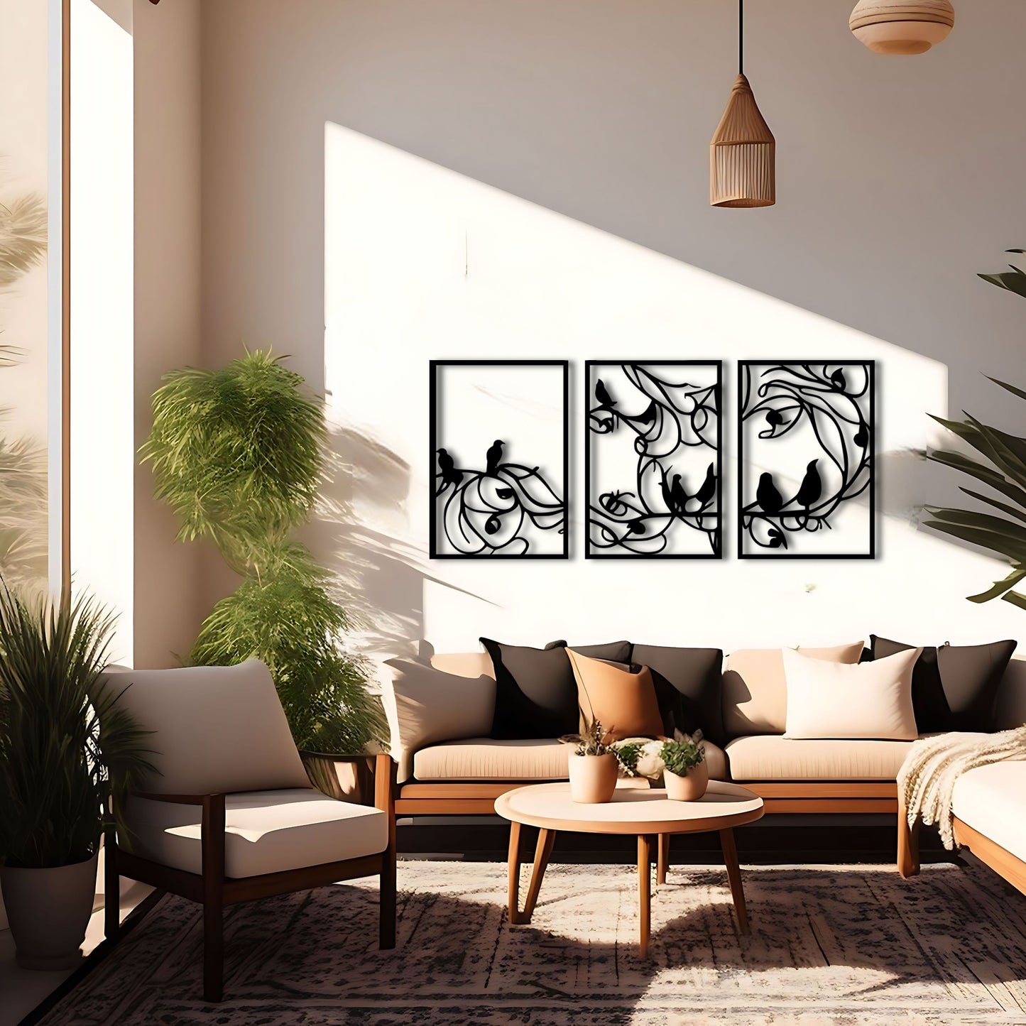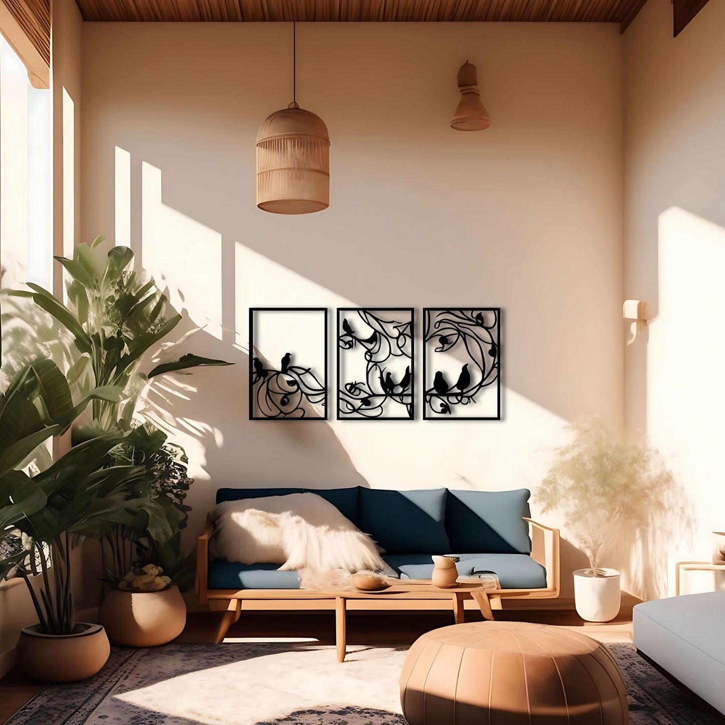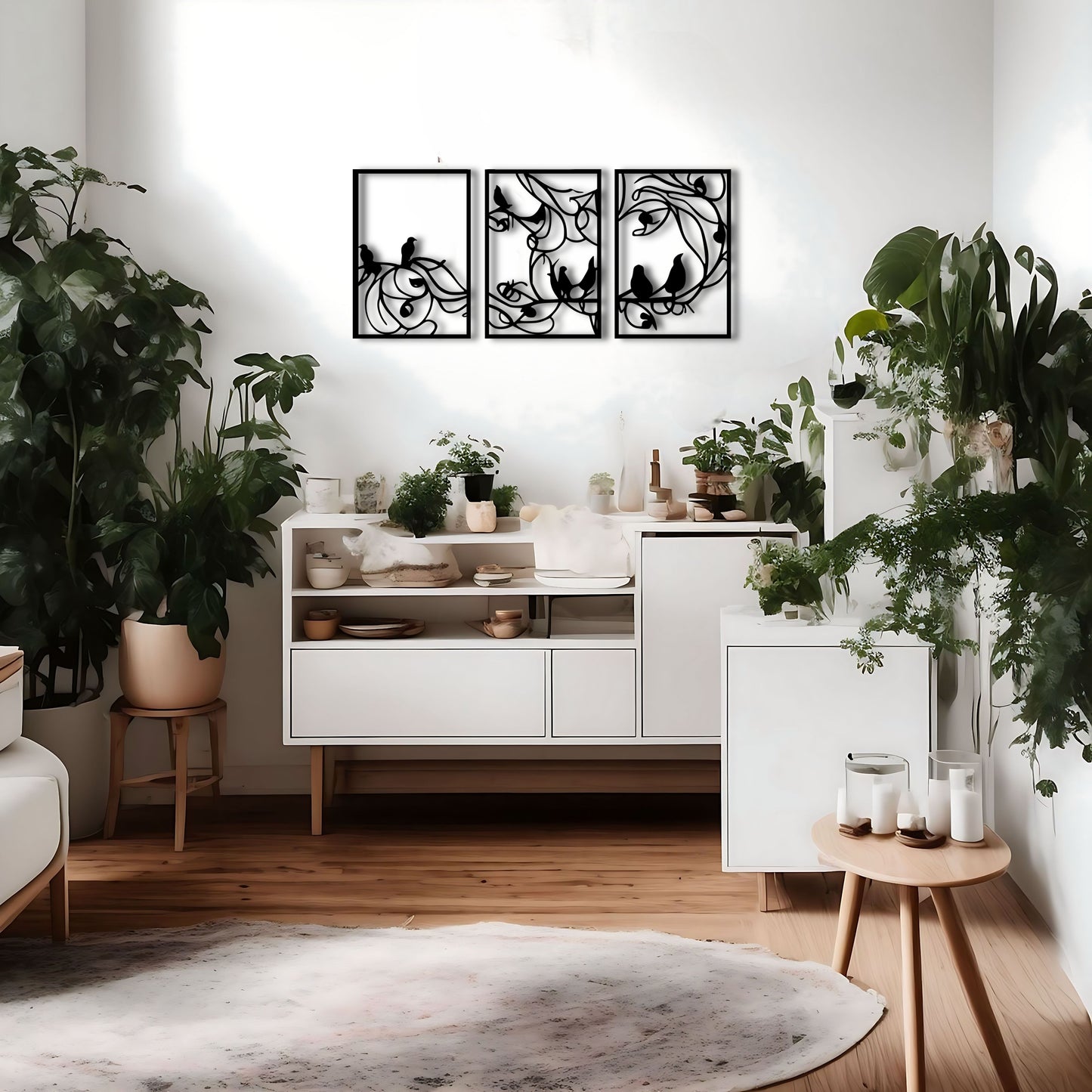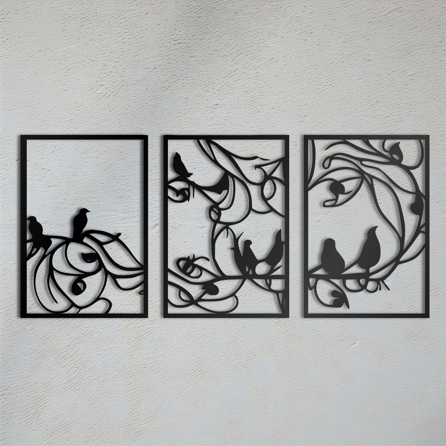The set includes three separate pieces, each featuring a different bird and branch design. The soft, delicate lines of the artwork add a touch of elegance and sophistication to any room.