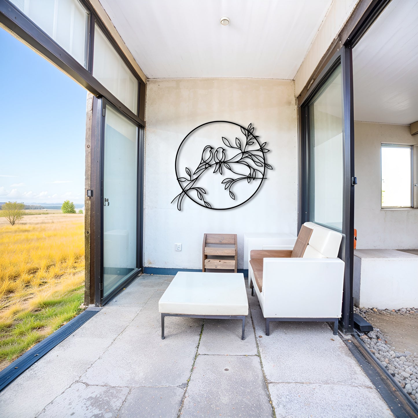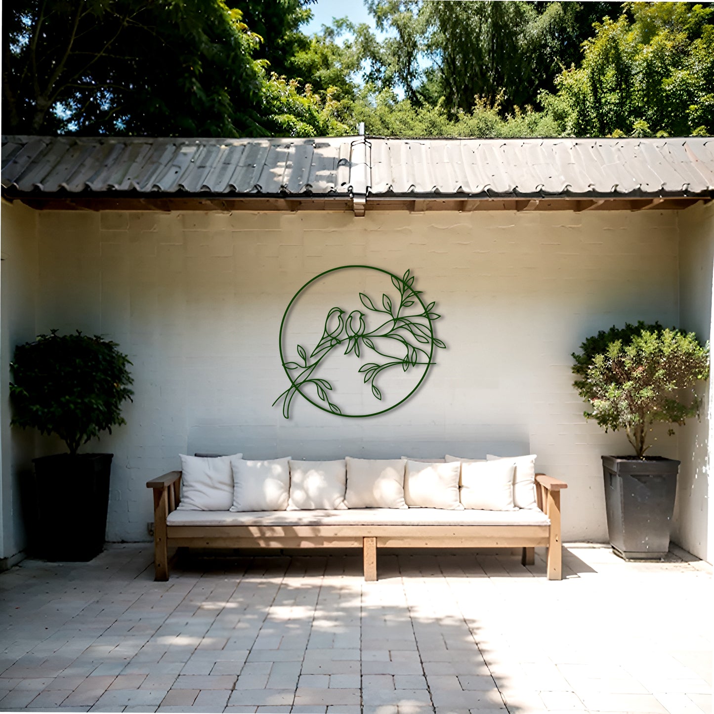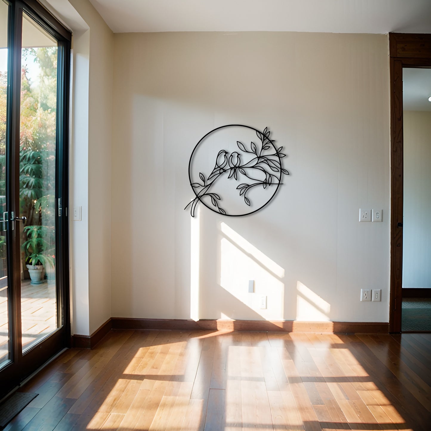 Bring the tranquil beauty of nature into your home with our Handcrafted Metal Bird & Branch Wall Art. Each piece is lovingly crafted by hand, ensuring that you receive a unique piece of art that adds a touch of rustic charm to any room. This wall art features two delicate birds perched on a branch, all enclosed within a graceful circular frame, evoking a serene, picturesque scene that's sure to captivate.