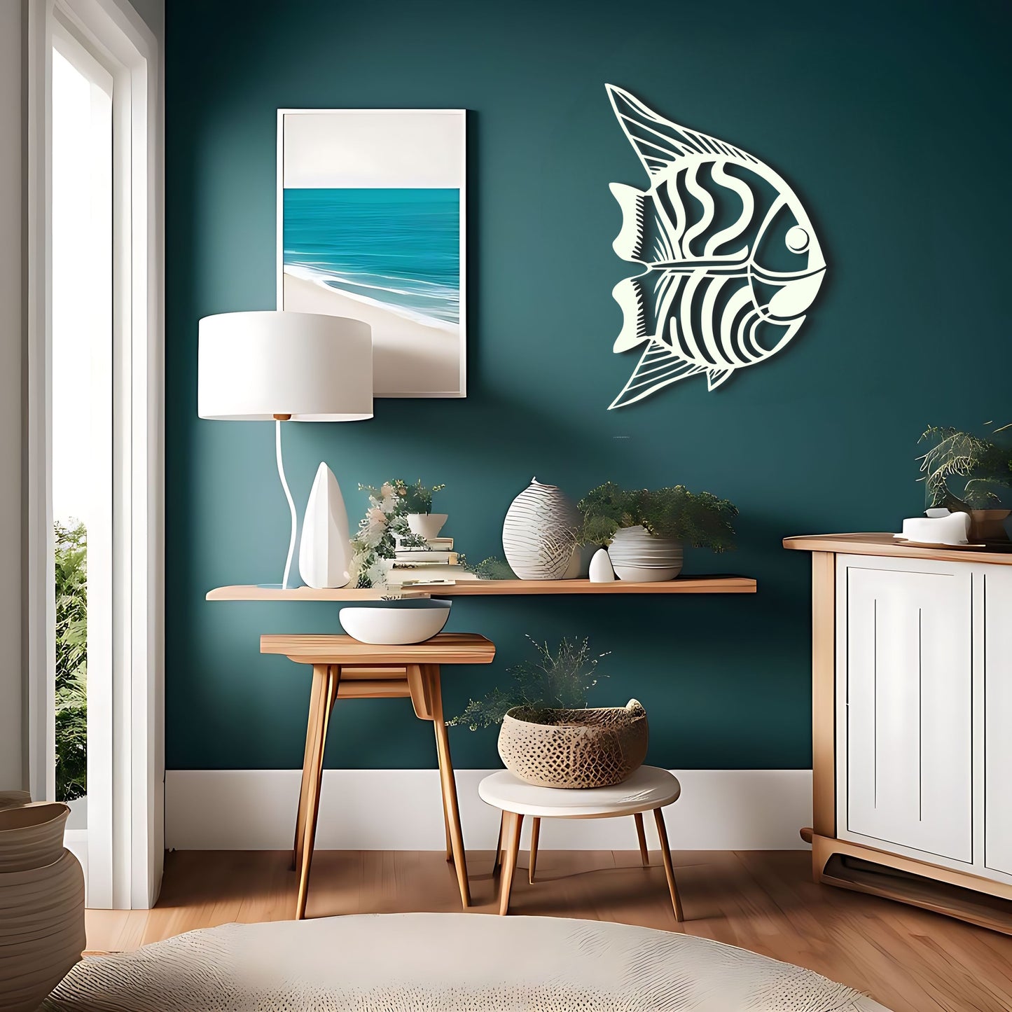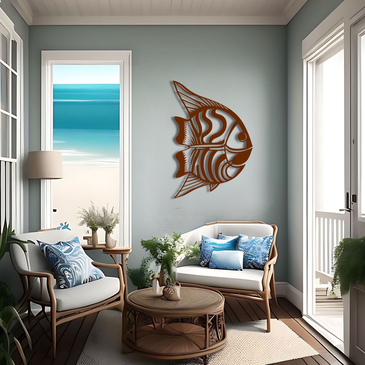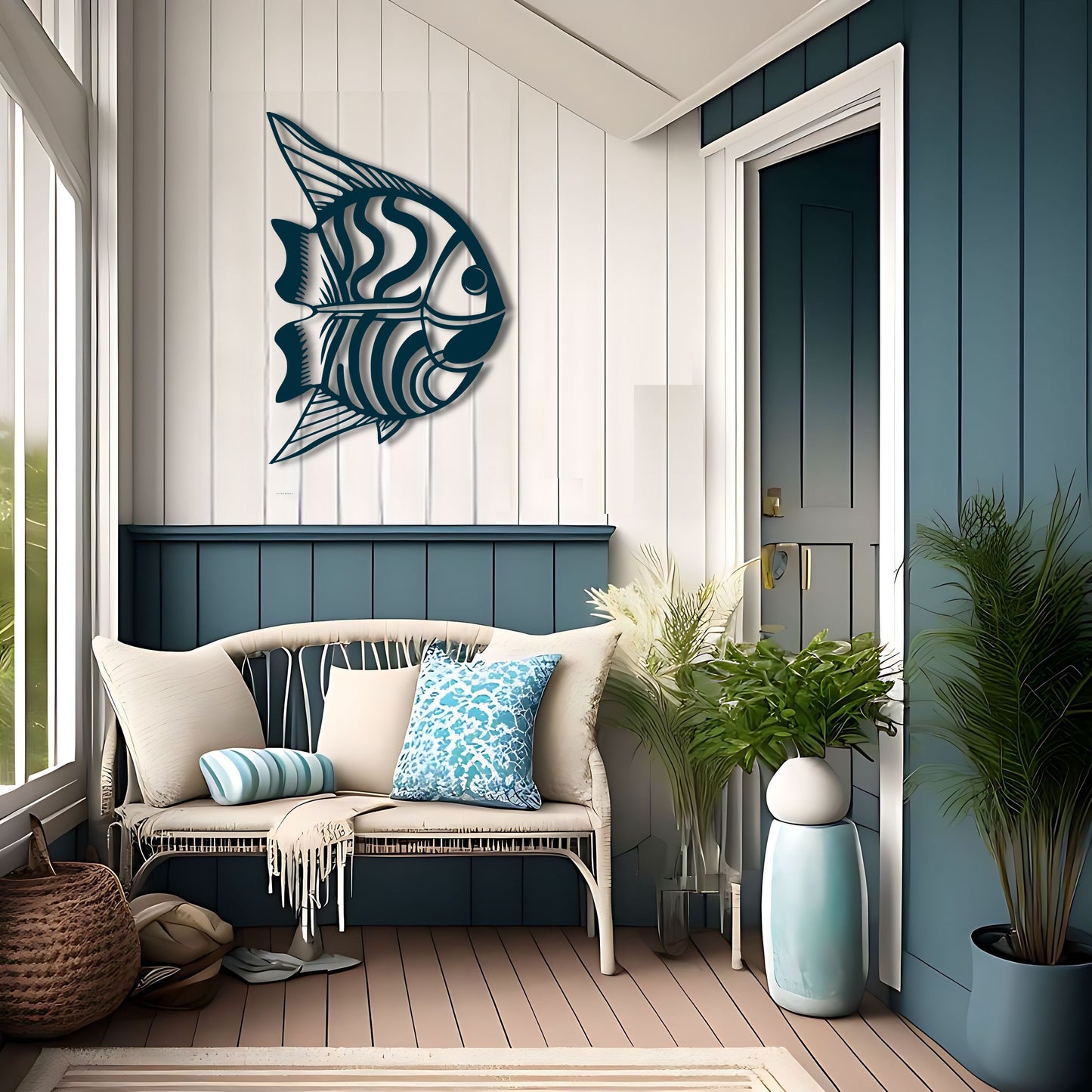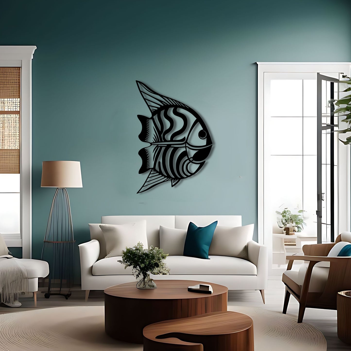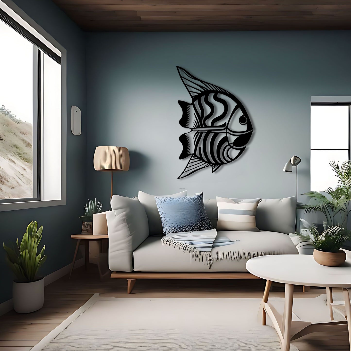 Add a touch of tropicalism to your home with this stunning metal wall art inspired by Karl Pümpin's Carnival Fish. The thick black lines of this piece make it a standout addition to any room. Perfect as a gift for fathers day or for any ocean and marine life enthusiasts, this piece is sure to make a splash in your beach or lake house decor. Made with high-quality metal, this outdoor metal wall art is durable and can withstand the elements. Choose from custom color options to perfectly match your existing decor.
