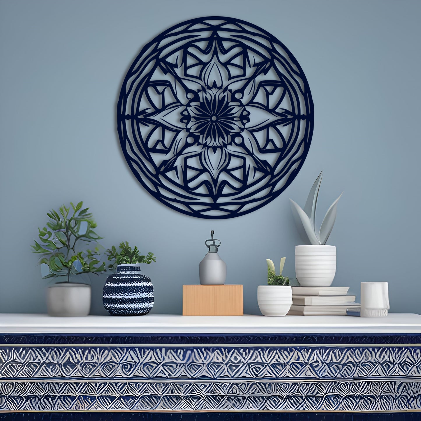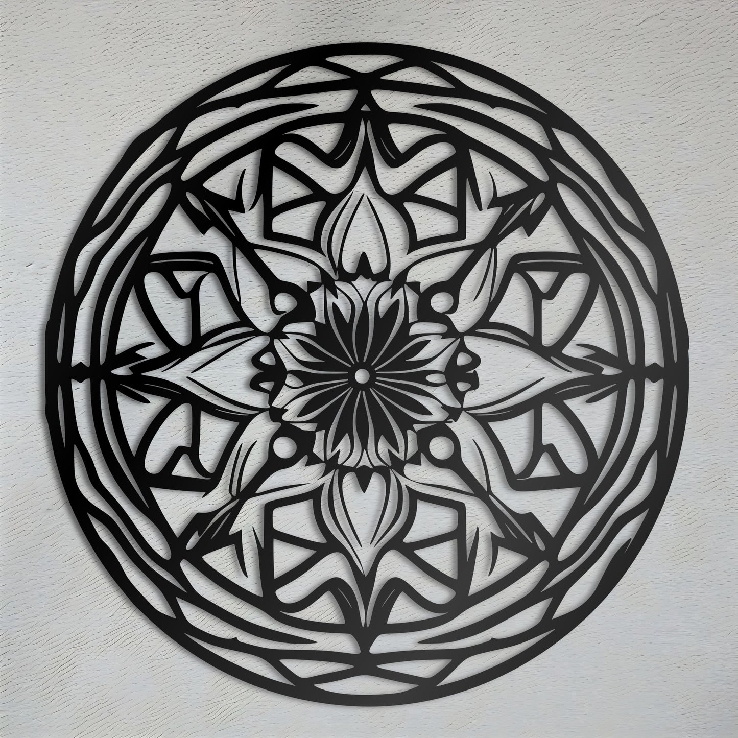 Elevate your space with this stunning circular mandala metal wall art. Featuring a parametric design with abstract style and intricate details, reminiscent of byzantine mosaic. The symmetrical and generative art of this mandala ornament is perfect for a gift for yoga lover or meditation wall art. Available in custom color options to suit your wall art decor, this large metal artwork is perfect for indoor and outdoor use.