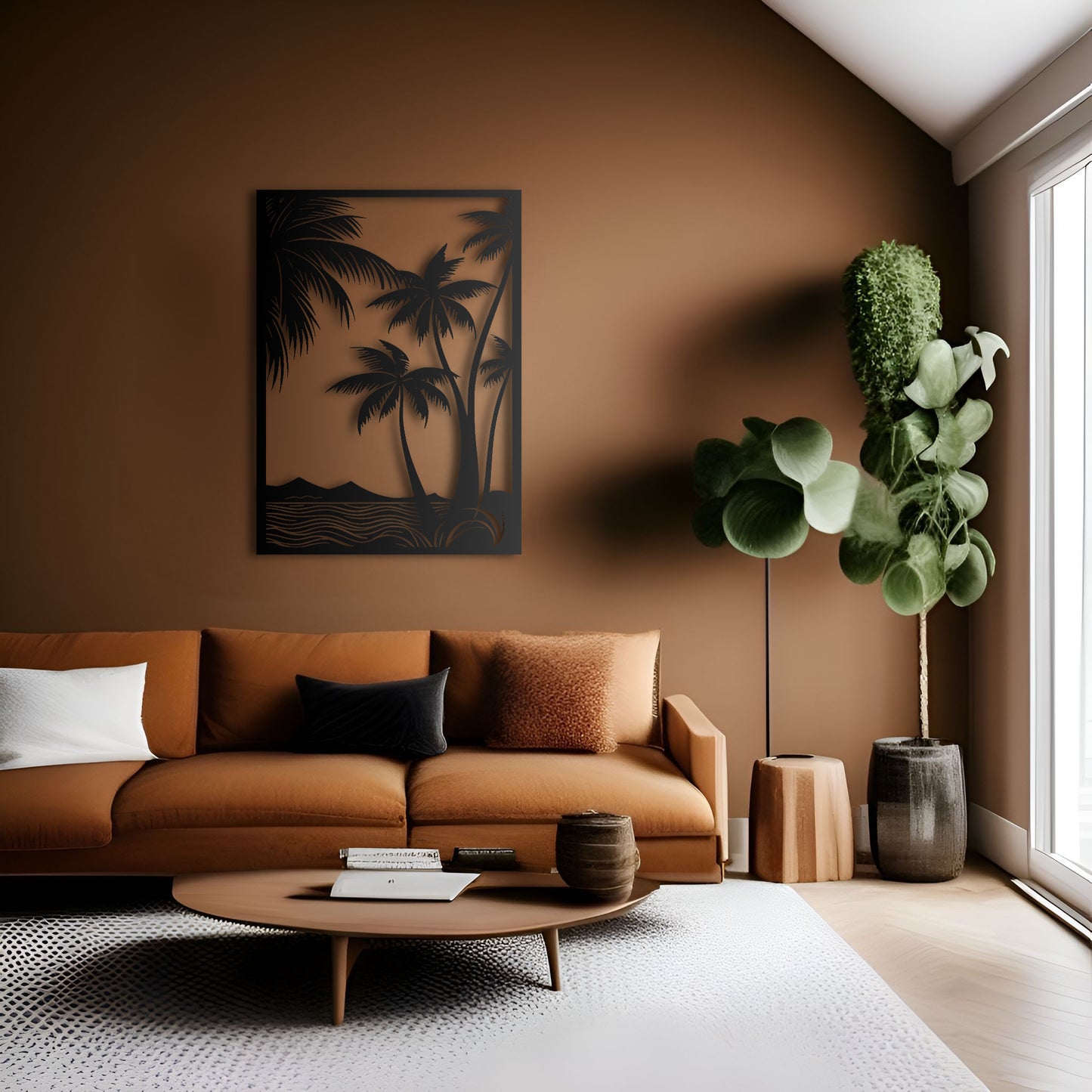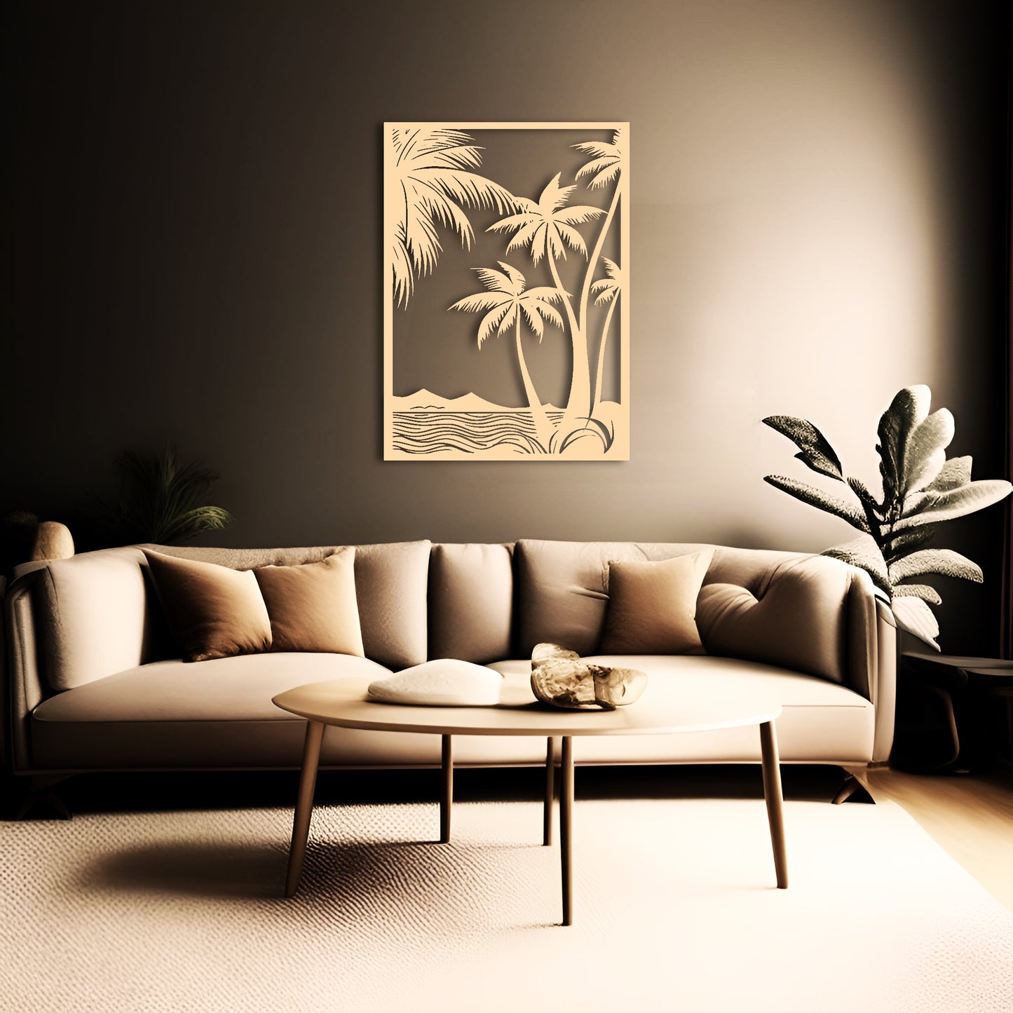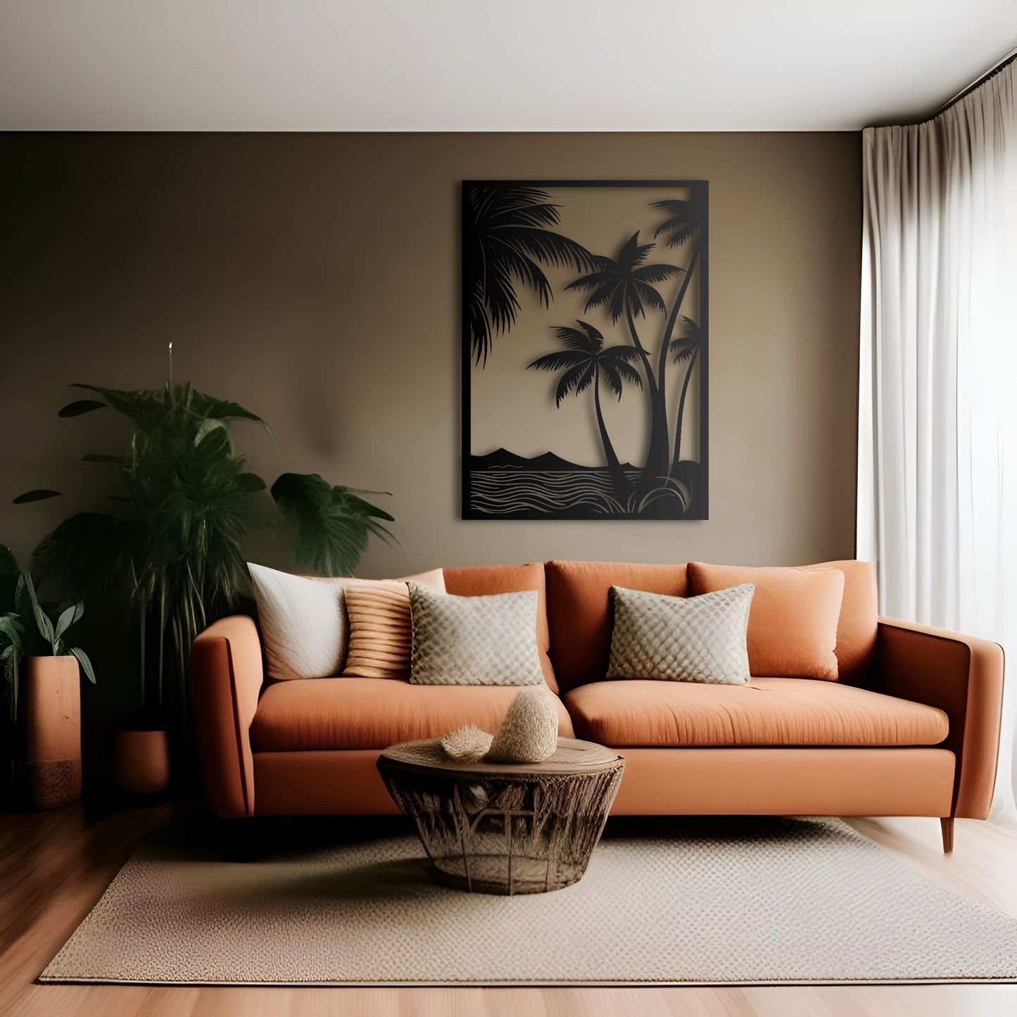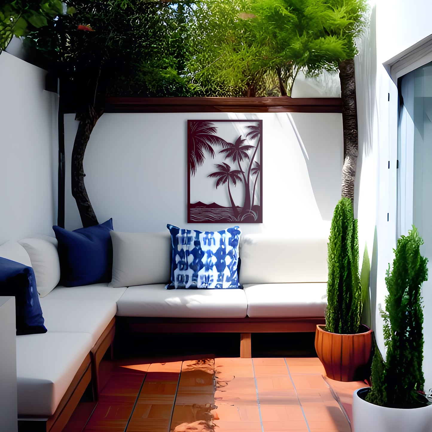Transform your living space into a serene coastal retreat with this beautiful metal tree wall art. The intricate design features delicate palm leaves and a sturdy metal frame that will add a touch of natural beauty to any room. Hang it in your living room or bedroom to create a calming oasis where you can relax and unwind. This large metal wall art is perfect for indoor or outdoor use and will complement any coastal or tropical decor. Upgrade your space with this nature-inspired wall decor and bring the beach to your home.