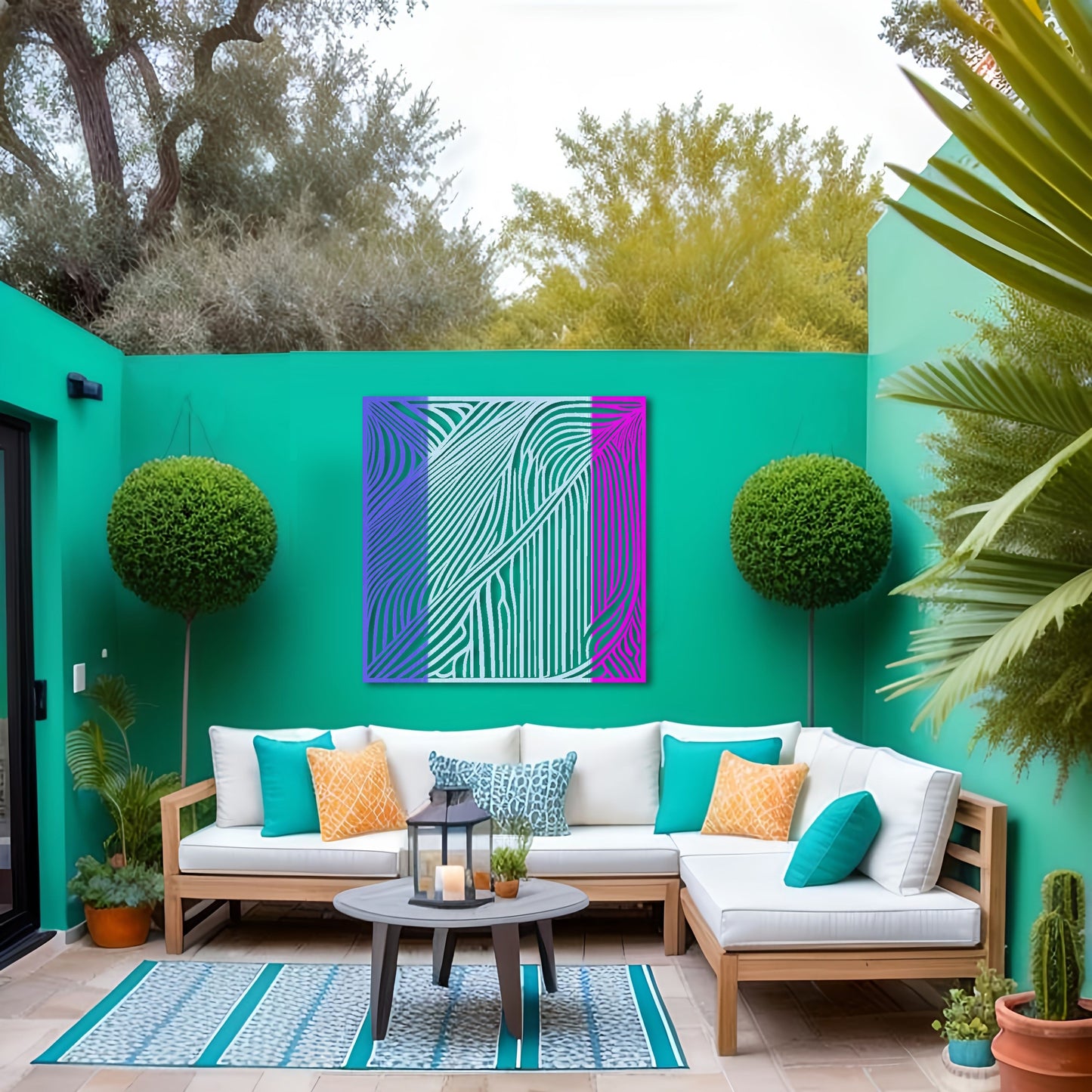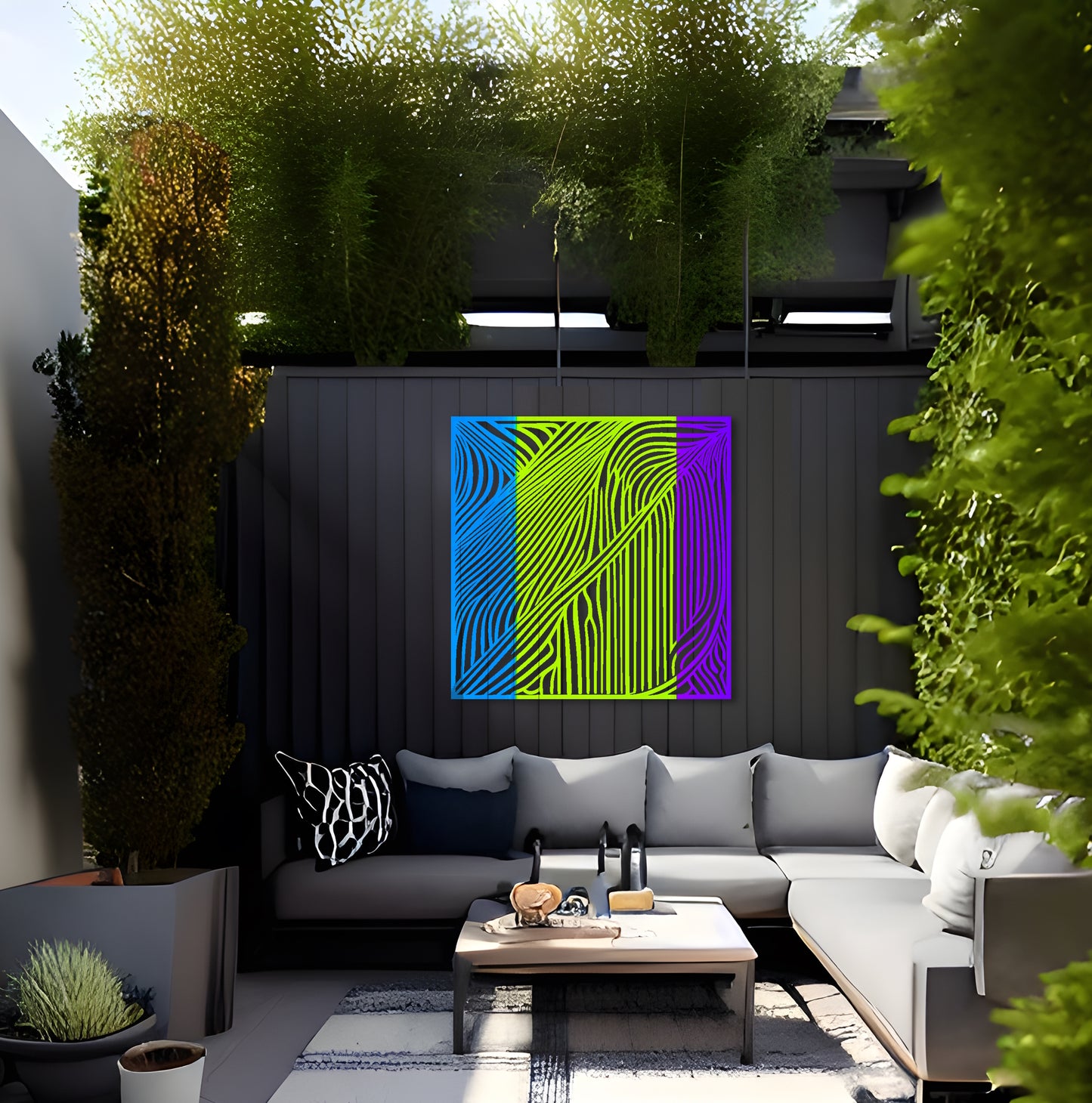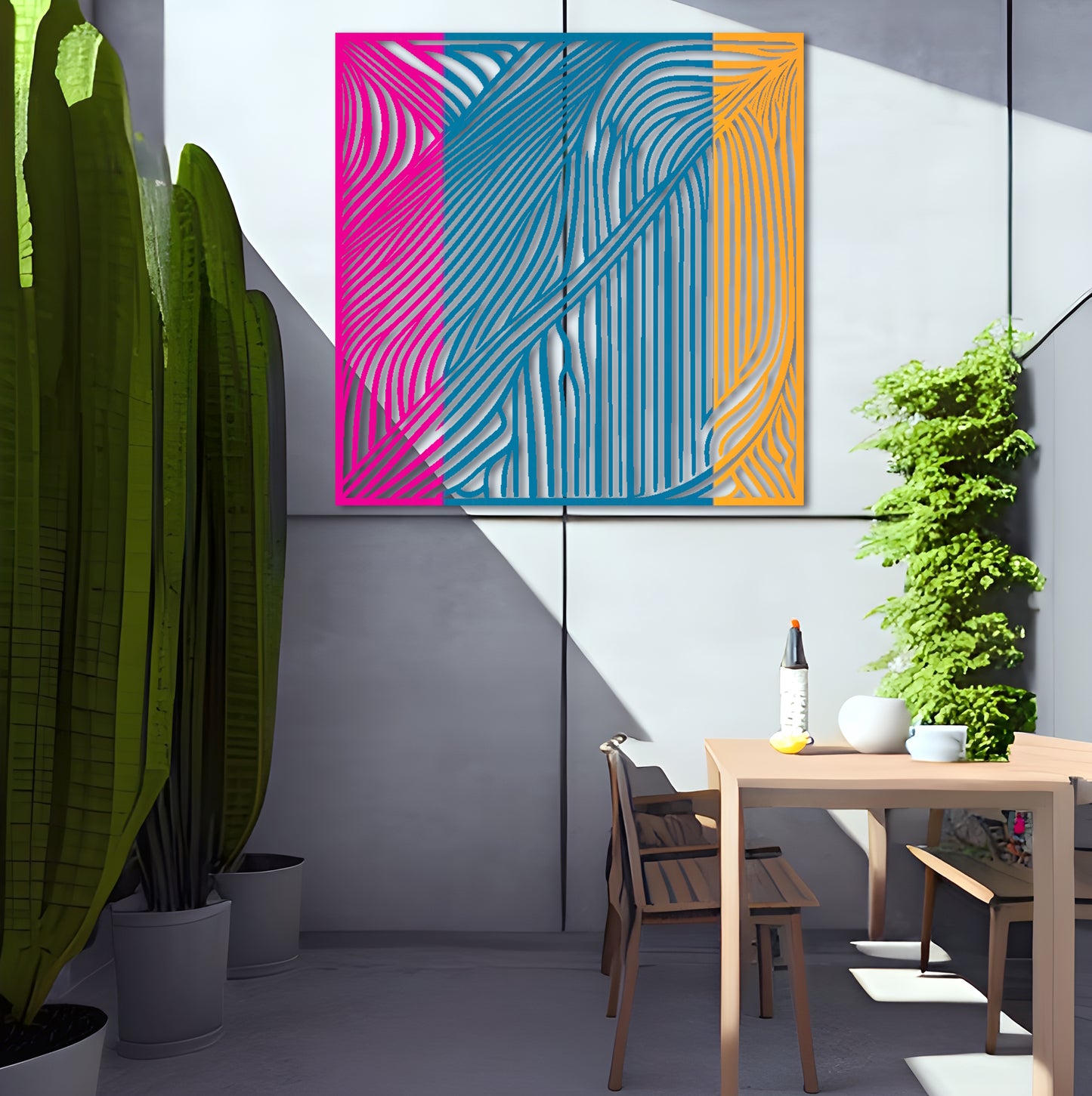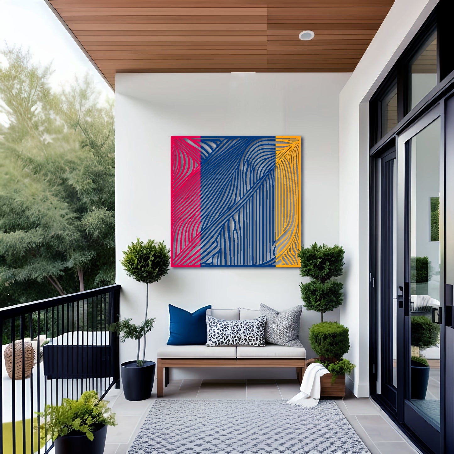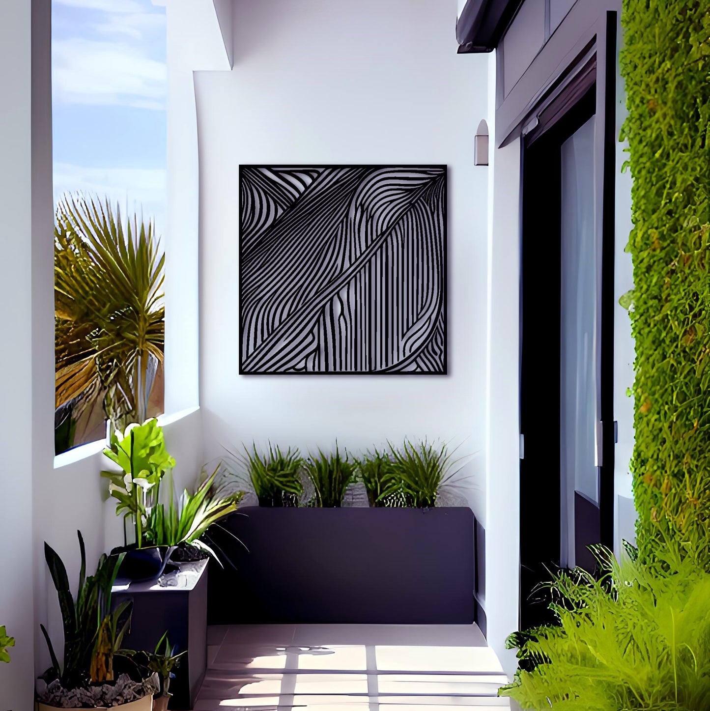 Introduce a touch of modern sophistication to your space with this captivating square metal wall art. Inspired by the renowned artist Victor Vasarely, this abstract drawing showcases beautiful high contrast and intricate environment. The mesmerizing tiger stripes create a sense of movement and depth, making it a focal point in any room. Crafted with meticulous attention to detail, this metal wall art is designed to be a stunning addition to your home decor. Whether displayed indoors as wall art decor in your living room or showcased outdoors as outdoor metal wall art, it effortlessly enhances the aesthetic appeal of any space.