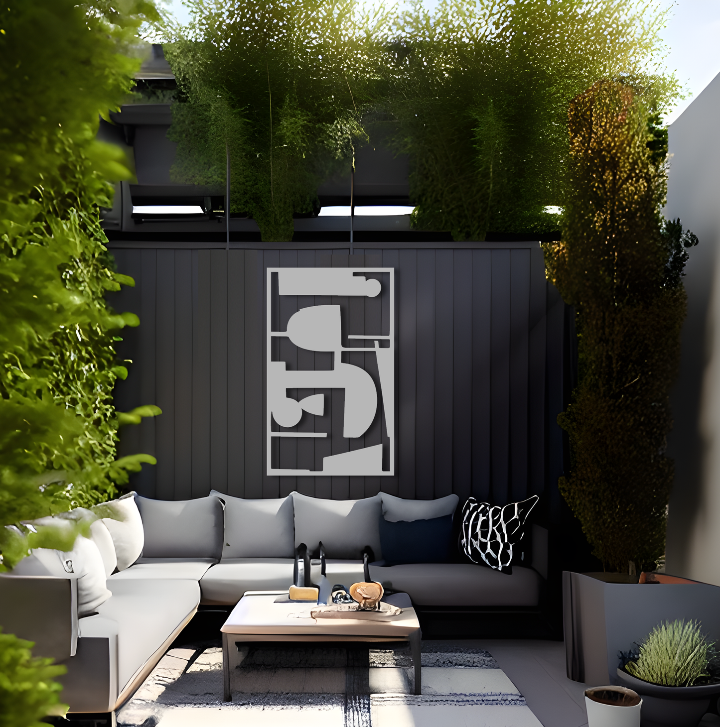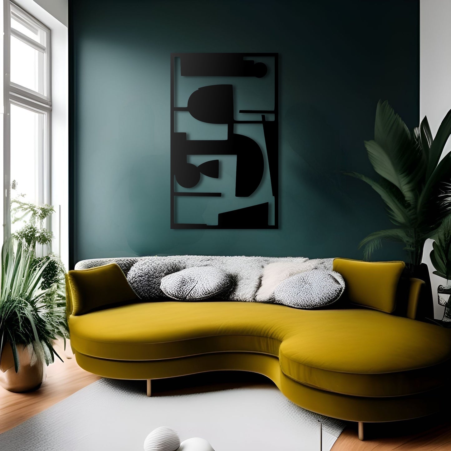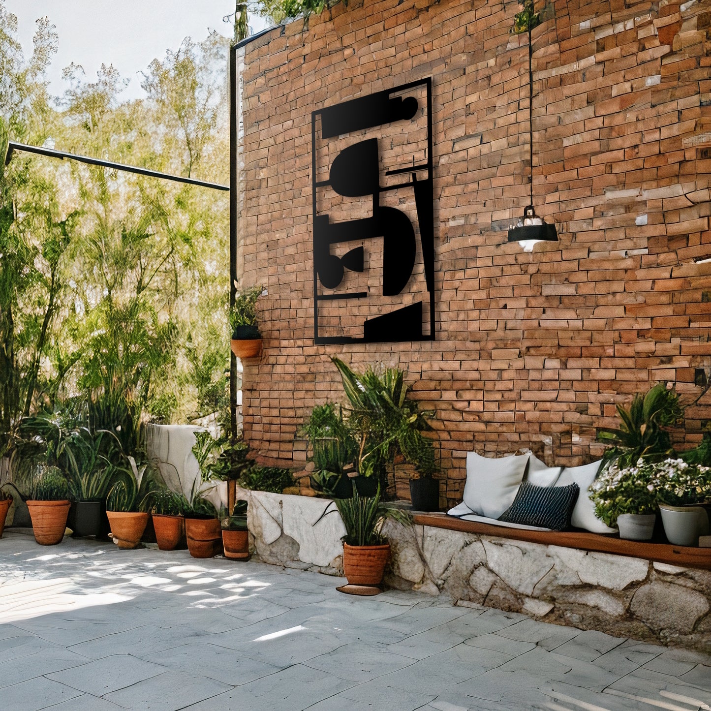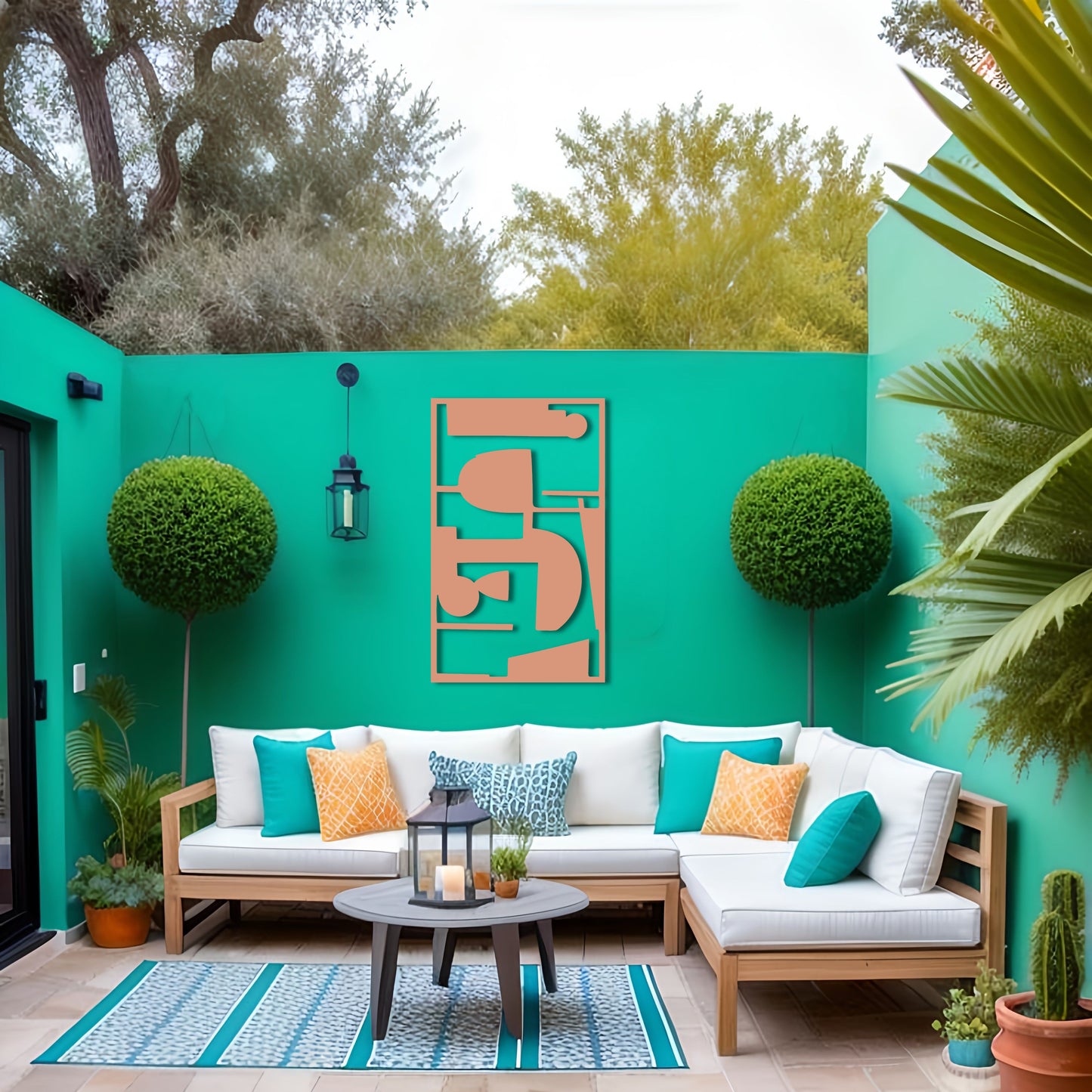 This unique metal wall art features abstract hyper-shapes with a suprematism influence. The design is inspired by the upside-down perspective and ragbag style, creating a visually stunning piece that will add a touch of modern art to any living space or outdoor area. The metal material ensures durability and longevity, making it perfect for both indoor and outdoor use.