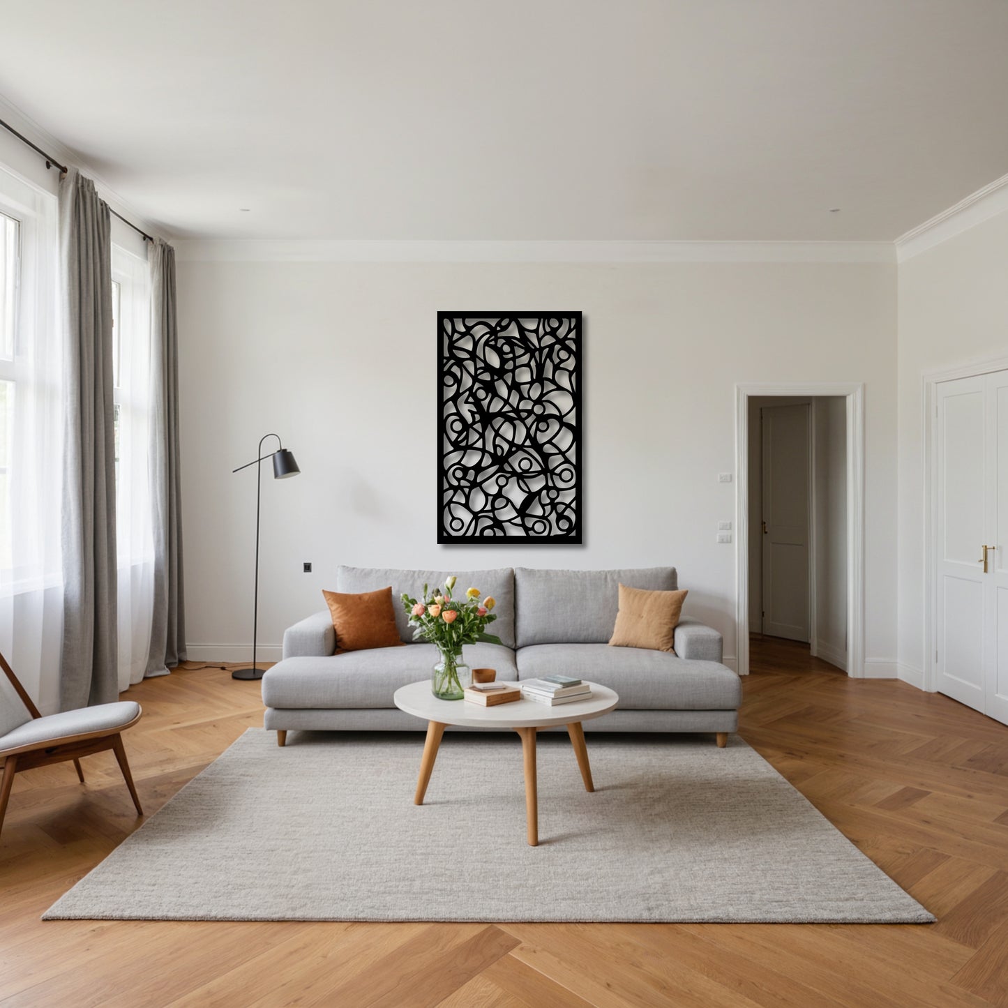 A bold statement piece for modern living rooms, office spaces, loft apartments, and art-centric interiors. Works beautifully as a room divider, feature wall, or gallery-style artwork.