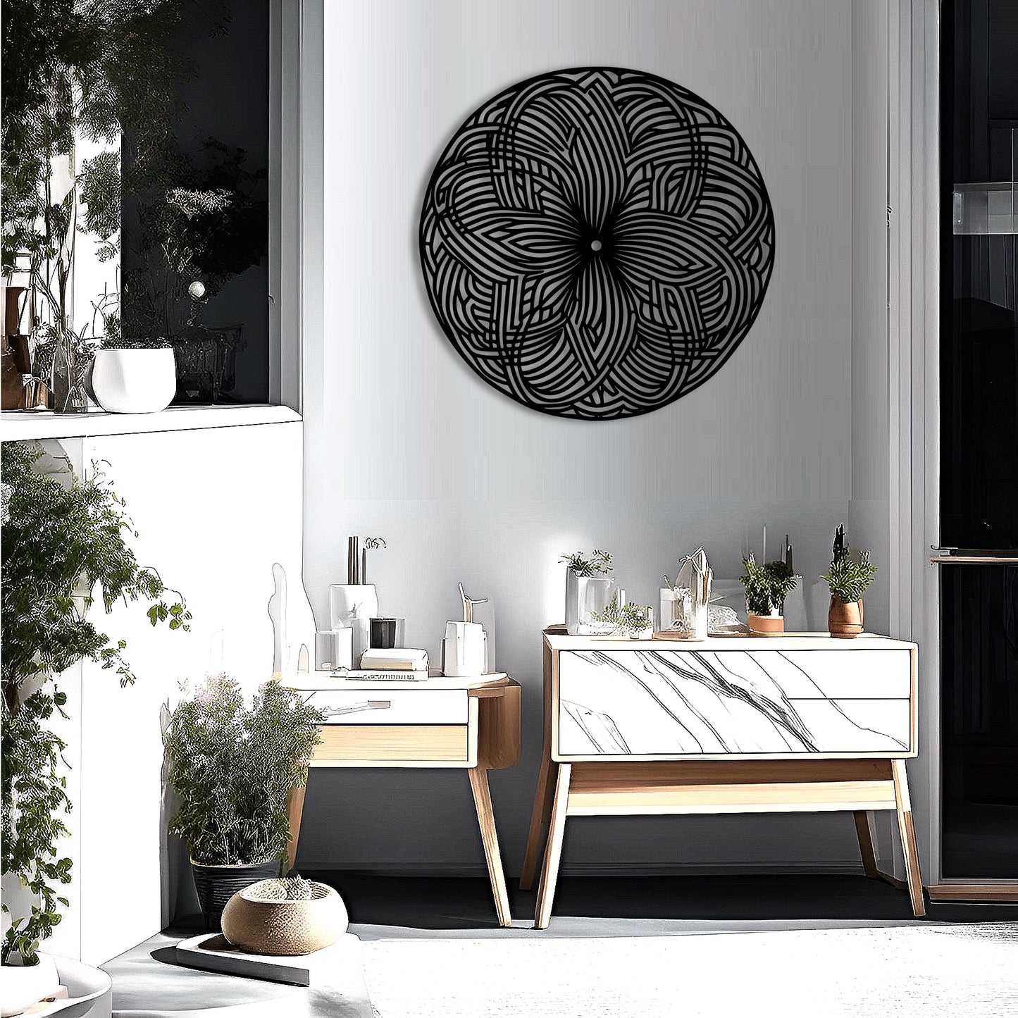 Elevate your home decor with our intricate mandala wall art featuring thick lines and highly detailed designs. This round and spiraling mandala ornament is perfect for lovers of intricate and fine lines, as well as those who appreciate pop art. Made with high-quality metal artwork and available in custom color options, this mandala wall art is the perfect addition to any living room, bedroom, or outdoor space.
