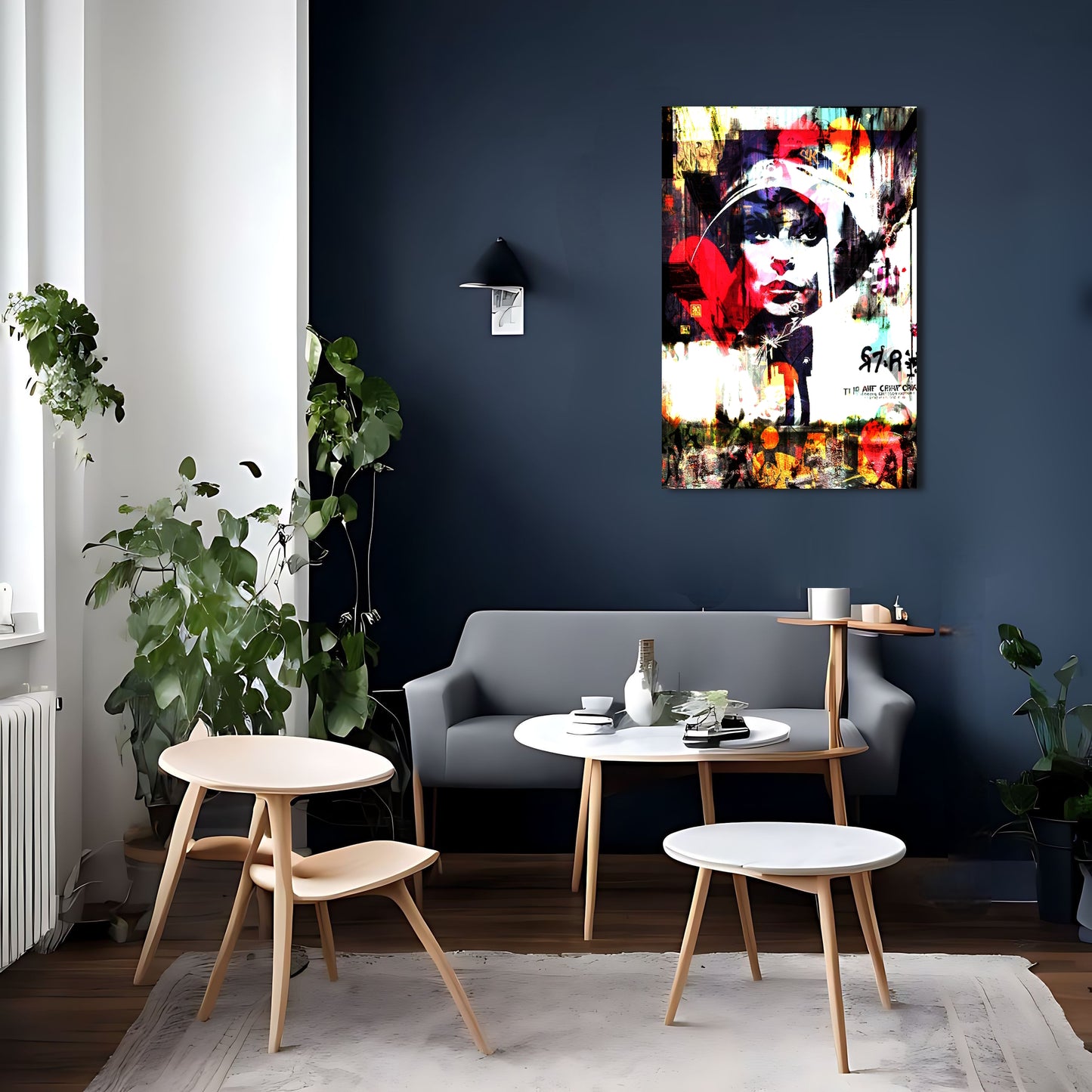 Add some funk to your wall with this bold and stylish "Jetfighter Pilot Girl" metal print. This digital art piece is inspired by 70's art directed films and features a woman wearing a hat and standing on steps in front of a black graffiti background. The collage effect adds an extra layer of depth and texture to this already striking piece. Perfect for those who love funk art and want to add a touch of retro flair to their home or office. This metal print is of high quality and durable, making it a long-lasting addition to any space.