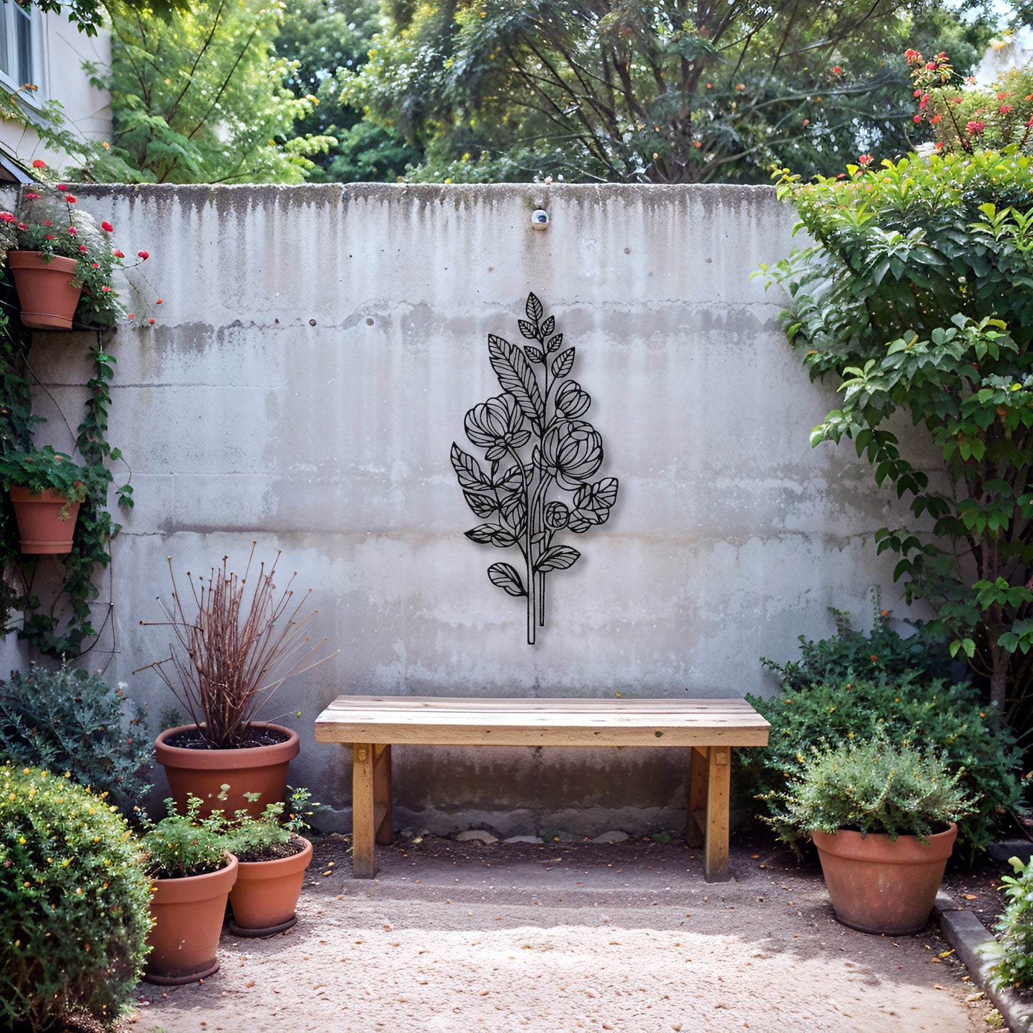 Bring vibrant elegance to your home or garden with this Large Vertical Floral Metal Wall Art, featuring an intricate arrangement of daisies, tulips, and leaves. Perfect for adding a bold yet sophisticated touch to living rooms, hallways, patios, or outdoor garden walls. This handcrafted steel piece is designed to make a statement.