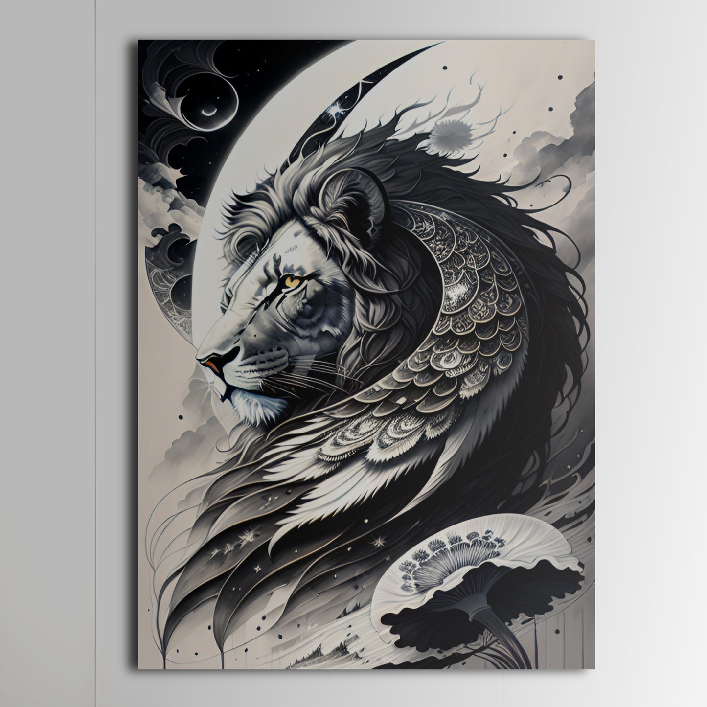 Explore our collection of exquisite black and white drawings and intricate digital illustrations featuring lions, moon gods, and coastal scenes. Adorn your walls with our beautiful artwork and stunning metal prints, complete with angel wings and mystical mushrooms. Elevate your home decor with our wall art and metal posters, capturing the beauty of the sun and moon in captivating detail.
