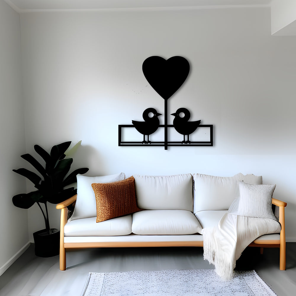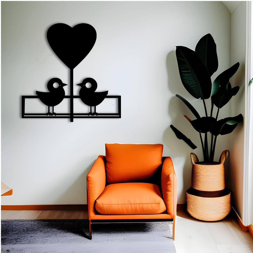 Bring a touch of love to your home with this adorable and minimalist metal wall art, featuring two cartoon birds. The birds are depicted as lovers, looking at each other with affection.The design is simple yet impactful, making it a great addition to any room in your house.