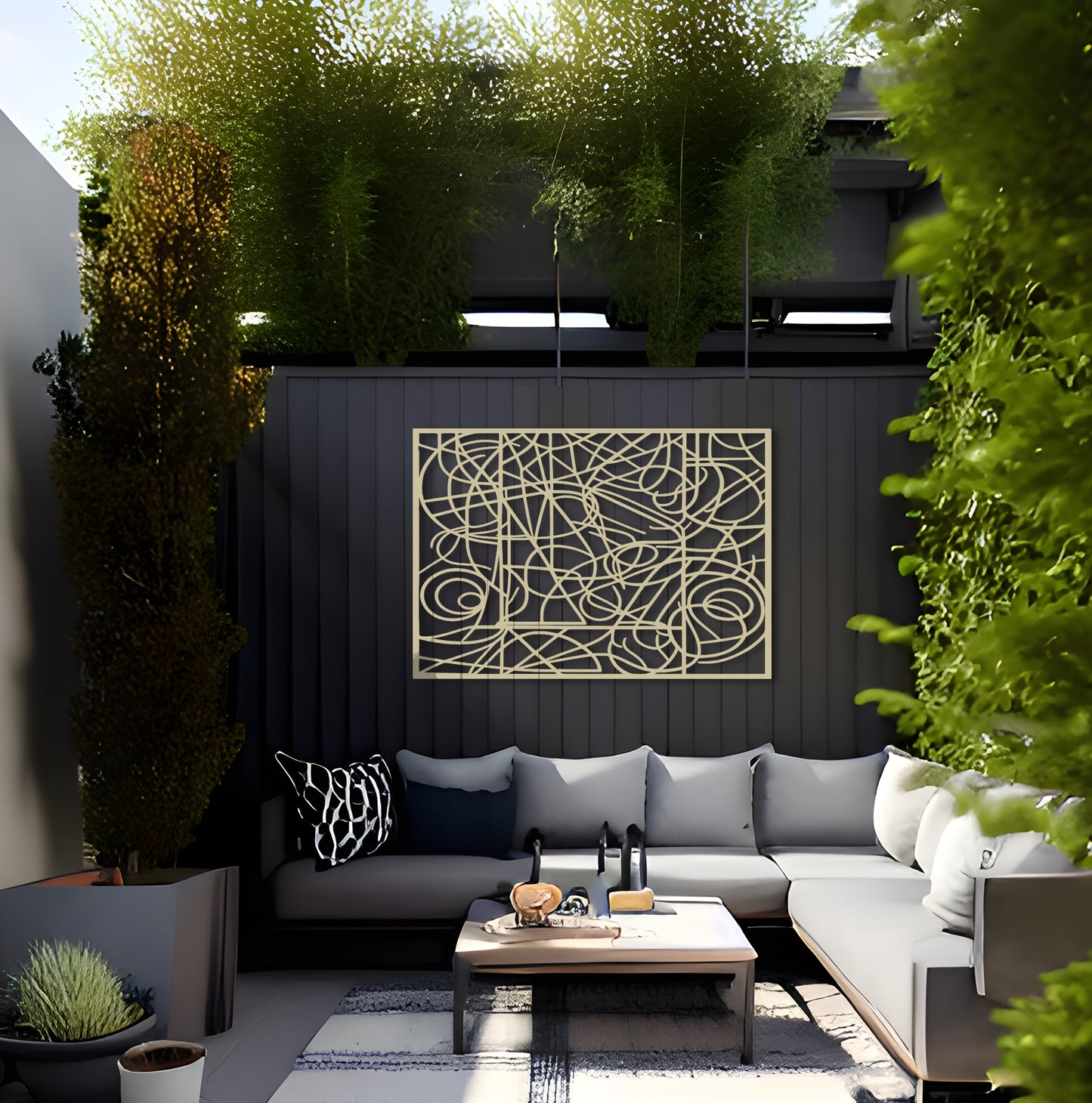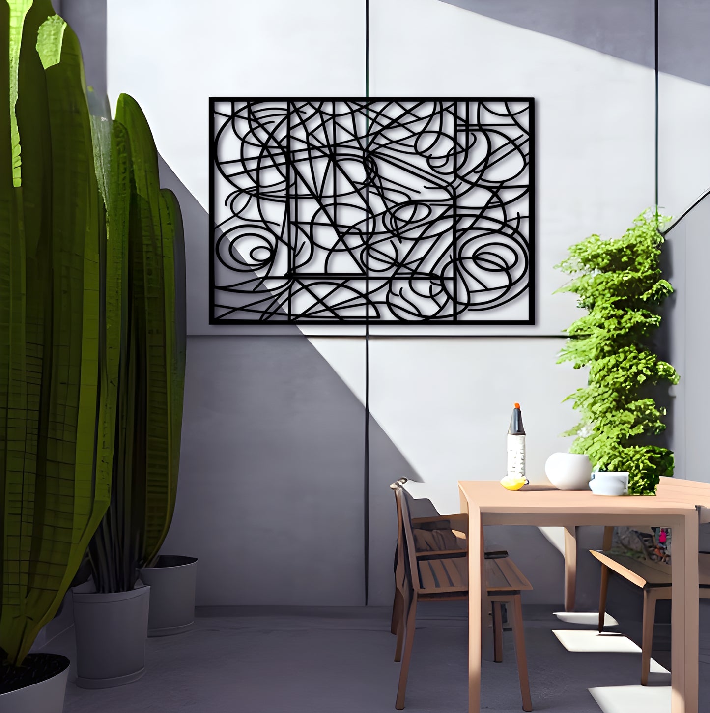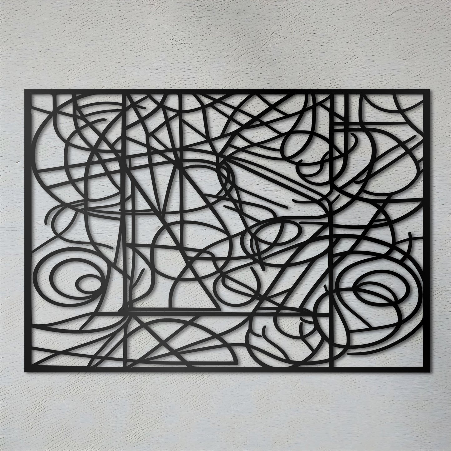 Immerse yourself in the intriguing world of abstract art with this captivating metal wall art. Inspired by the renowned artist Jean Dubuffet, this piece showcases a maze-like composition that invites you to get lost in its intricate details. The spaghetti-like lines intertwine, creating a sense of movement and complexity. Crafted with meticulous attention to detail, this abstract artwork adds a touch of sophistication and intrigue to any space. Whether displayed indoors as wall decor in your living room or showcased outdoors as outdoor metal wall art, it is sure to be a conversation starter. Elevate your decor with this understated yet captivating piece of lineart.