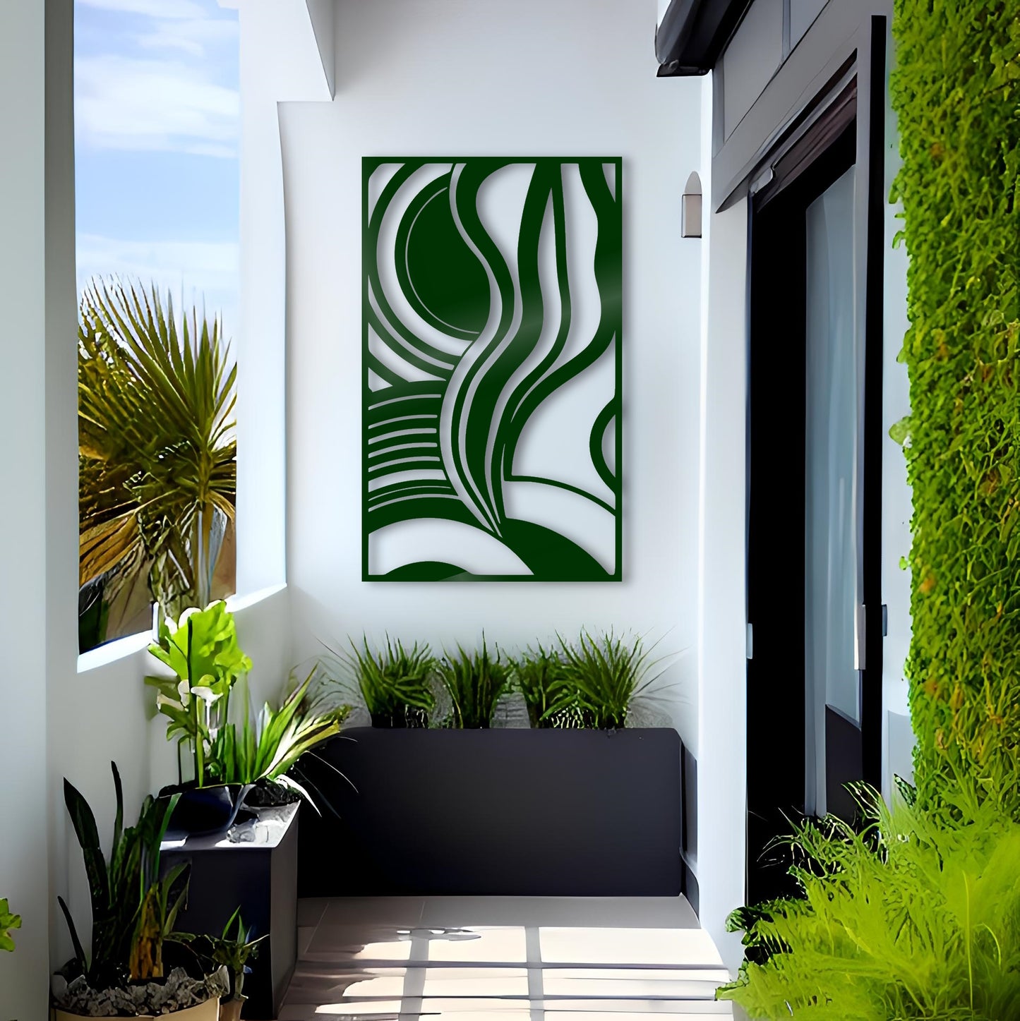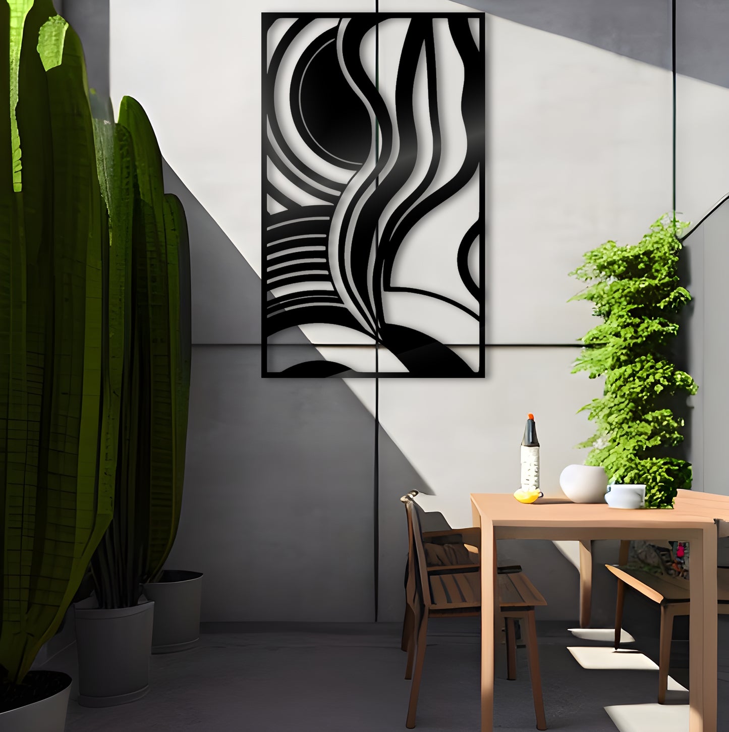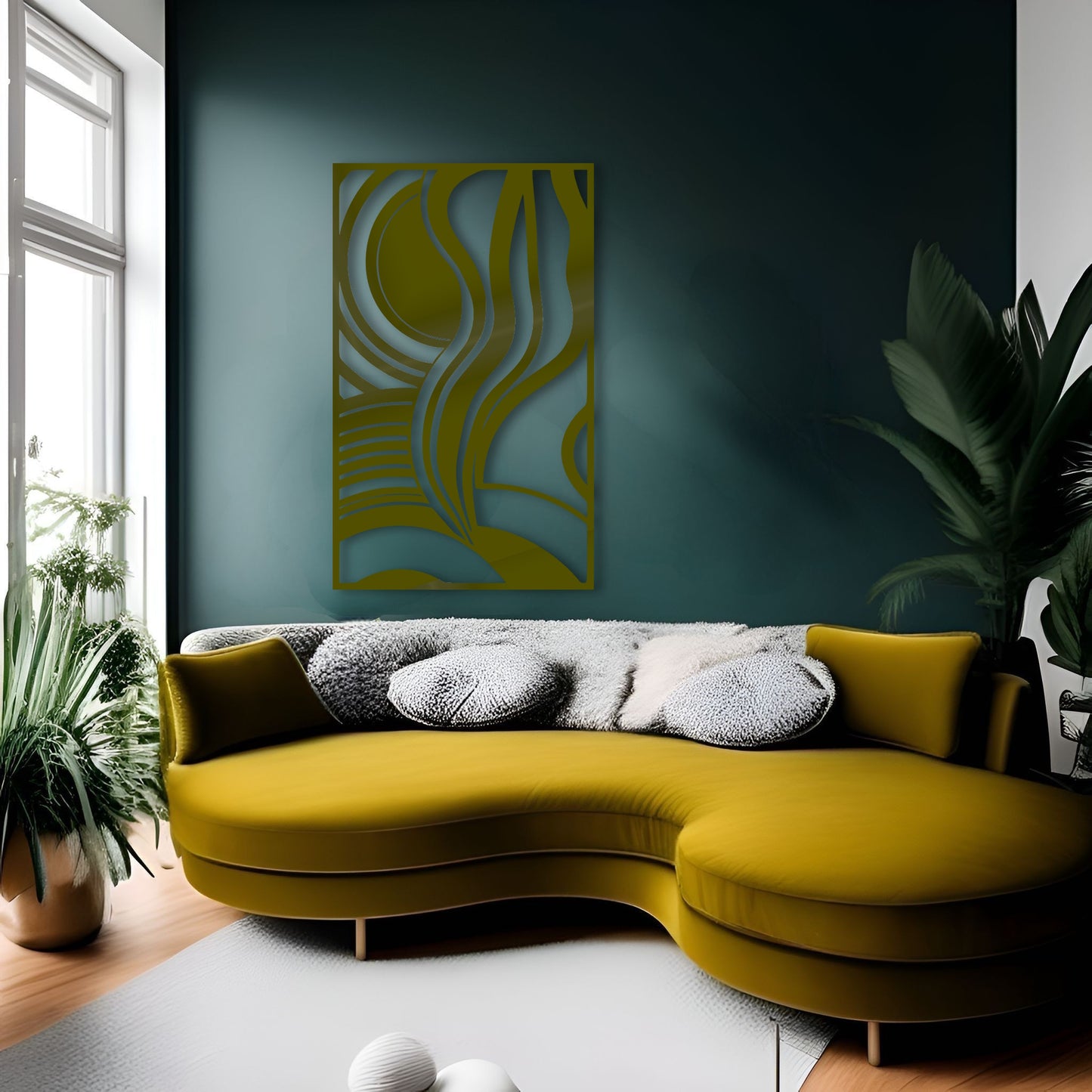 Enhance the ambiance of your living space with this exquisite metal wall art. The abstract design features mesmerizing wavy lines inspired by orphism, a movement characterized by vibrant colors and geometric forms. With a subtle nod to art nouveau, this piece seamlessly combines decorative elements and objective abstraction. Crafted with attention to detail, it exudes understated elegance. Perfect for both indoor and outdoor settings, this metal wall art is sure to captivate and elevate any room.