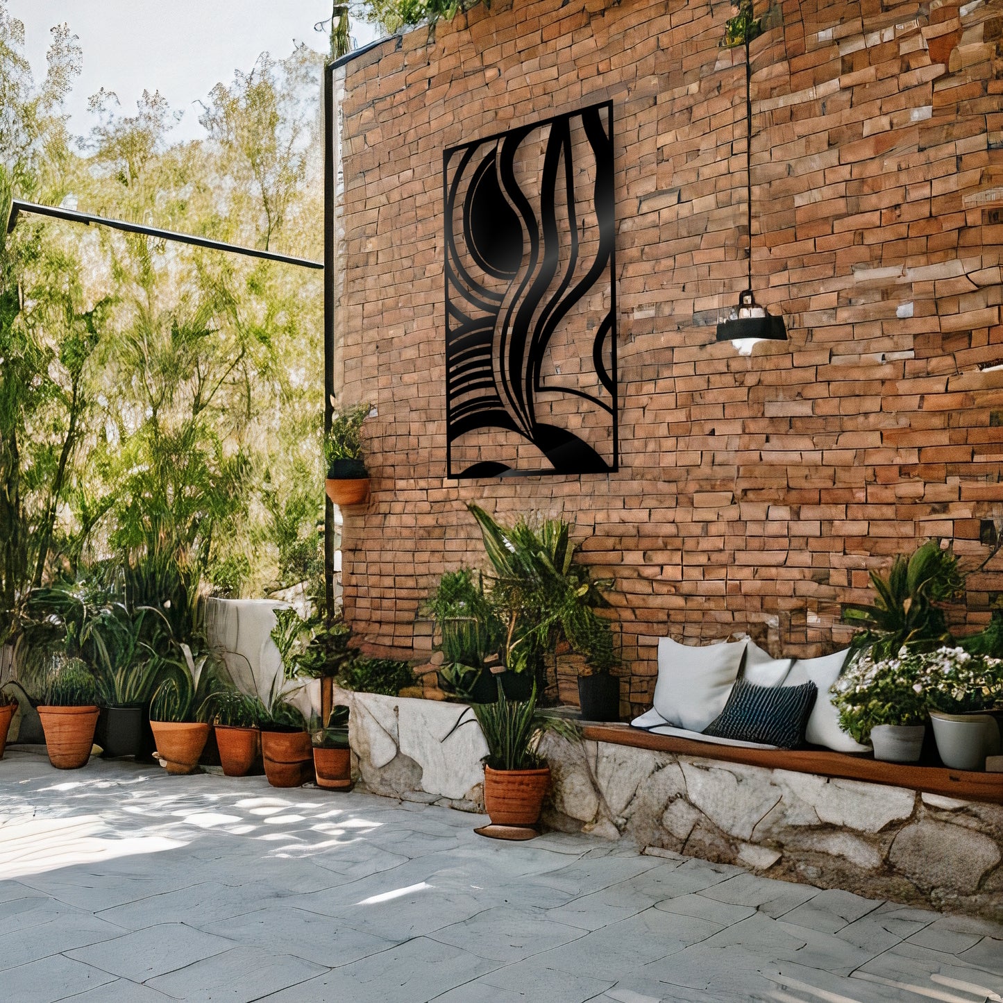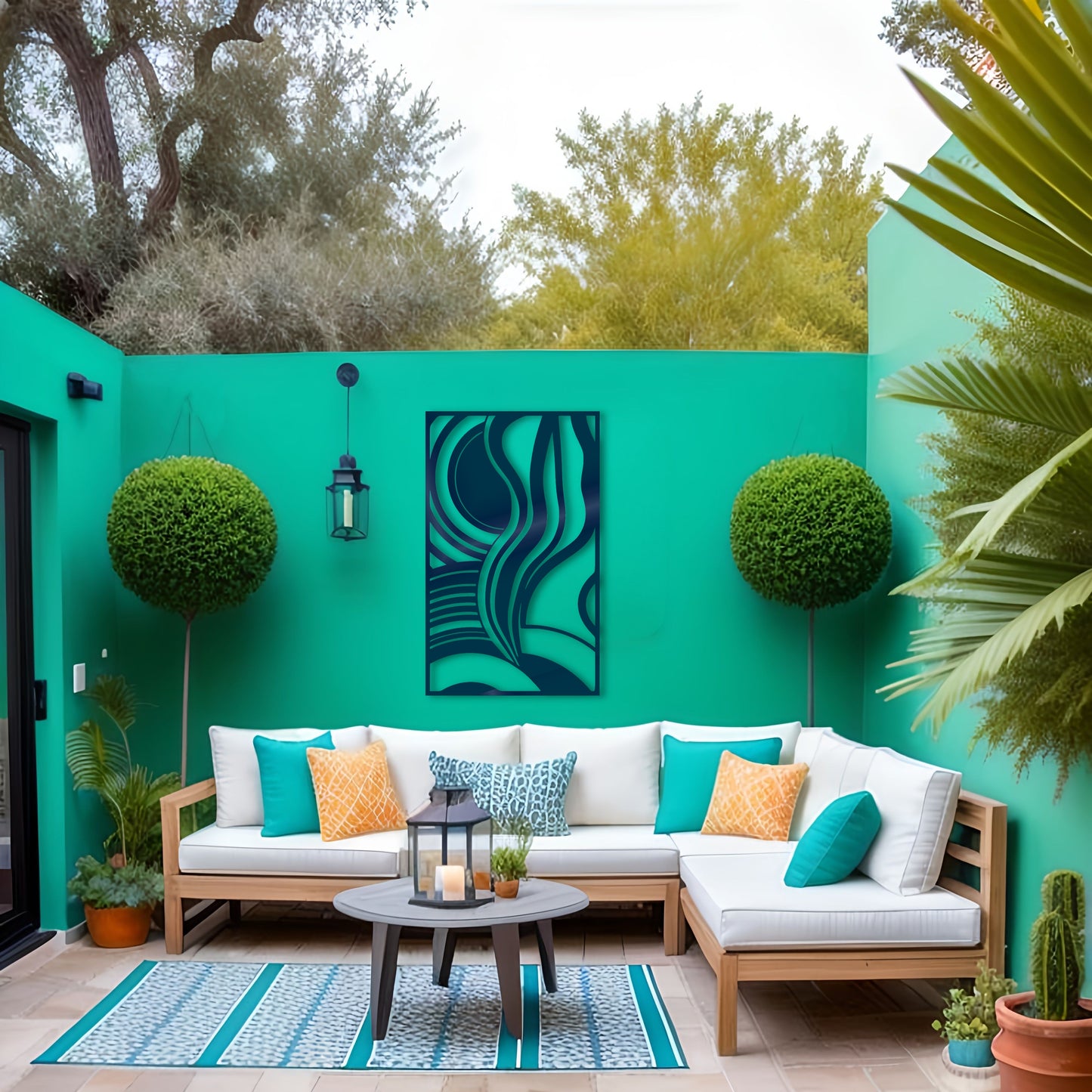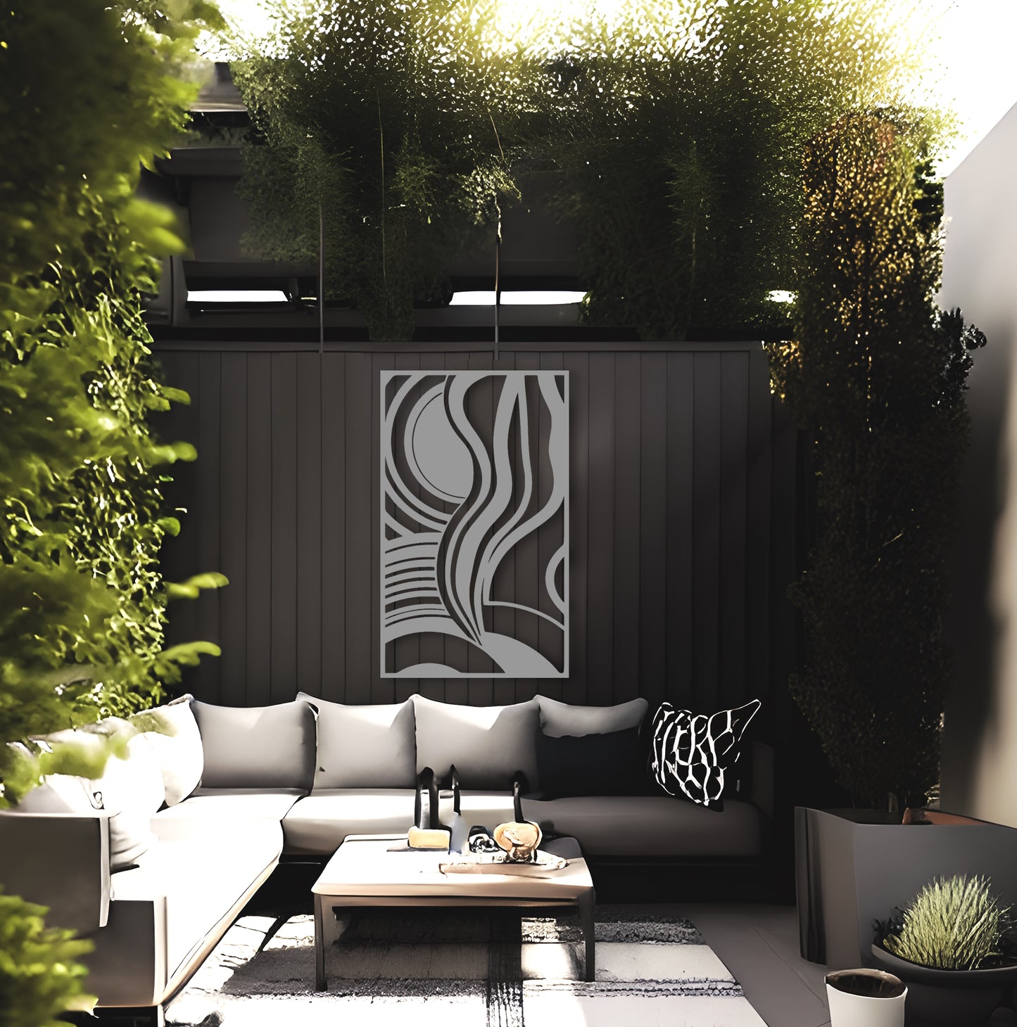 Enhance the ambiance of your living space with this exquisite metal wall art. The abstract design features mesmerizing wavy lines inspired by orphism, a movement characterized by vibrant colors and geometric forms. With a subtle nod to art nouveau, this piece seamlessly combines decorative elements and objective abstraction. Crafted with attention to detail, it exudes understated elegance. Perfect for both indoor and outdoor settings, this metal wall art is sure to captivate and elevate any room.
