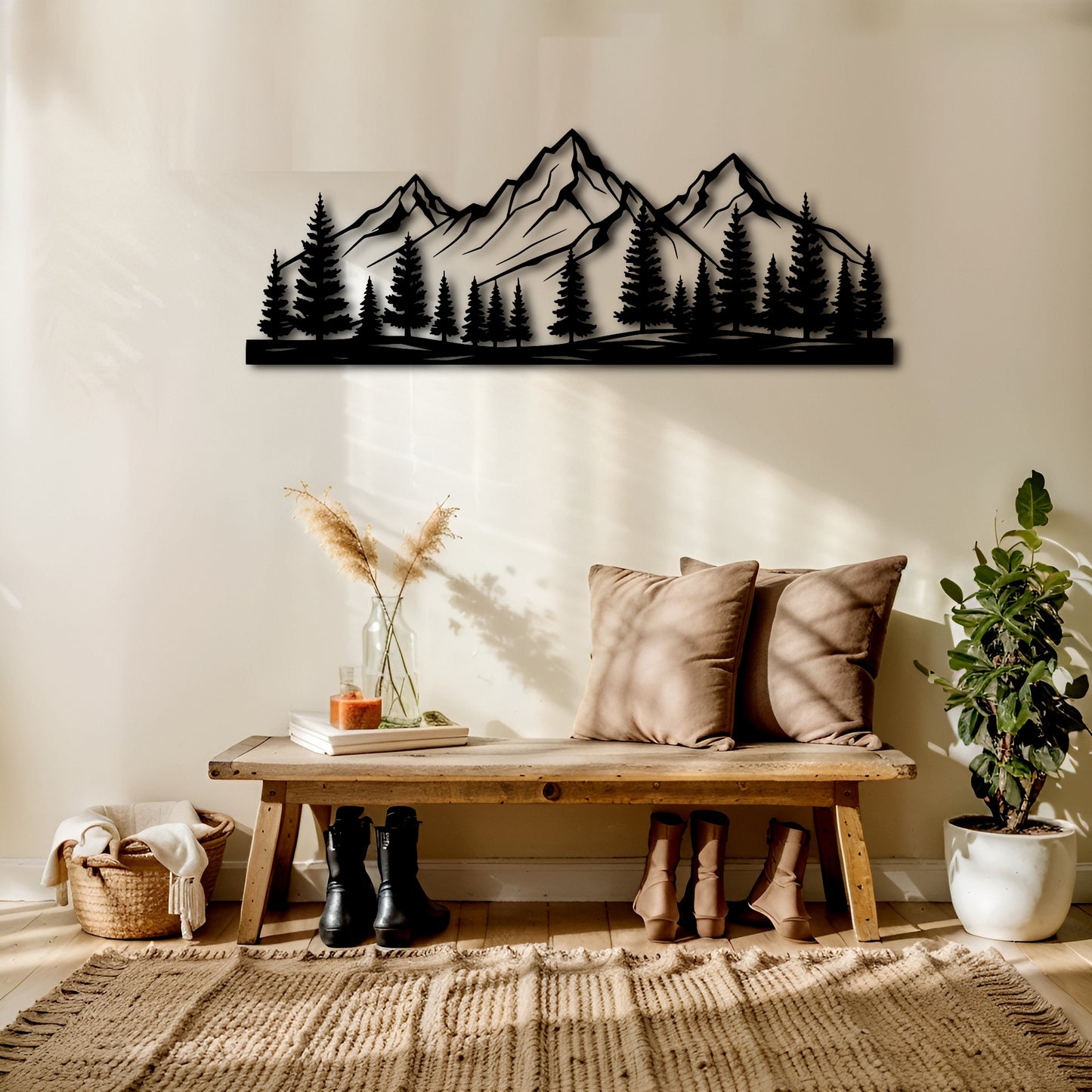 Transform your space with this stunning Rustic Mountain Metal Wall Art. Featuring a serene mountain landscape surrounded by evergreen trees, this handcrafted piece brings the beauty of the outdoors into your home. Perfect for nature enthusiasts and those who love a rustic or modern farmhouse aesthetic, this wall hanging is ideal for living rooms, cabins, offices, or as a thoughtful gift for outdoor lovers.