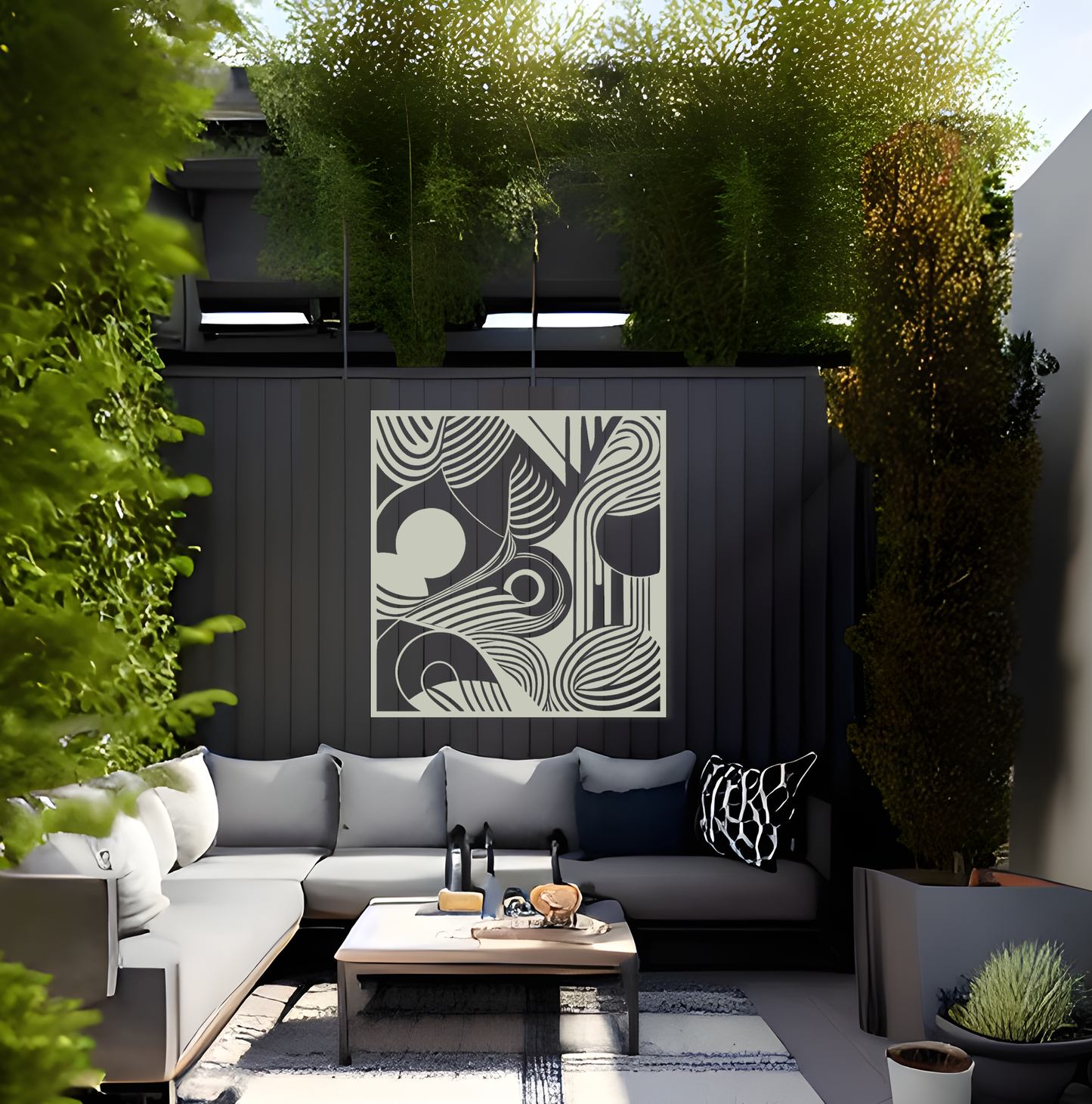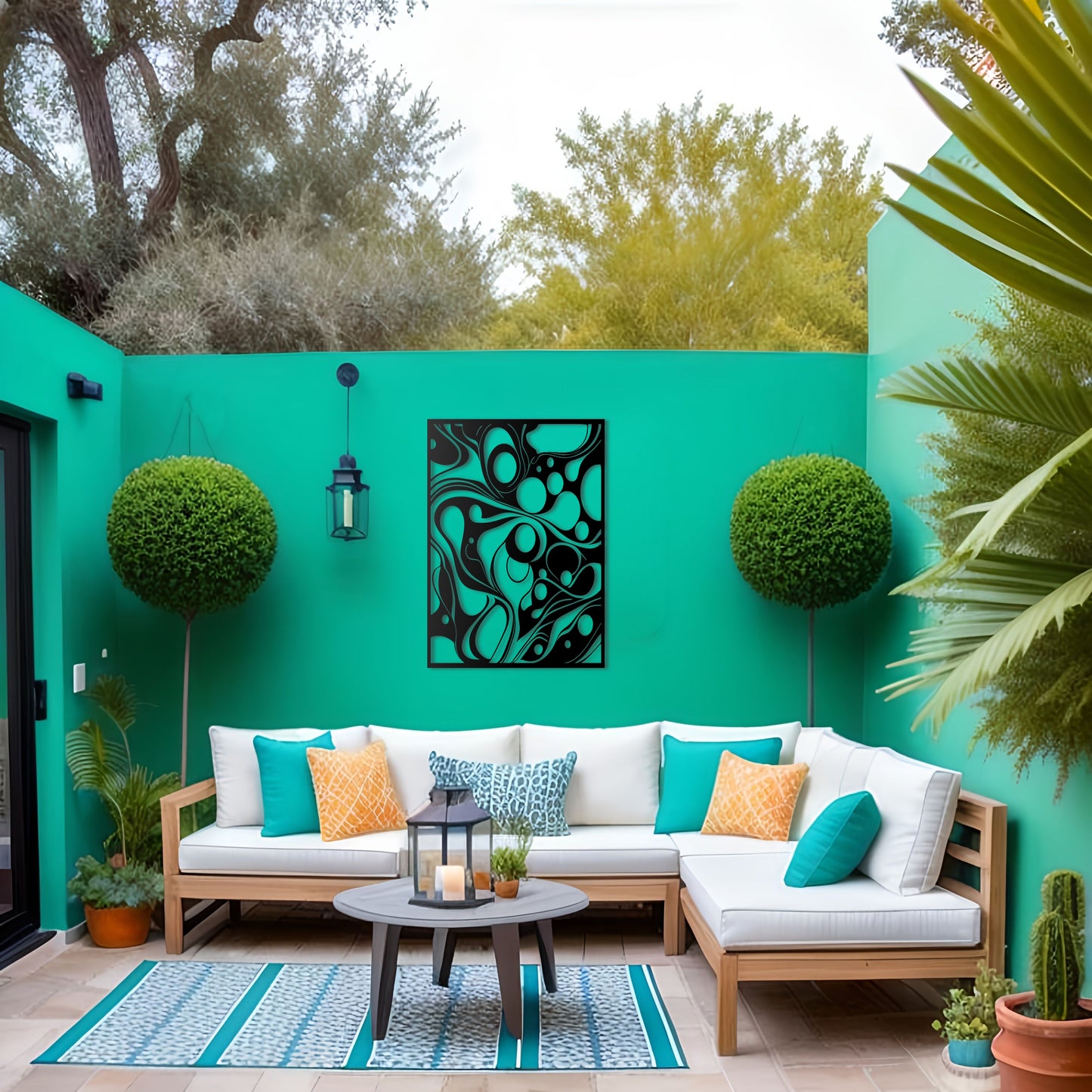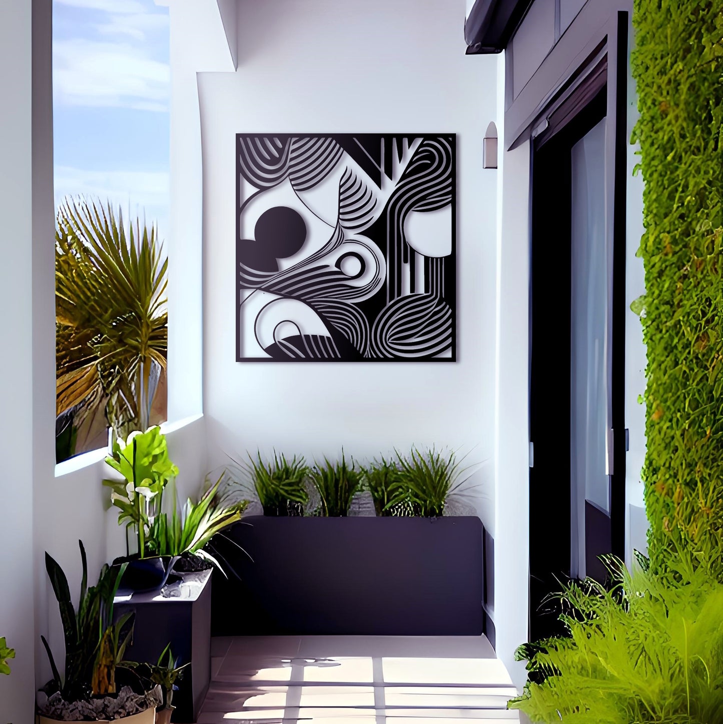 Experience the enchanting beauty of this abstract metal wall art, inspired by the visionary artist Victor Vasarely. Embodying the essence of lyrical abstraction, this piece showcases an organic flowing design that captivates the viewer's imagination. With its harmonious composition and art deco influences, this artwork becomes a metaphor for the fluidity of life and the interconnectedness of forms. Whether displayed as outdoor metal wall art or as metal wall decor in your living room, this captivating piece invites you to delve into the world of abstract expression and find your own personal meaning within its mesmerizing lines and shapes.