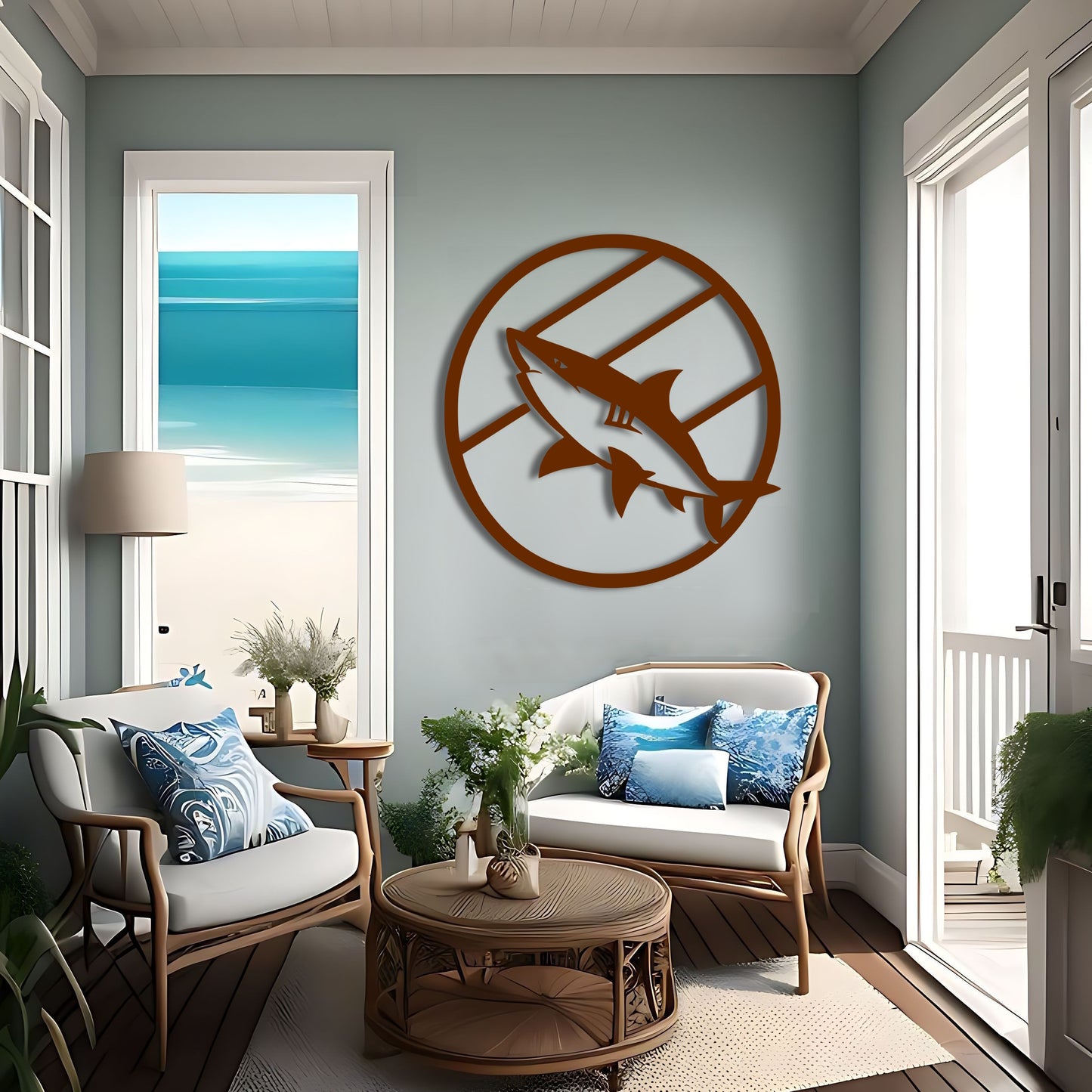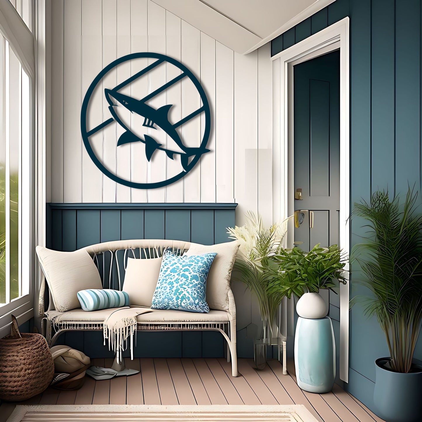 Shark Attack Circle: Metal Wall Art Inspired