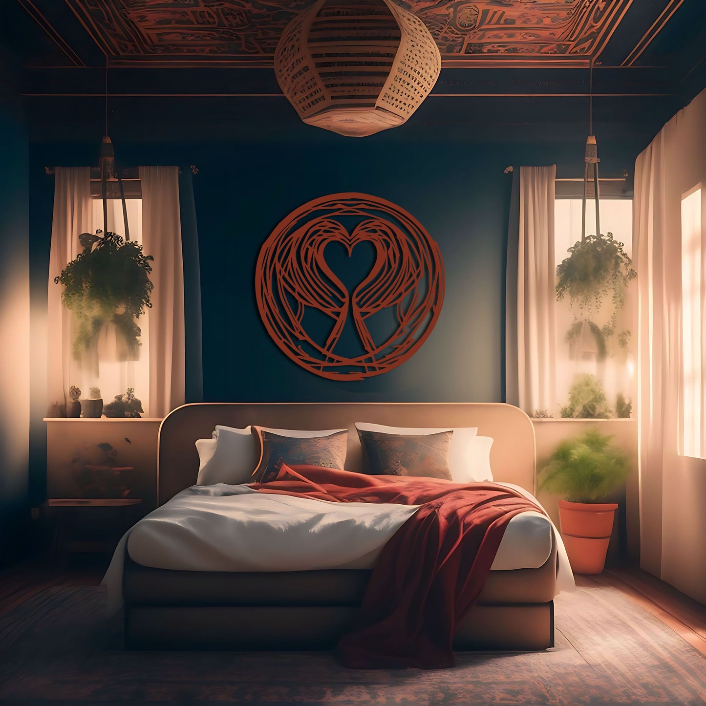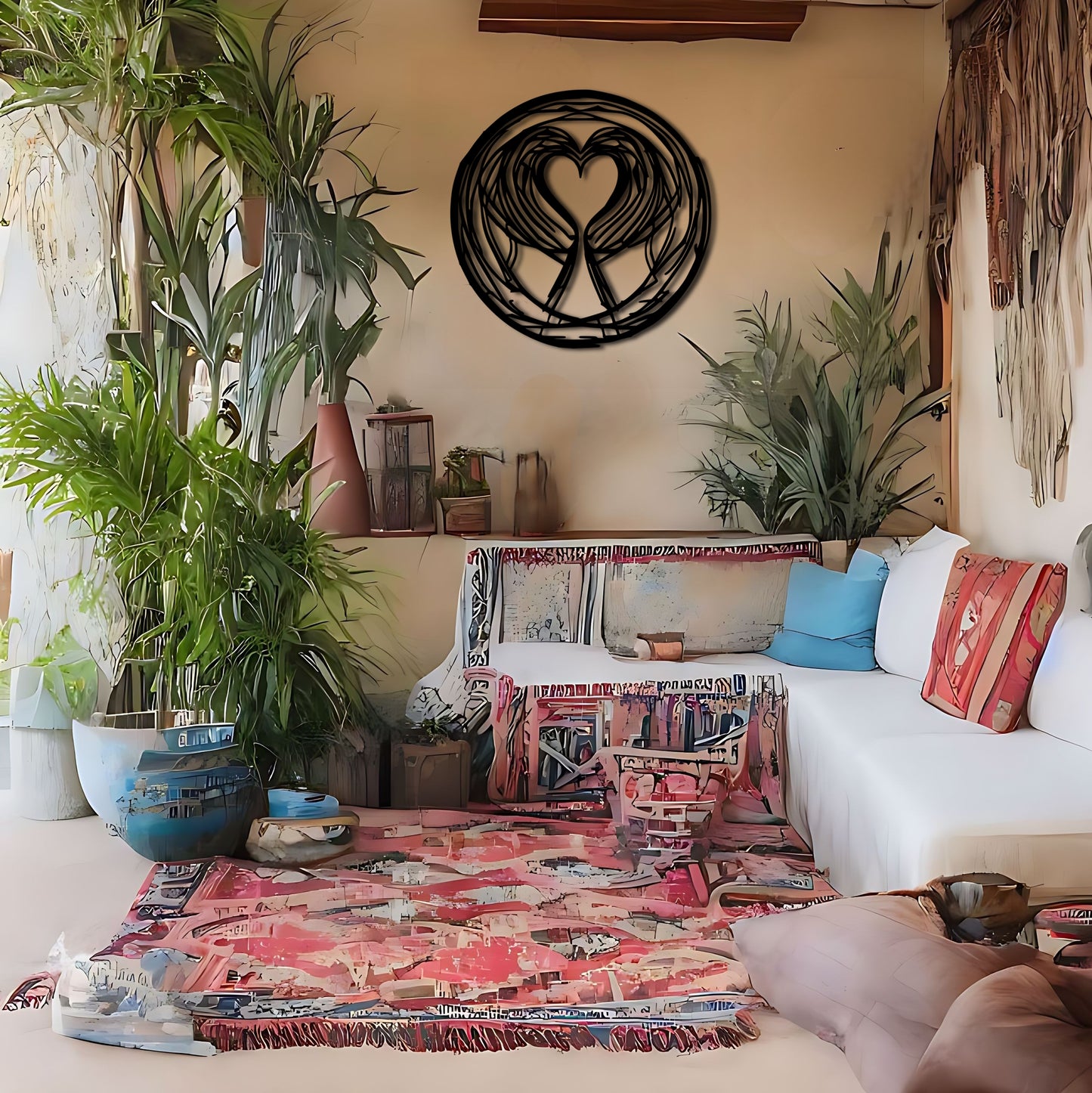 Add a touch of peace and tranquility to your home or office with our Stylized Heron Metal Wall Art. Featuring a bold outline of a heron and a symbolic heart in a circle design, this piece is both meaningful and aesthetically pleasing.Crafted from high-quality metal, our wall art is built to last and can be displayed indoors or outdoors. Choose from custom color options to match your decor perfectly.With its bohemian and global-inspired design, this metal wall art will add a unique touch to any room. Order now and bring a piece of nature and kundalini energy to your space.