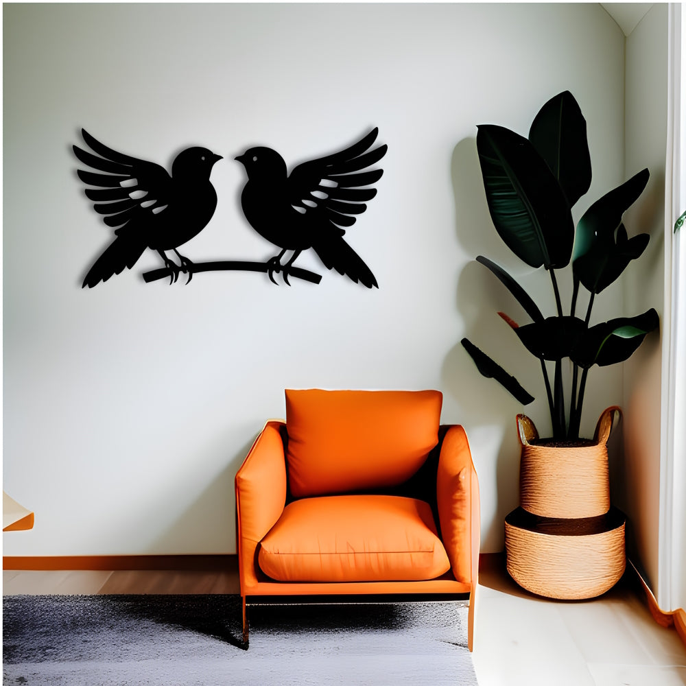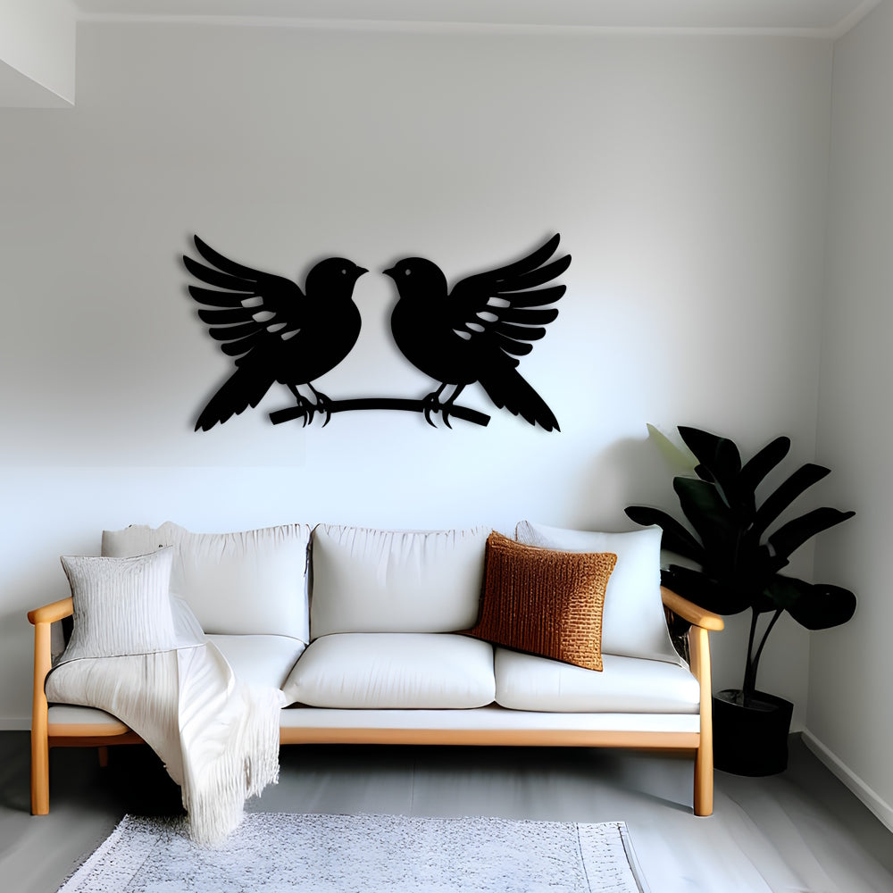 Symmetrical Birds Kissing on Branch Metal Wall Art
