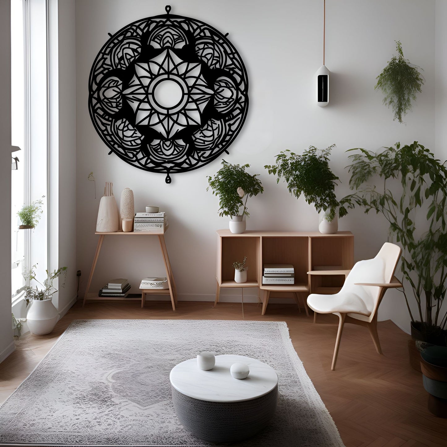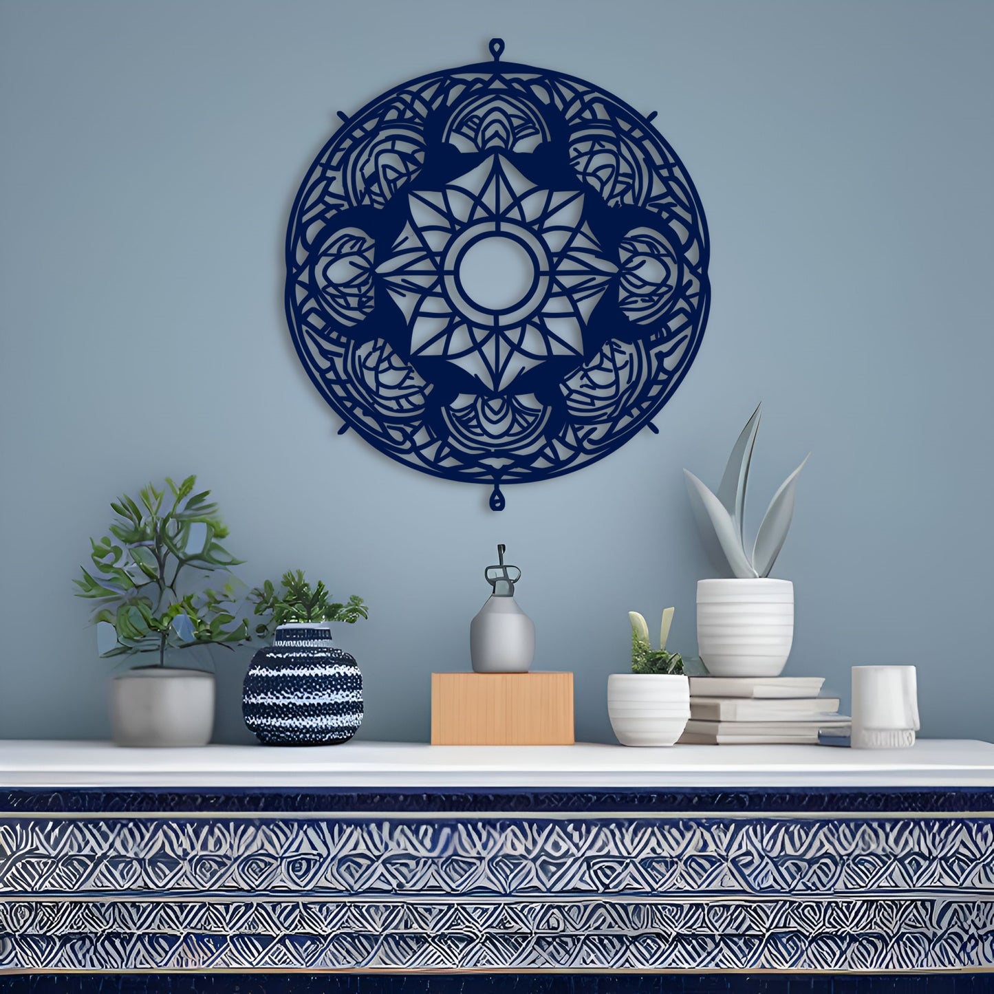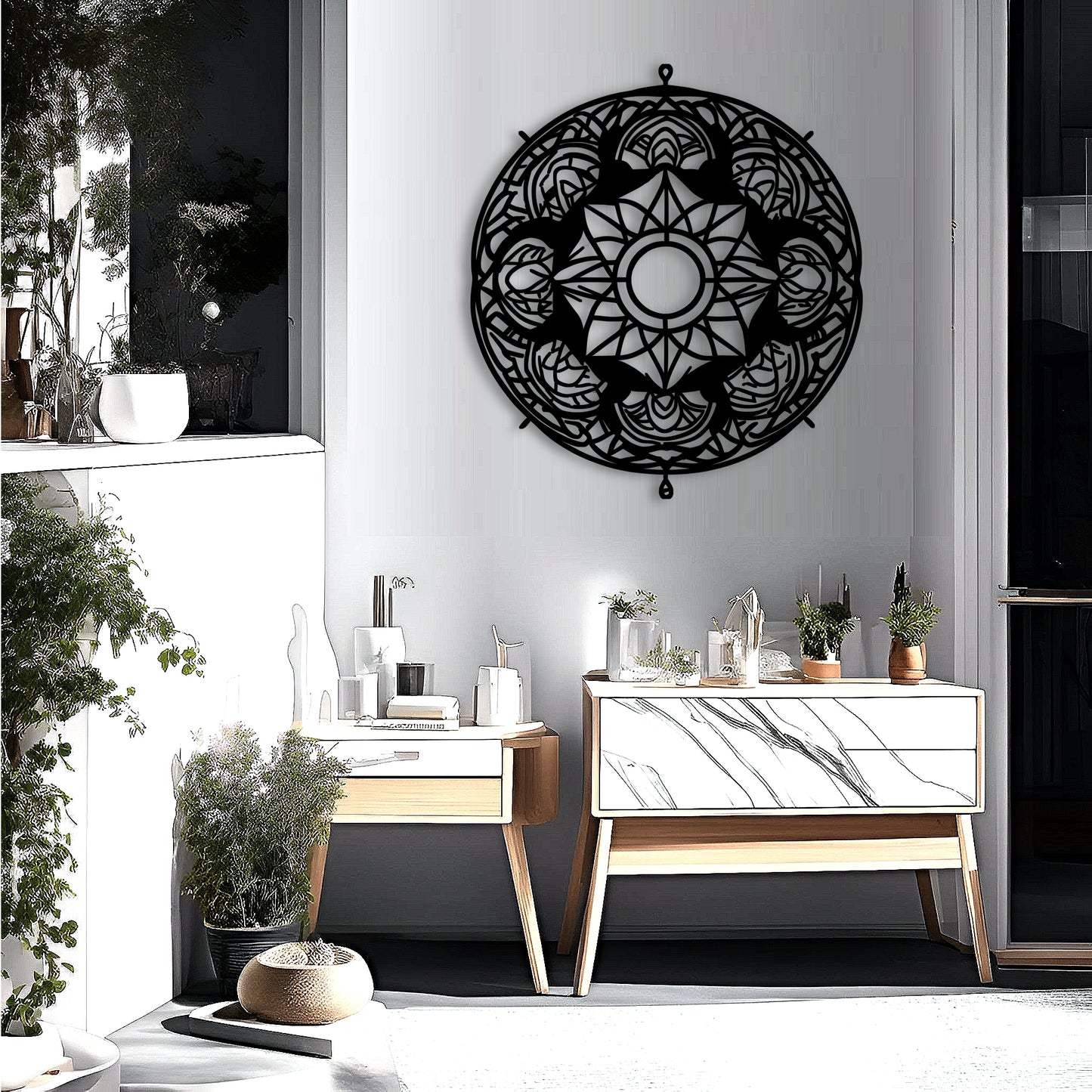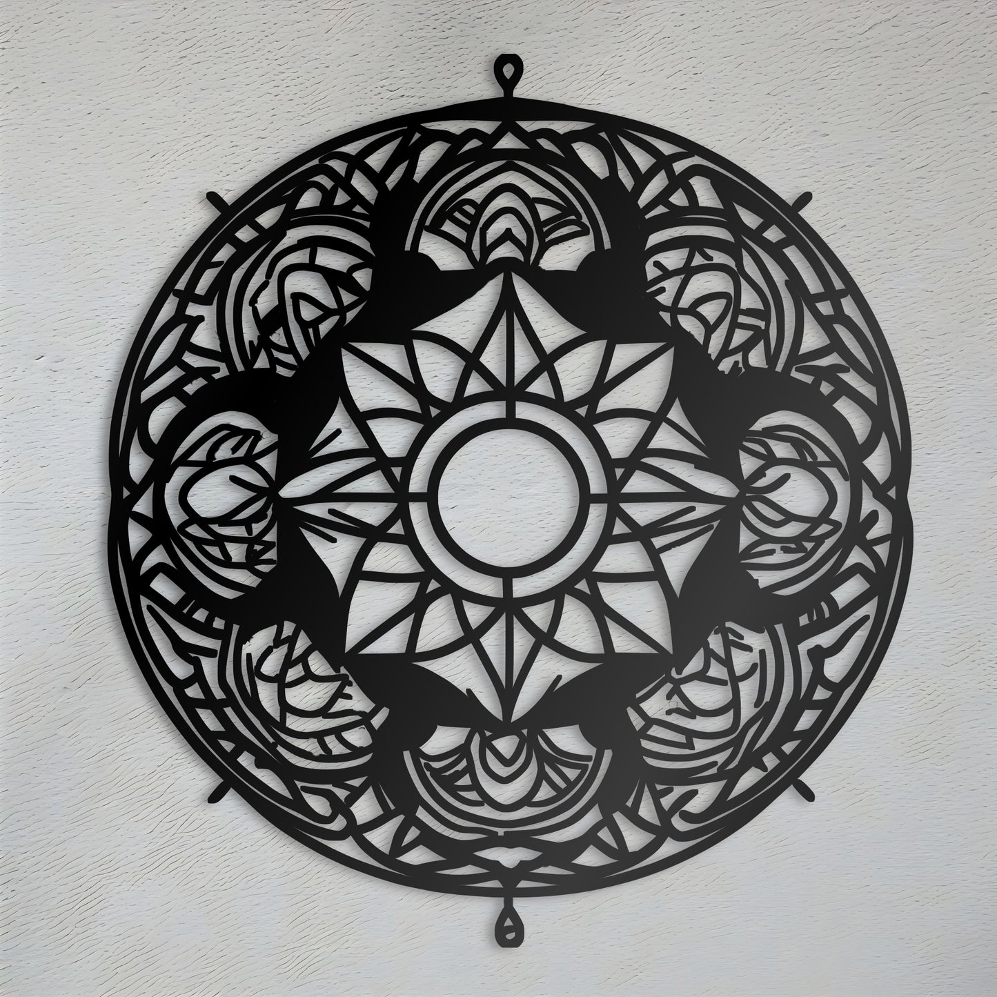 Elevate your home décor with our stunning symmetrical mandala wall art featuring intricate line art reminiscent of Byzantine mosaics. This circular generative art piece is designed to provide radial balance and add a touch of serenity to any space. Perfect as a gift for yoga lovers or for adding a meditative ambiance to your living room or outdoor areas. Our metal artwork comes in a variety of custom color options and is easy to install as a beautiful and durable addition to your wall art decor.