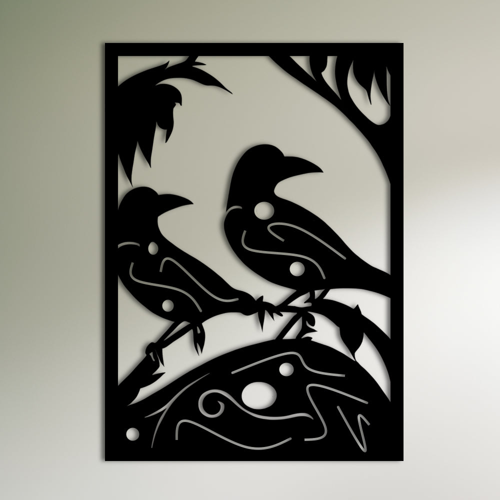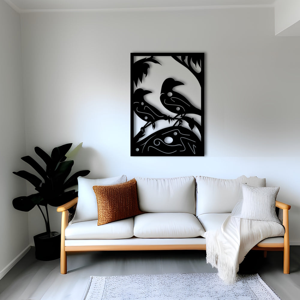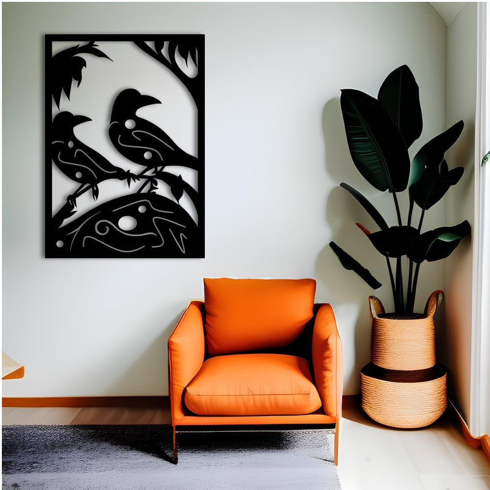 Add a touch of the tropics to your home with this stunning metal wall art. Featuring two vibrant birds perched in an intricately designed nest, this piece is perfect for bringing a touch of nature into your living space. The birds are depicted with intricate tribal patterns, making them a unique and eye-catching addition to any room. The forest backdrop adds to the natural feel of the piece, making it a great choice for any nature lover. The metal construction ensures that this wall art is durable and long-lasting, while the custom color options allow you to create a look that perfectly complements your decor.