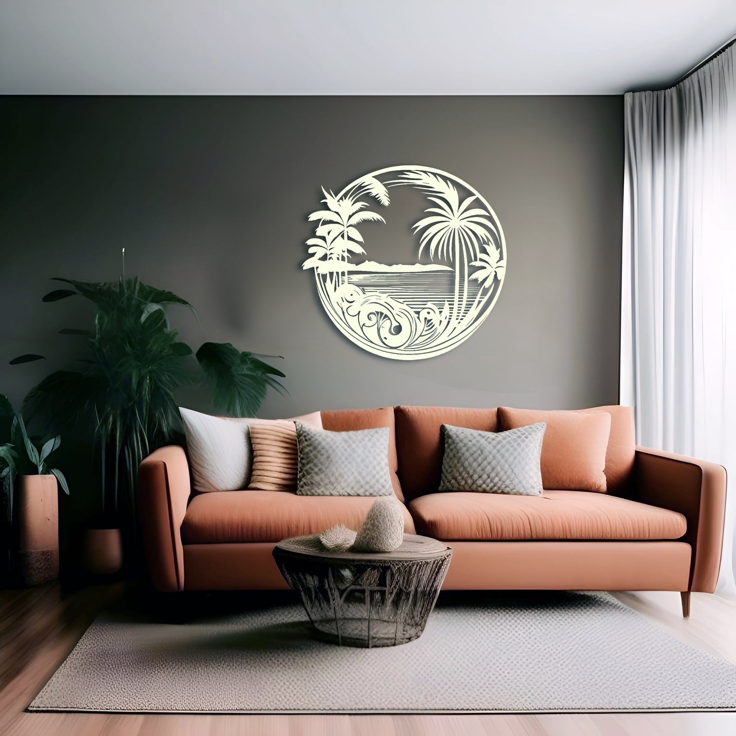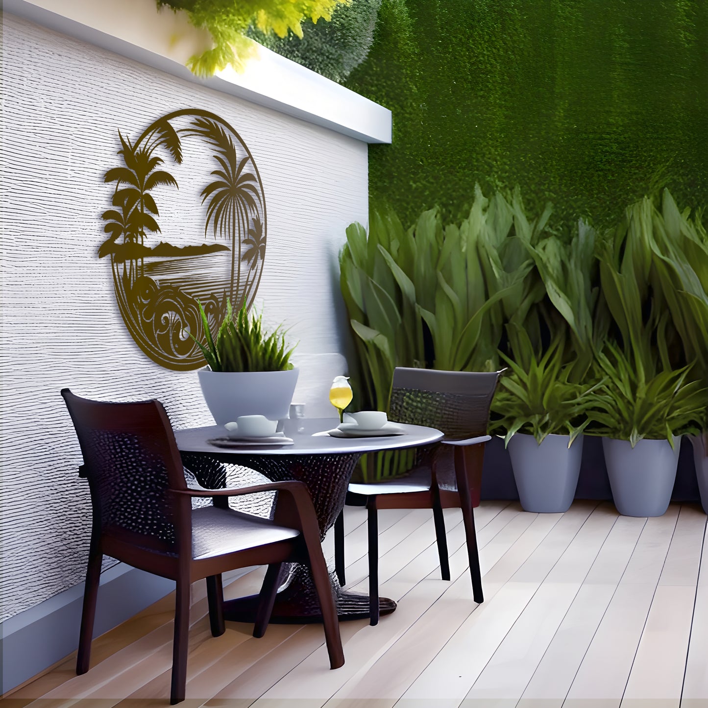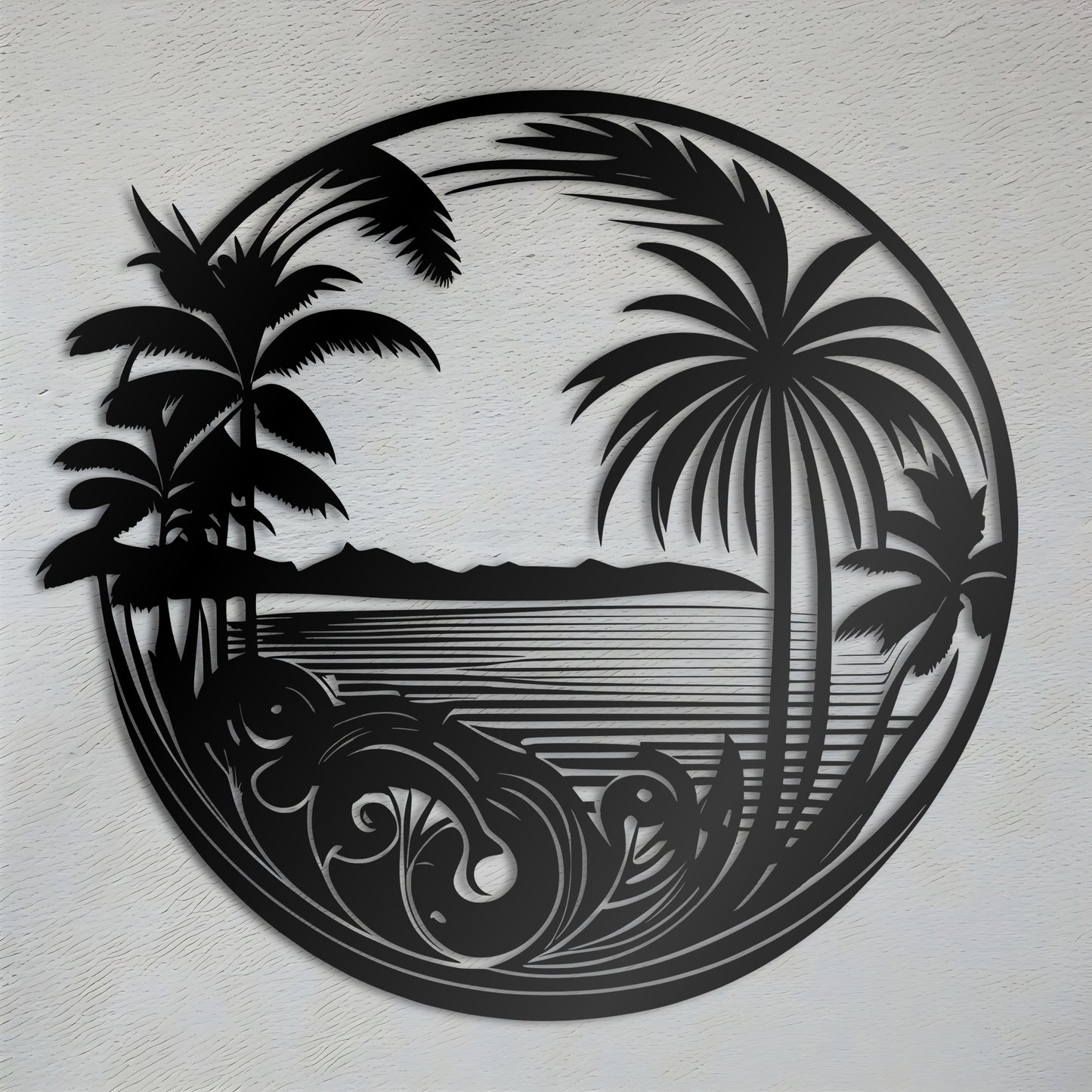 Bring a touch of the tropics to your home with our "Tropical Delight Metal Wall Decor". Featuring an intricate design of tropical trees and palms, this metal wall art piece is sure to create a relaxing and serene atmosphere in any room. Made from high-quality metal, it is durable and suitable for both indoor and outdoor use. Add a splash of color and a touch of nature to your decor with this stunning wall art.