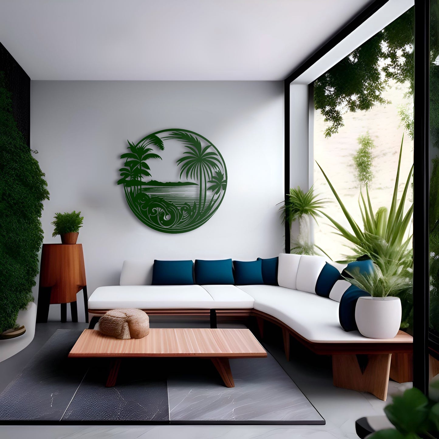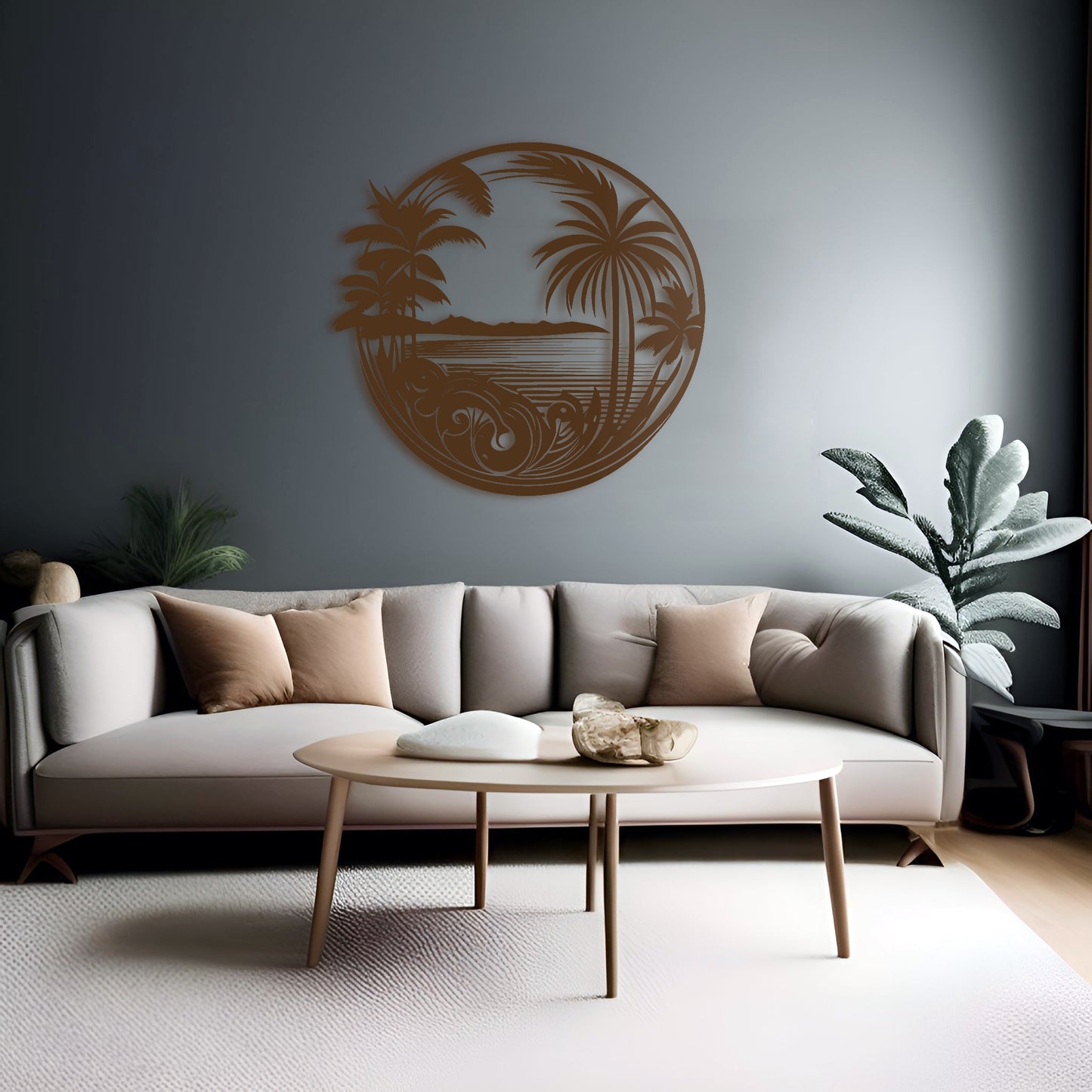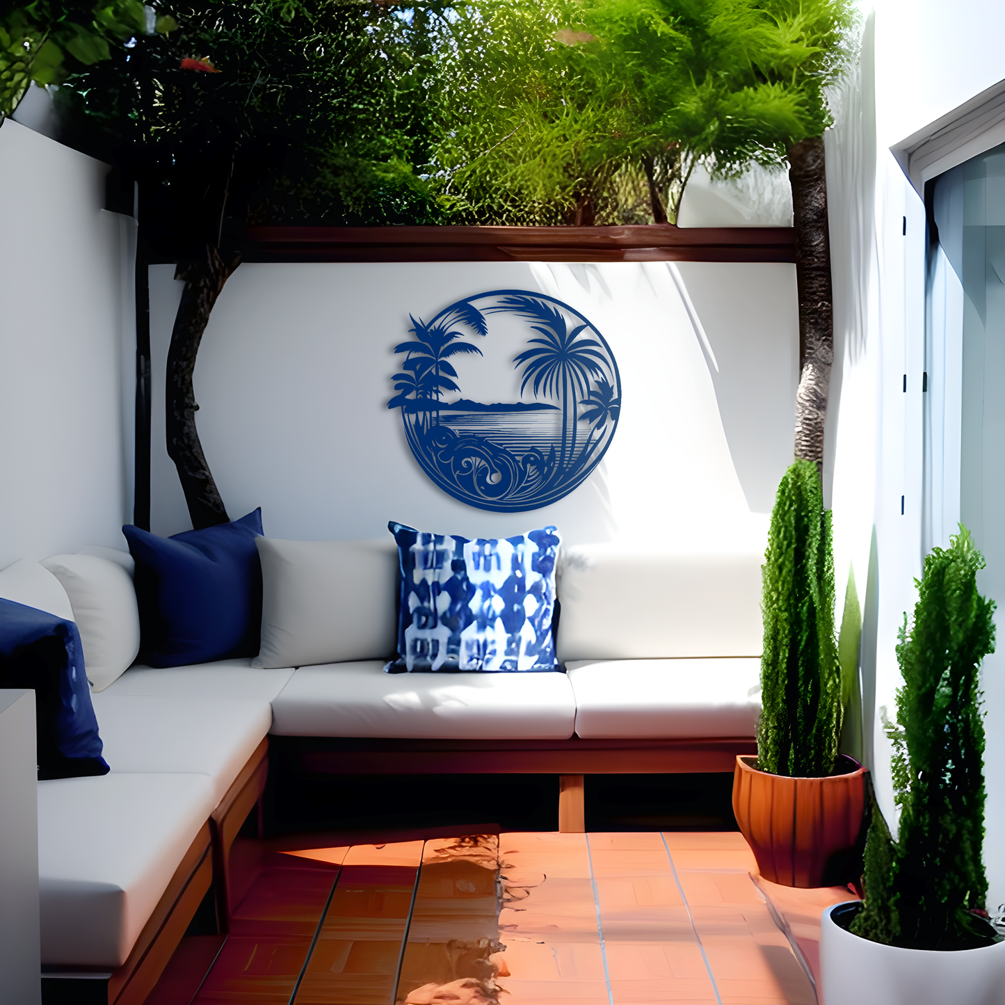 Bring a touch of the tropics to your home with our "Tropical Delight Metal Wall Decor". Featuring an intricate design of tropical trees and palms, this metal wall art piece is sure to create a relaxing and serene atmosphere in any room. Made from high-quality metal, it is durable and suitable for both indoor and outdoor use. Add a splash of color and a touch of nature to your decor with this stunning wall art.