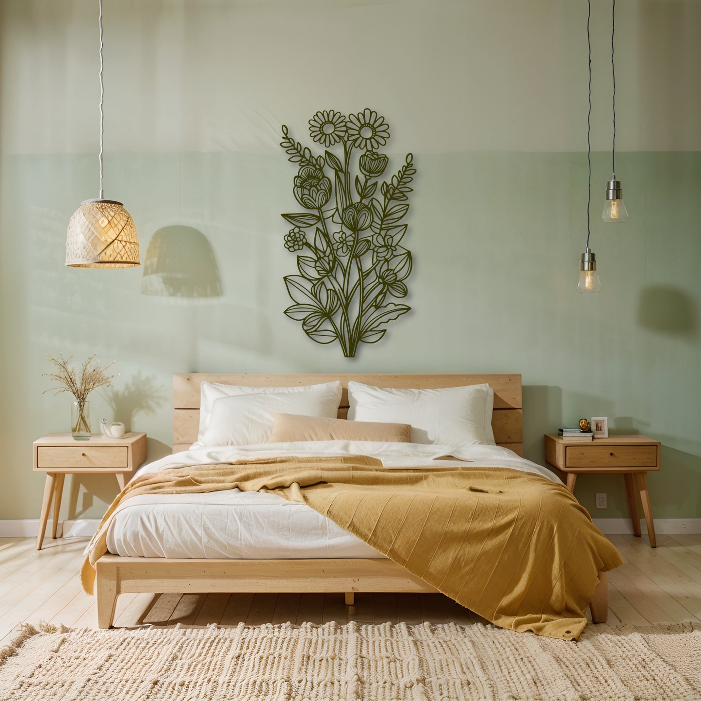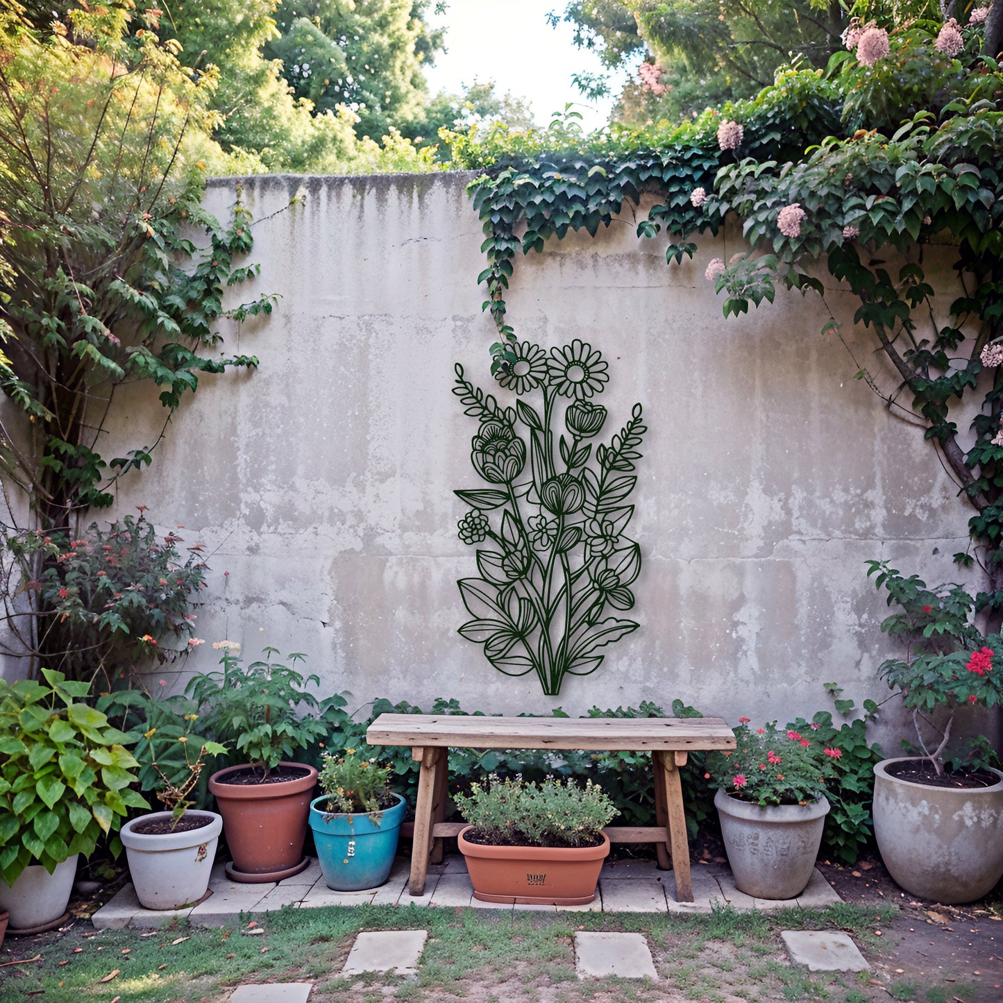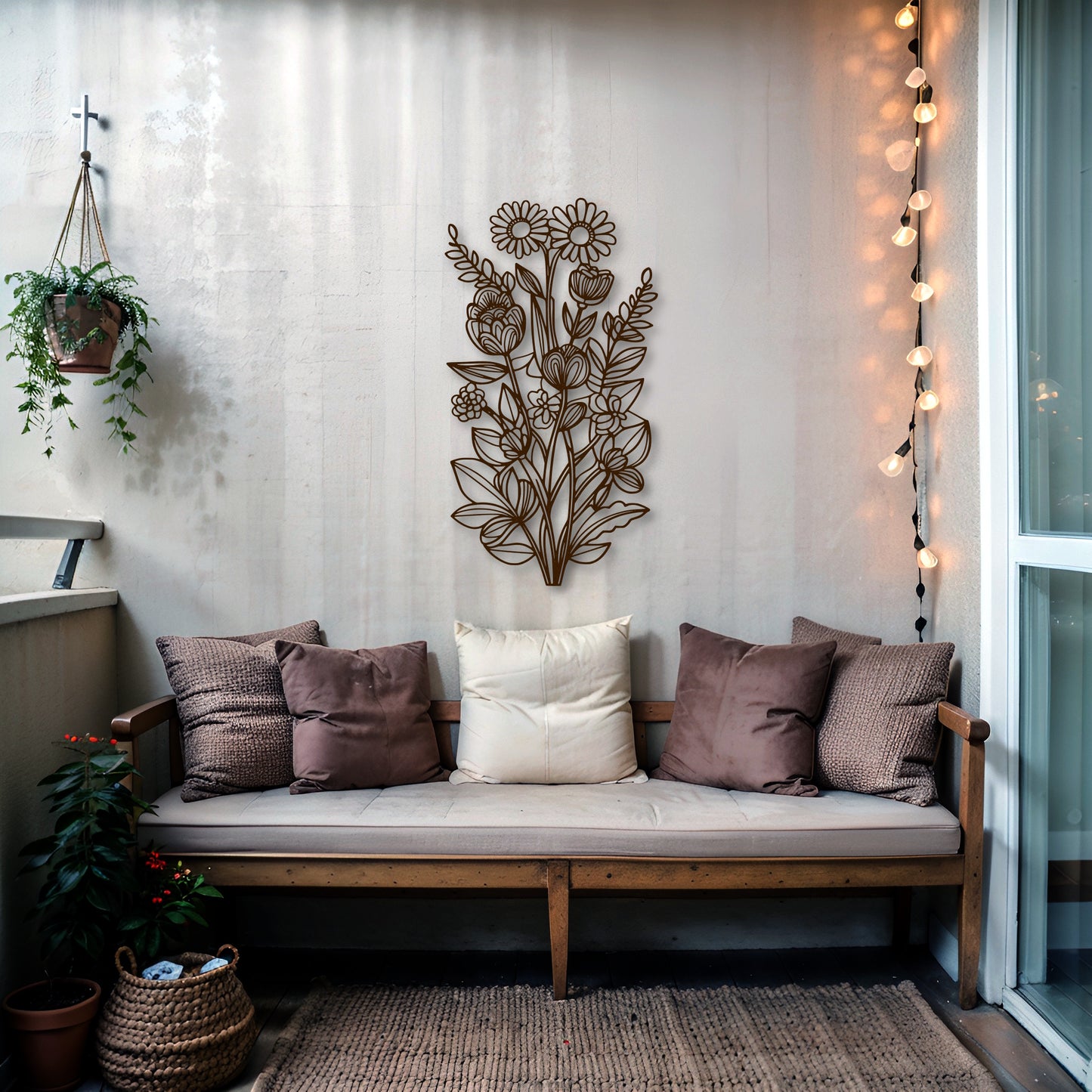 Bring nature indoors with this Vertical Floral Bouquet Metal Wall Art, featuring a delicate arrangement of flowers and leaves in a vertical steel design. Perfect for enhancing narrow wall spaces in your living room, bedroom, or as a charming outdoor accent on a patio or garden wall. This handcrafted metal décor combines modern elegance with timeless beauty.