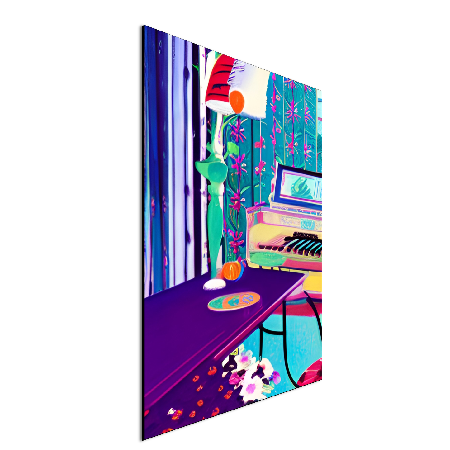 This Henri Matisse metal poster captures the aesthetic nostalgia of the synthwave, retrowave, and vaporwave styles. The image depicts a corner of a piano room, with scene illustration that evokes a sense of longing for a bygone era. Our metal print process ensures that the colors are bold and vivid, giving the artwork an added depth and dimensionality. This piece is perfect for those who appreciate the unique vision of Henri Matisse and the retro-futuristic styles of synthwave, retrowave, and vaporwave.