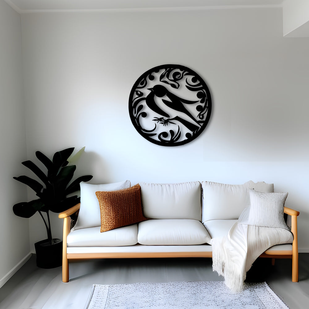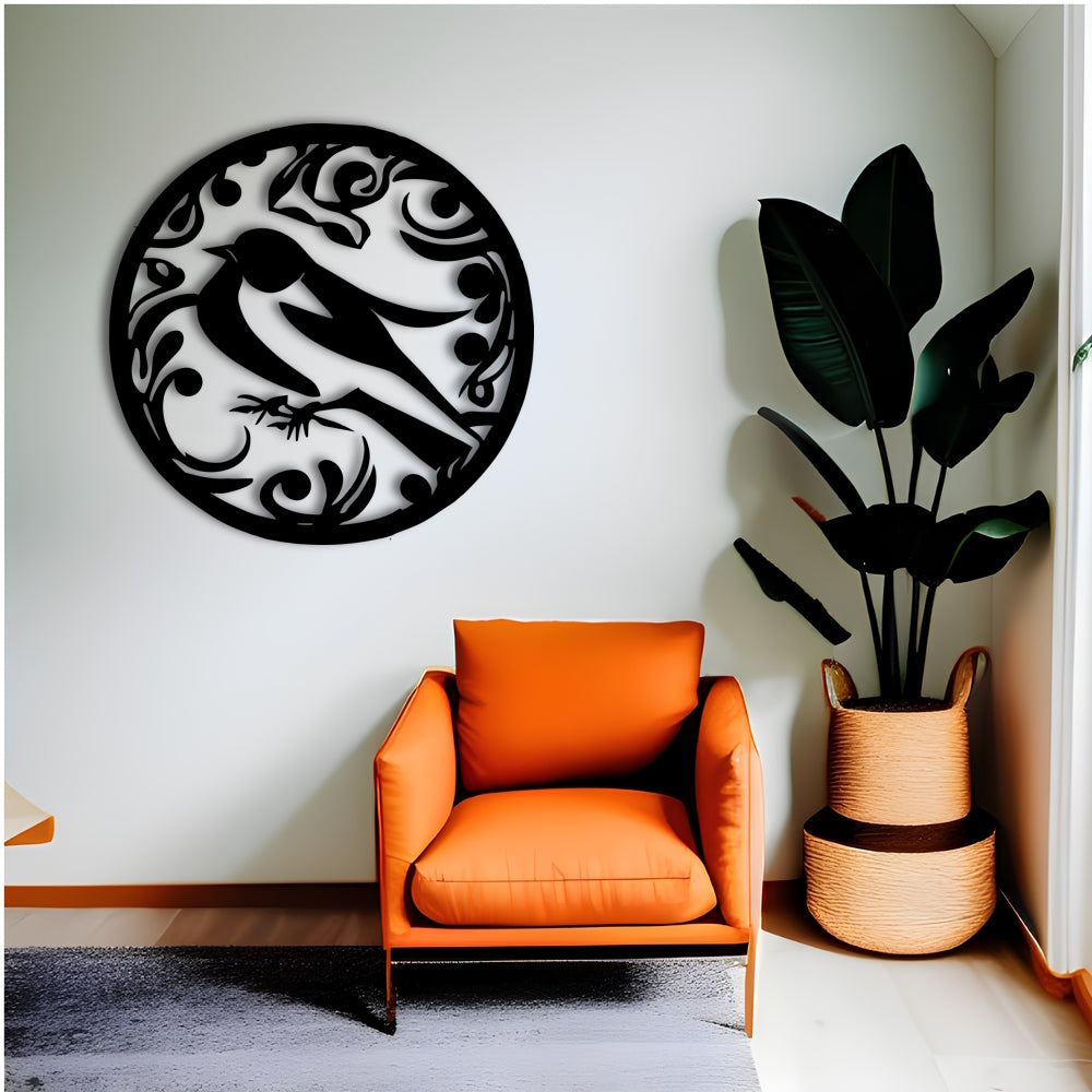 Add a touch of nature-inspired charm to your home with our Plump Bird Circle Frame Metal Wall Art. Featuring a plump bird perched among abstract tree branches, this piece is both whimsical and elegant. The circular frame adds a unique touch, while the abstract design brings a contemporary feel to any space. Made of durable metal, this piece is suitable for both indoor and outdoor use. Choose from custom color options to perfectly match your decor.