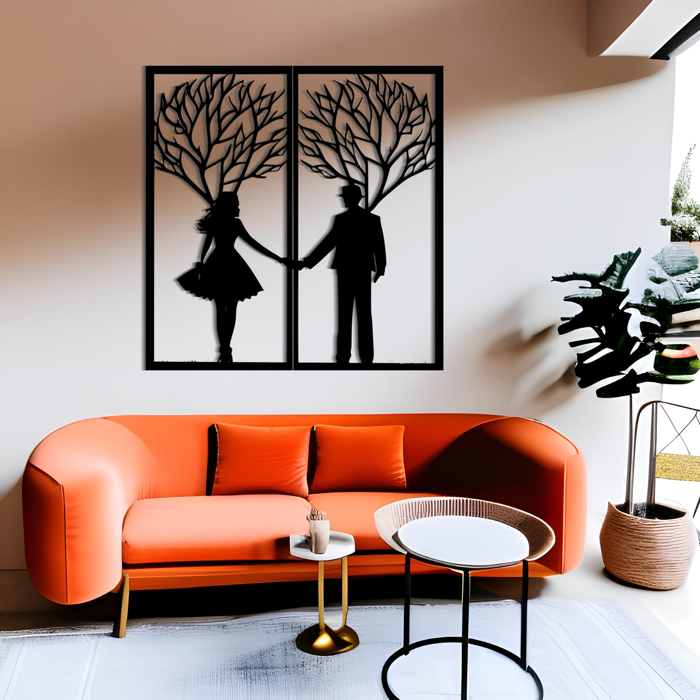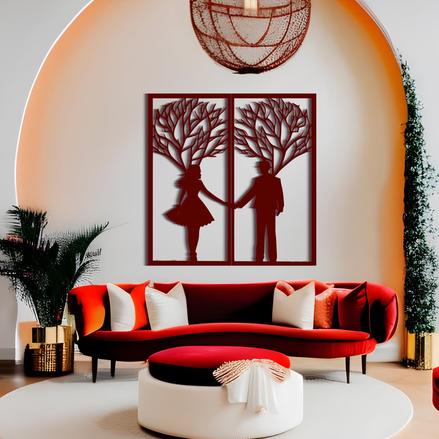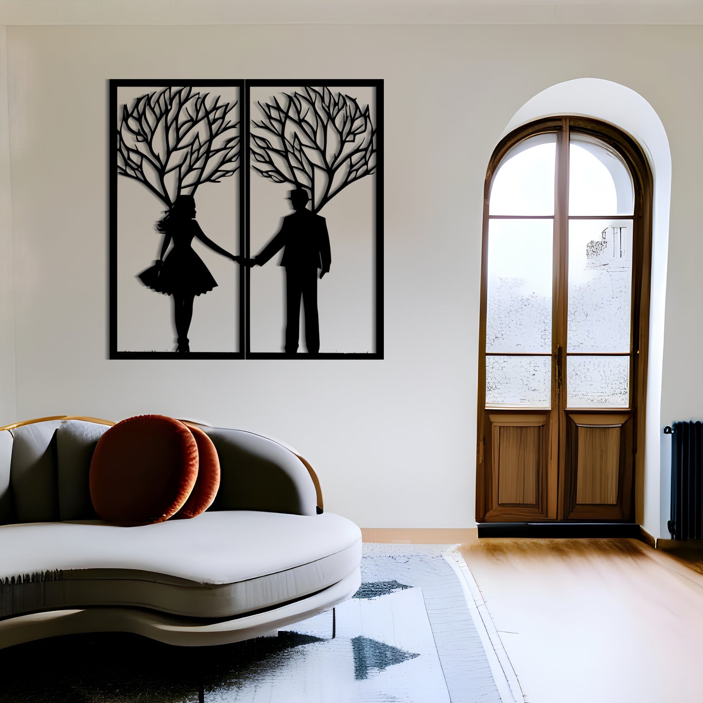 Crafted from high-quality metal, this wall art is durable and long-lasting. The silhouette design is available in a range of custom color options, including gold, silver, and black. Hang this piece in your living room, bedroom, or hallway to add a touch of elegance and romance to your home decor.