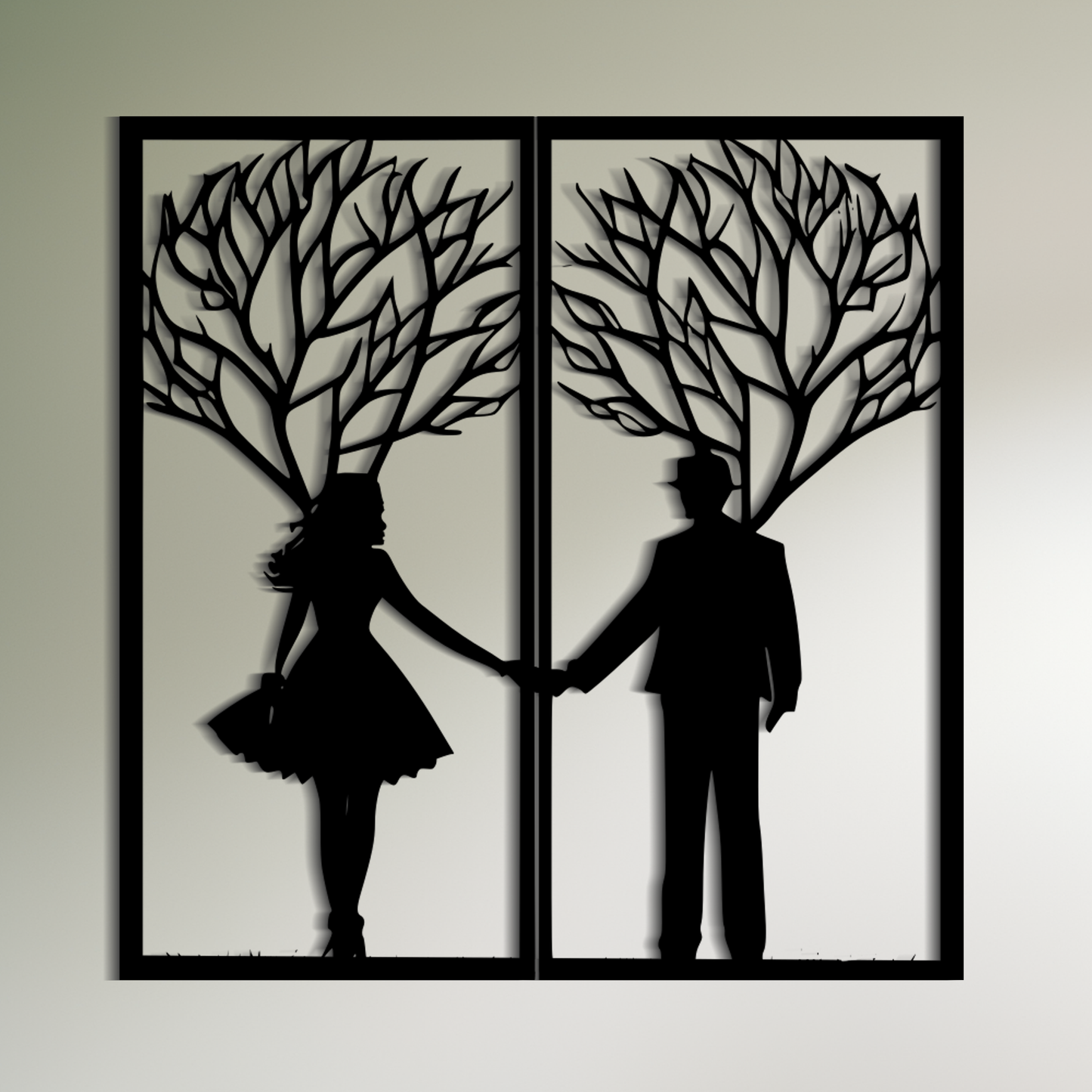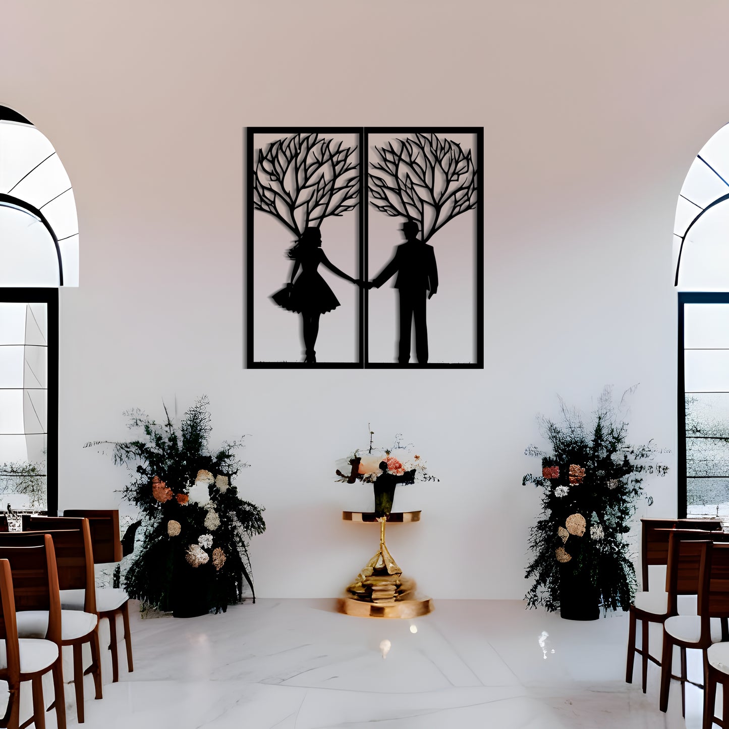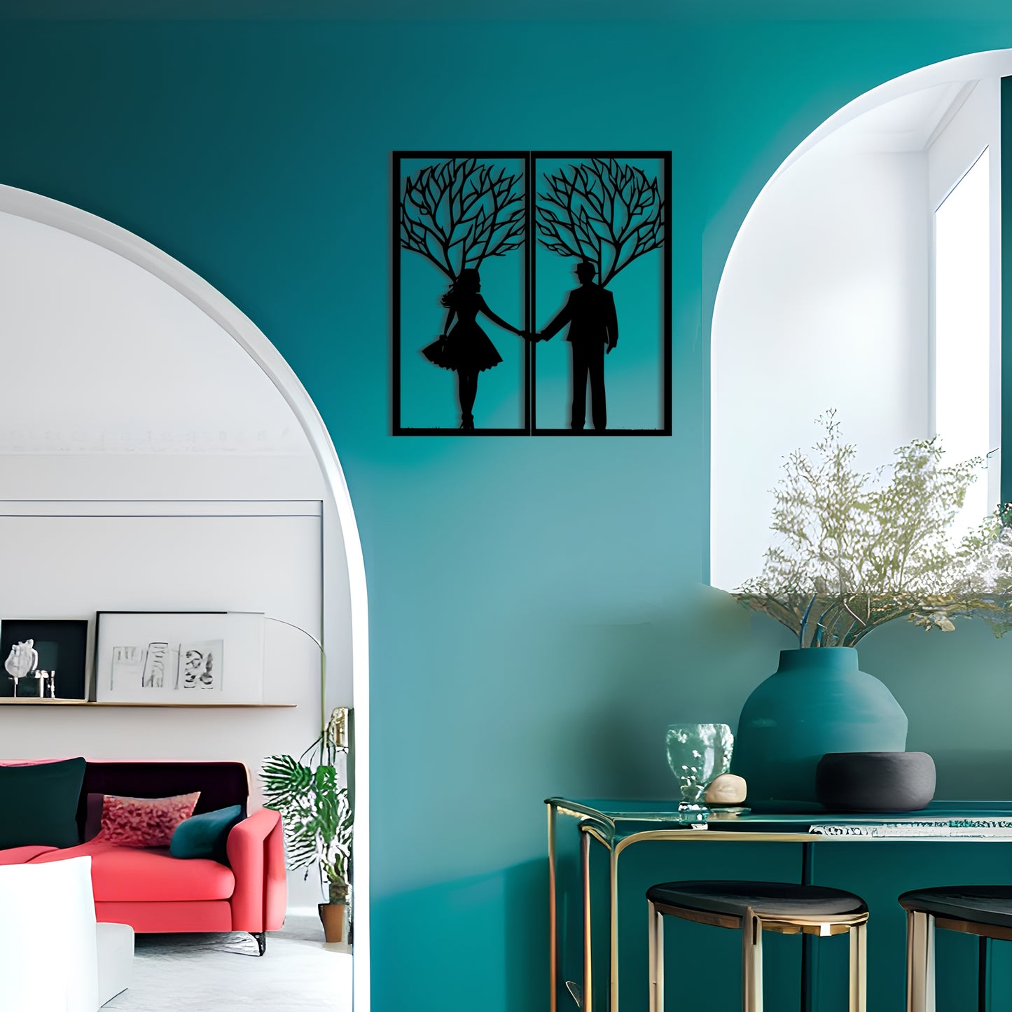Crafted from high-quality metal, this wall art is durable and long-lasting. The silhouette design is available in a range of custom color options, including gold, silver, and black. Hang this piece in your living room, bedroom, or hallway to add a touch of elegance and romance to your home decor.
