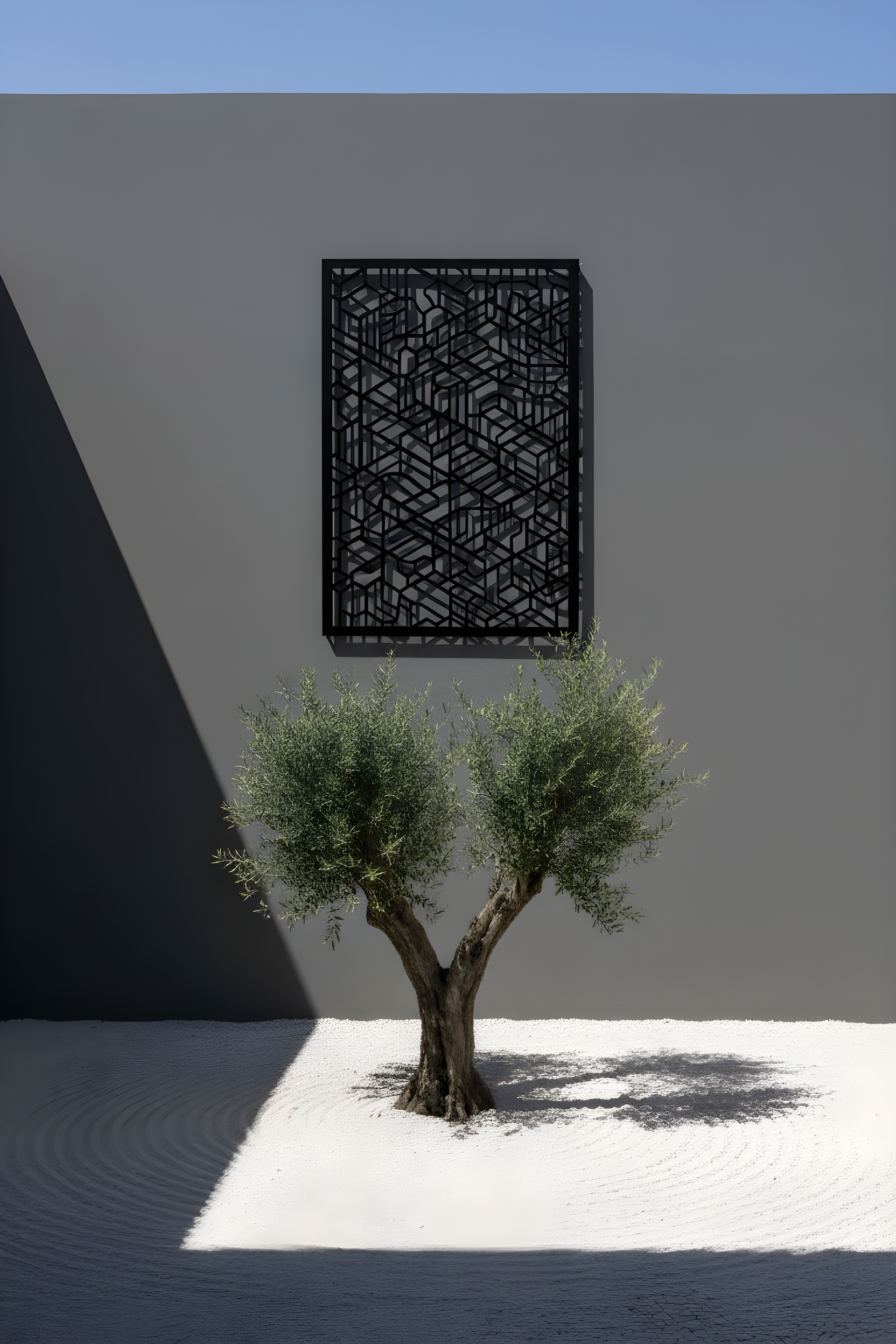 This piece is a dense, architectural grid—like an aerial map of an ancient city rewritten in modern geometry. Interlocking corridors, stepped angles, and softened junctions create a brutalist rhythm that’s strict, yet calm. The negative space is intentional: it turns the wall into a second surface, where light threads through the lattice and casts a shifting blueprint of shadows—clean lines in the morning, deeper relief by late afternoon.