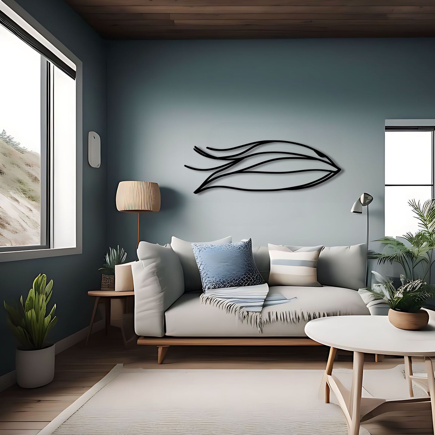 Add a touch of conceptual art to your home with this stunning abstract fish wall art inspired by the iconic Zaha Hadid. This modern and simplified piece features clean line art and a cartoon style that will bring life to any room. Perfect for fishing enthusiasts, marine life lovers, beach houses, and lake houses decor, this metal artwork is sure to make a statement. The gift of this unique and contemporary piece is sure to be cherished for years to come. Available in custom color options to match any decor.