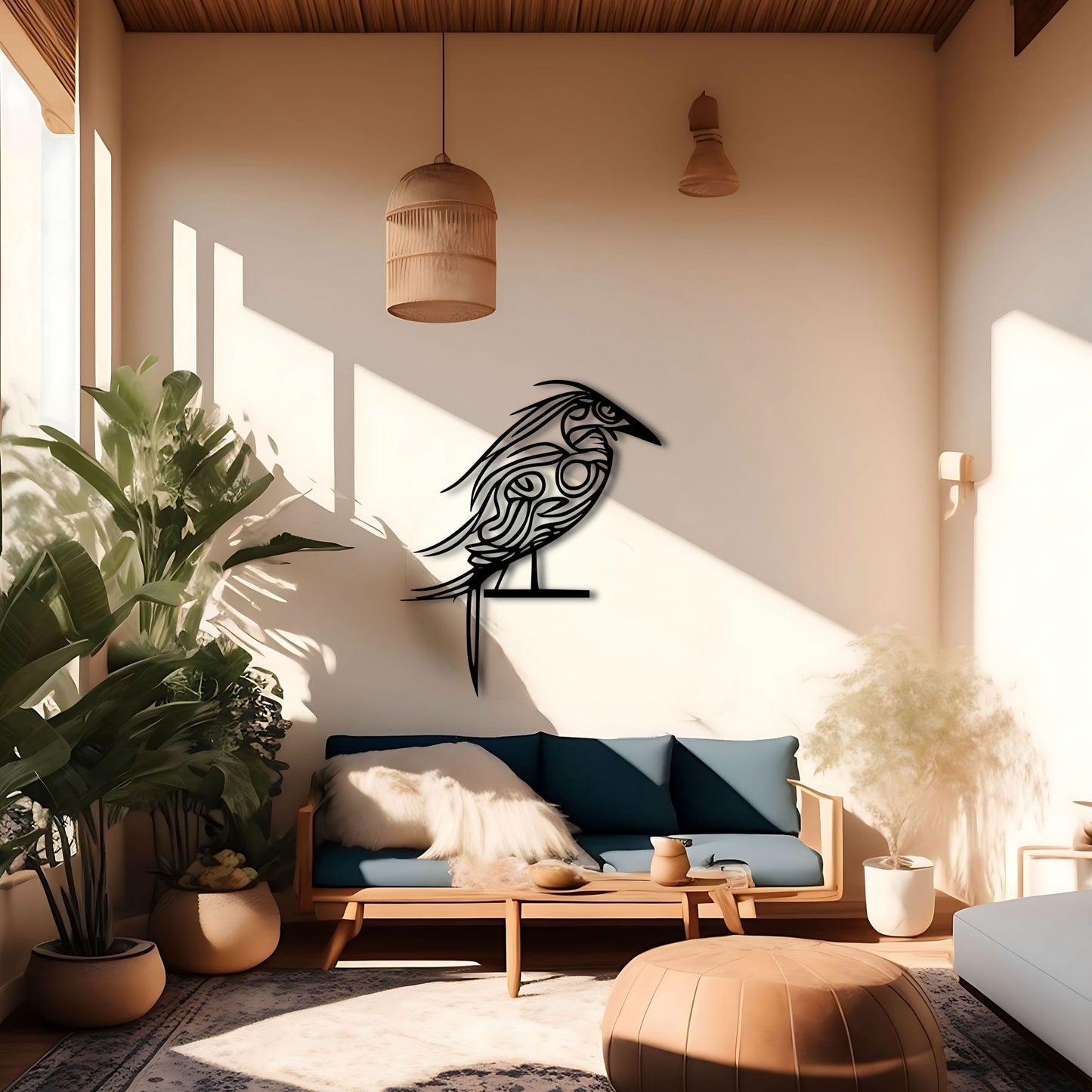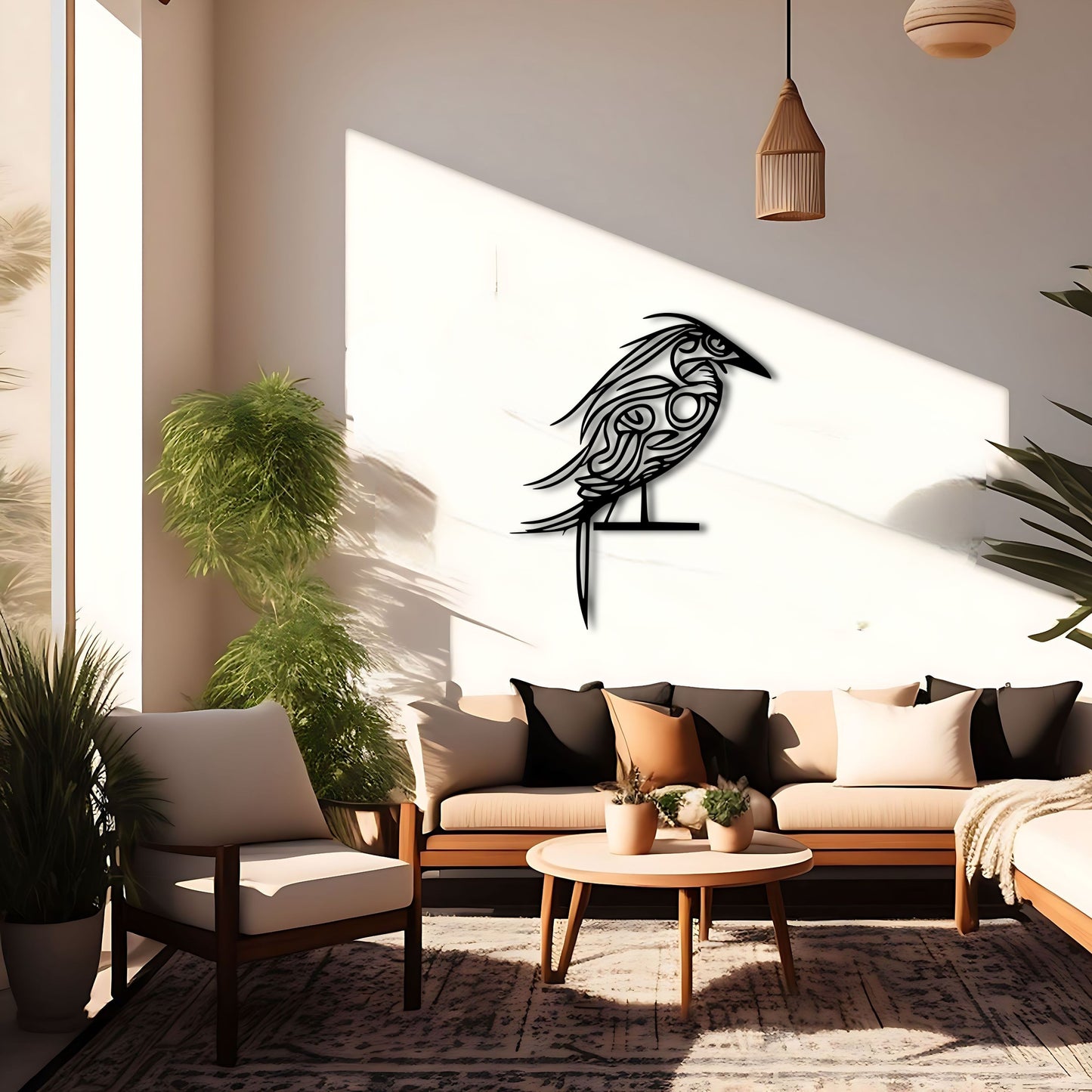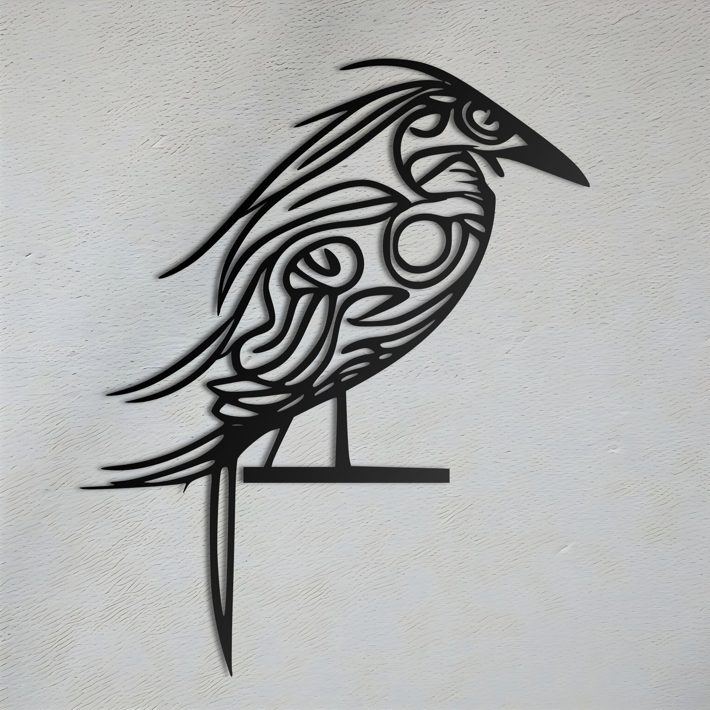 This stunning metal wall art features a stylized silhouette of a confident-looking bird in the intricate and bold style of celtic art. The vivid lines of the artwork showcase the attention to detail in every aspect of this ceremonial and tribal-inspired piece. The side view centered bird is waiting to be the centerpiece of any room with its bold design that includes fiibonacci elements. The metal art is perfect for those seeking bohemian wall art or global-inspired aesthetics decor. The versatile custom color options available allow for seamless integration into any existing decor. Bring this unique piece of art into your home and elevate your interior design to new heights.
