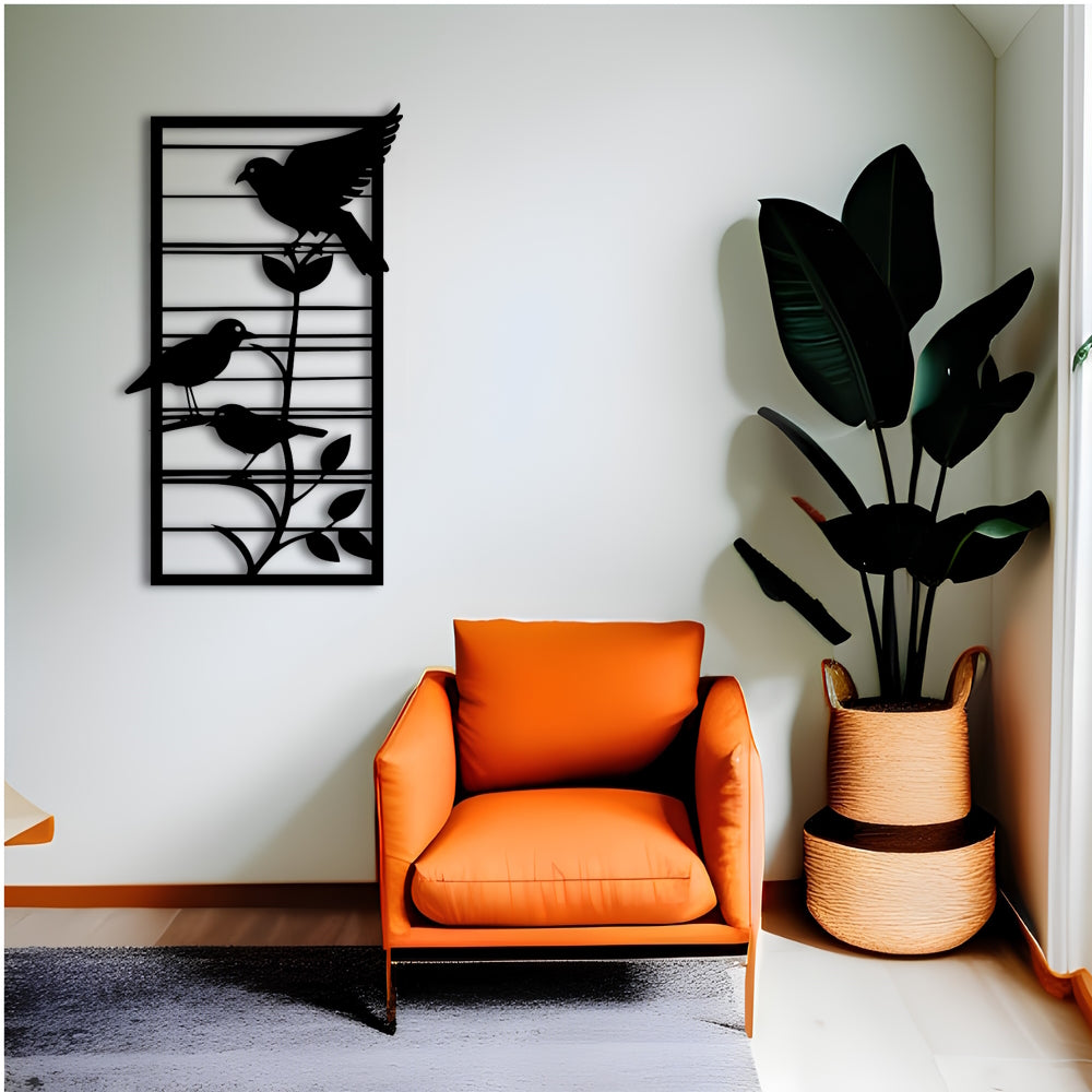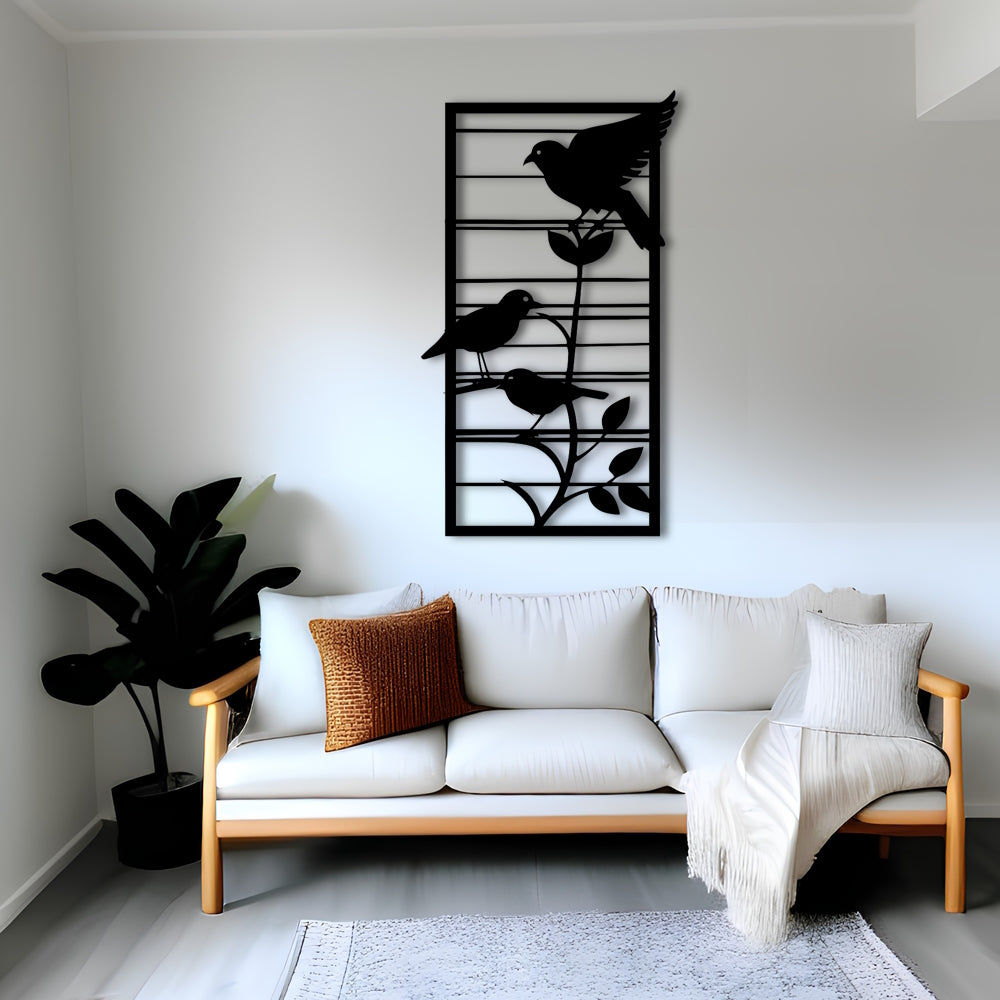 Bring the elegance of Art Nouveau to your home with this stunning metal wall art featuring a couple of birds perched on a tree branch. The intricate steel window mullions add a touch of industrial flair, while the natural beauty of the birds and tree branch create a serene and calming atmosphere. This piece is perfect for adding a unique touch to your living room, bedroom, or outdoor space.