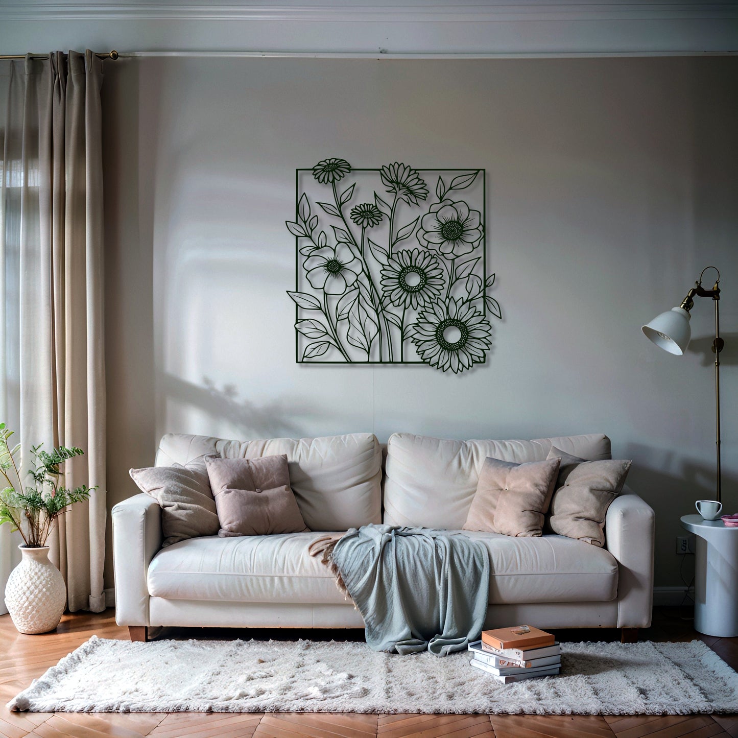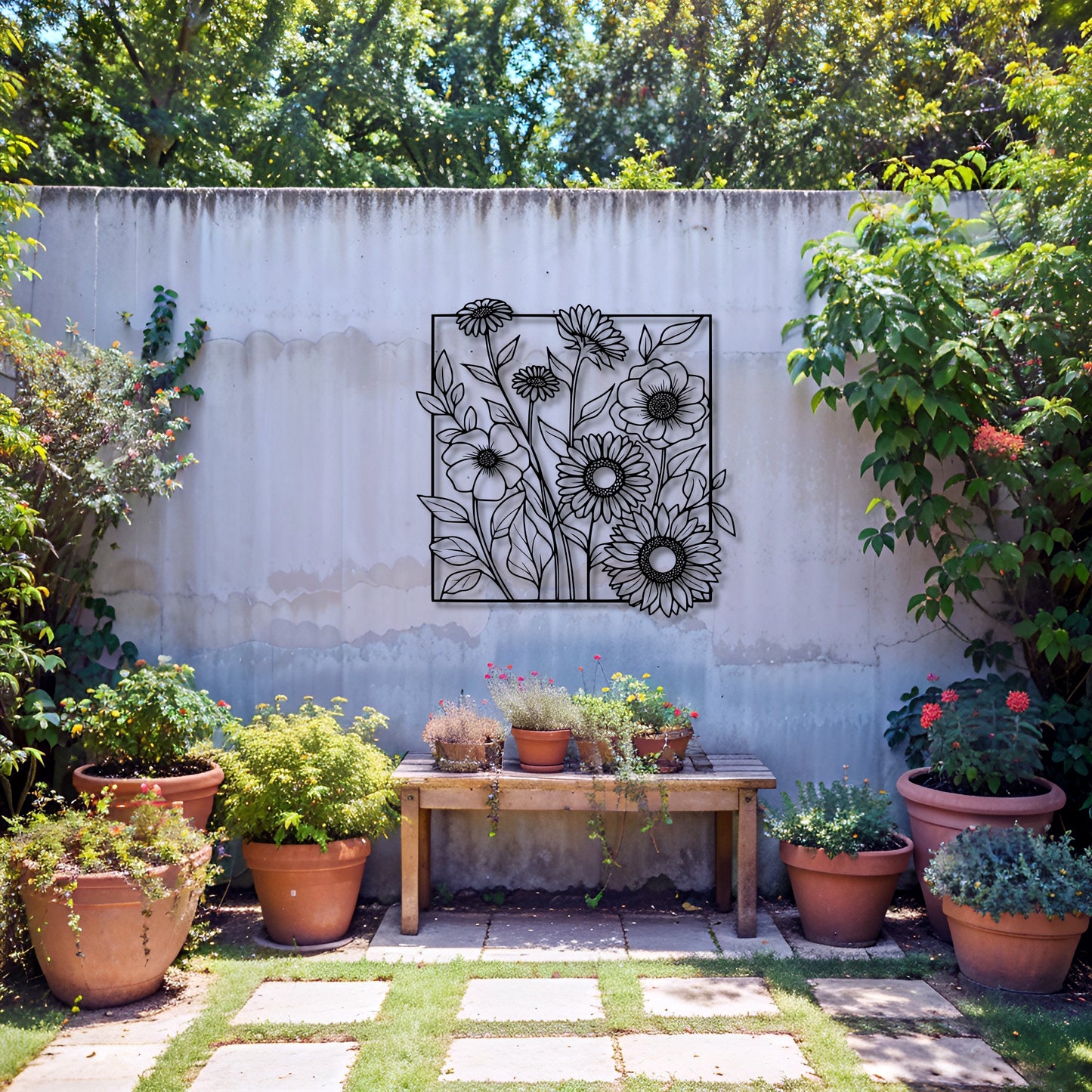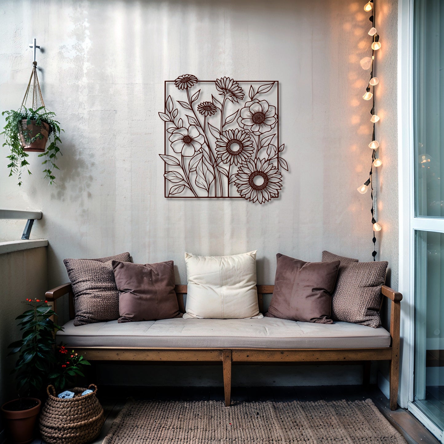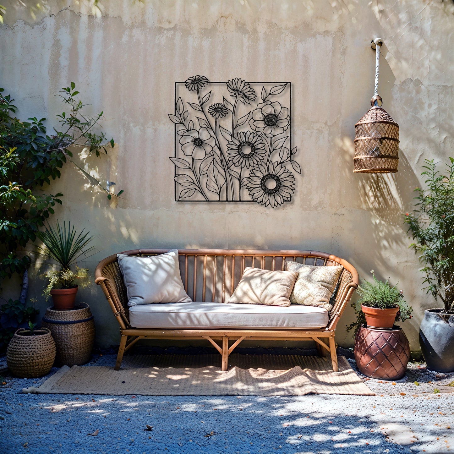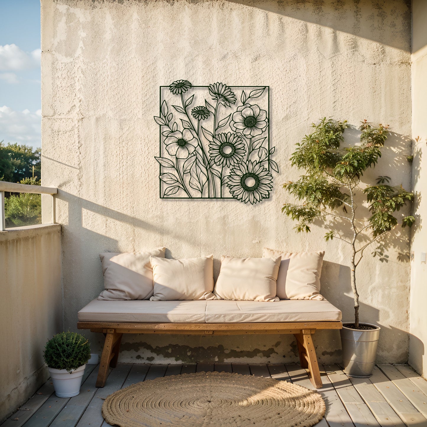 Transform your walls with this Square Floral Metal Wall Art, featuring a beautiful arrangement of flowers and leaves framed in a sleek square design. This handcrafted steel piece is perfect for adding a touch of natural beauty to living rooms, bedrooms, patios, or garden spaces.