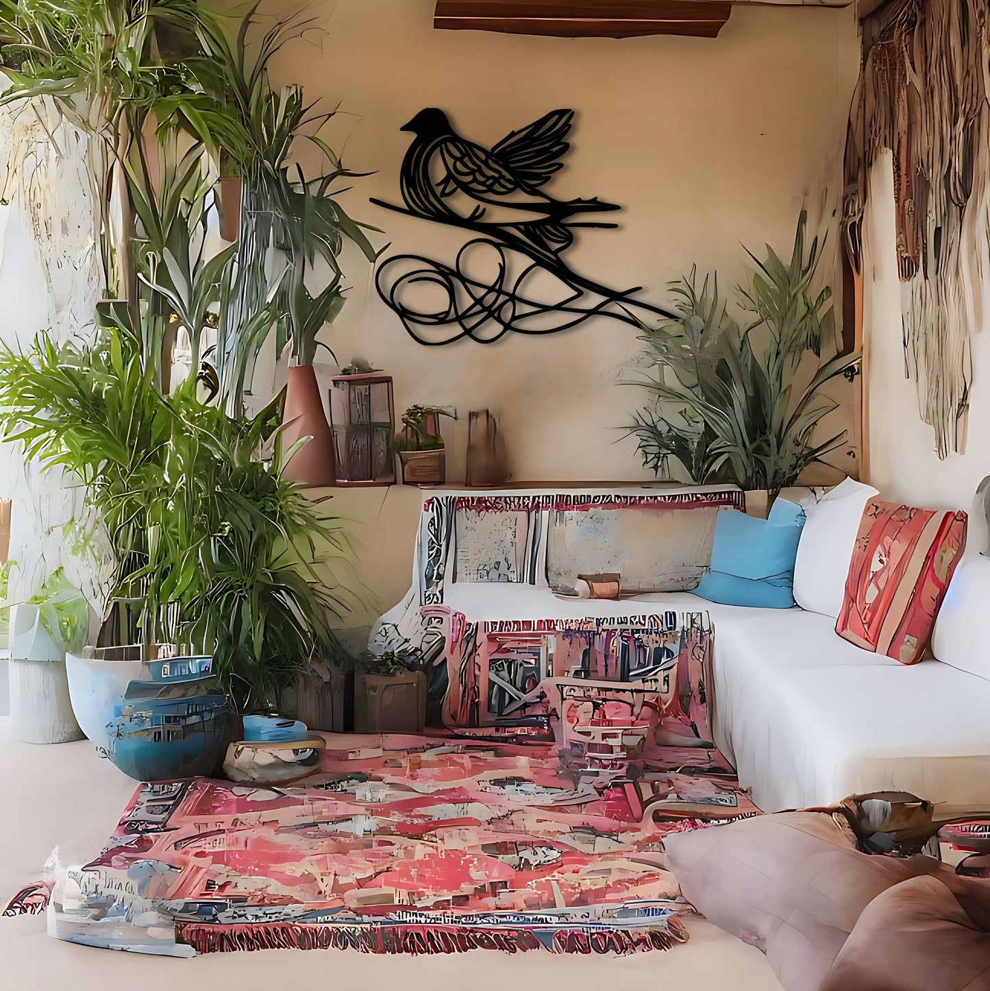 Bring a touch of Caravaggio-inspired art to your home with our stunning Bird on a Branch Metal Wall Art. The art nouveau design features a beautiful bird perched on a branch, crafted with intricate details and flowing lines that capture the essence of this iconic artistic style. The piece makes for a beautiful bohemian wall art that perfectly complements global-inspired aesthetics decor.