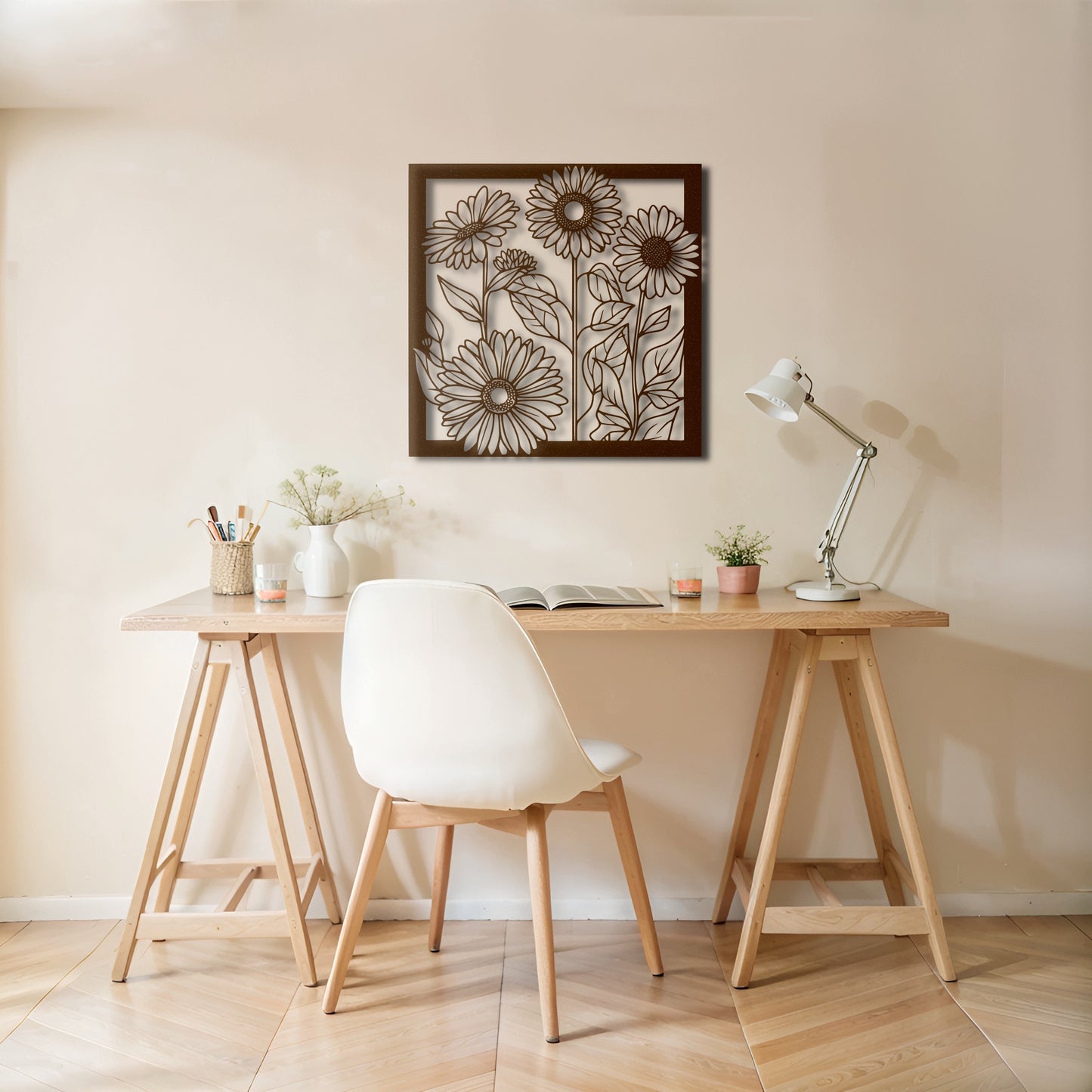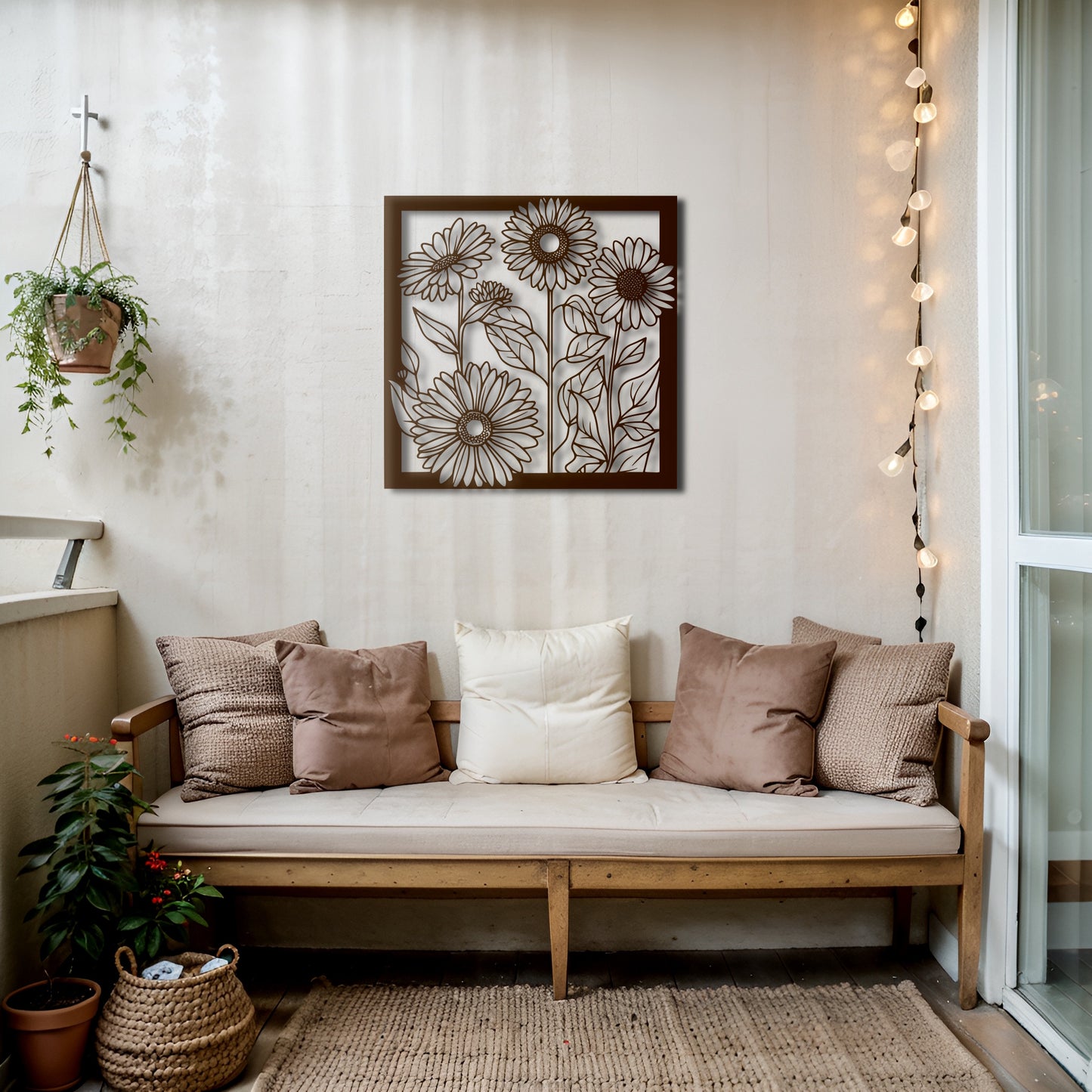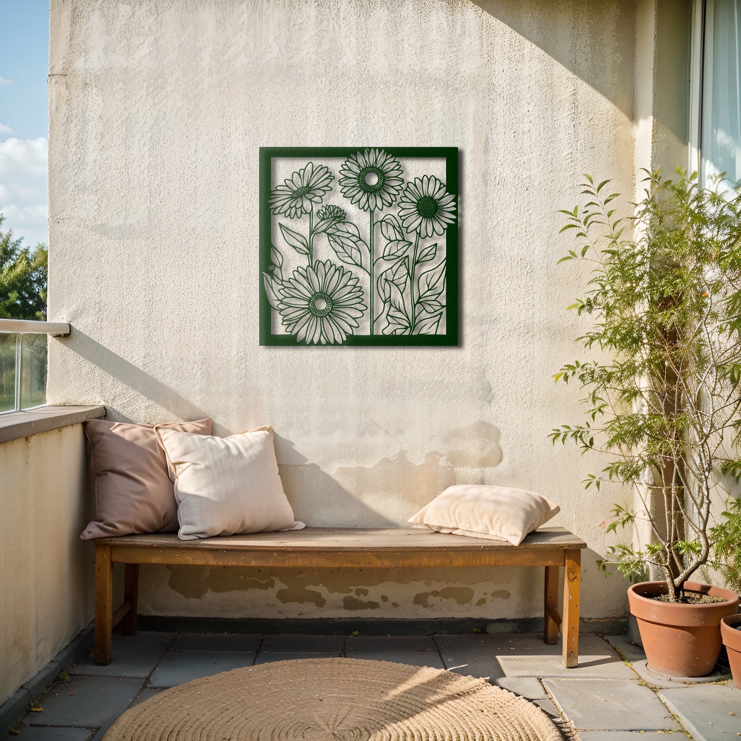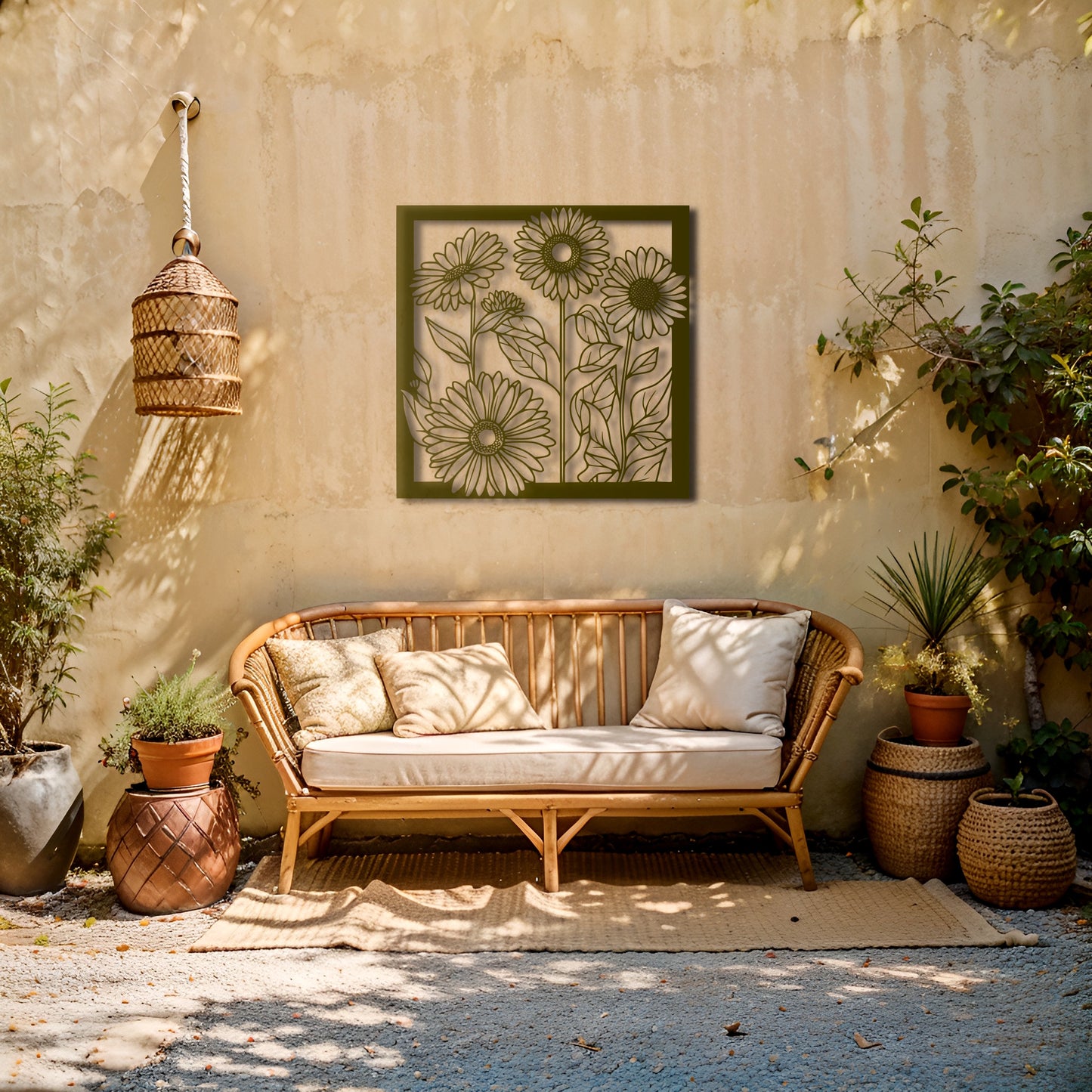 Add a modern yet timeless touch to your space with this Split Panel Sunflower Metal Wall Art. Featuring a bold sunflower design divided across two symmetrical panels, this handcrafted steel artwork is perfect for both indoor and outdoor use. Whether placed in your living room, patio, or garden, this unique piece will brighten any space with its charming floral motif.