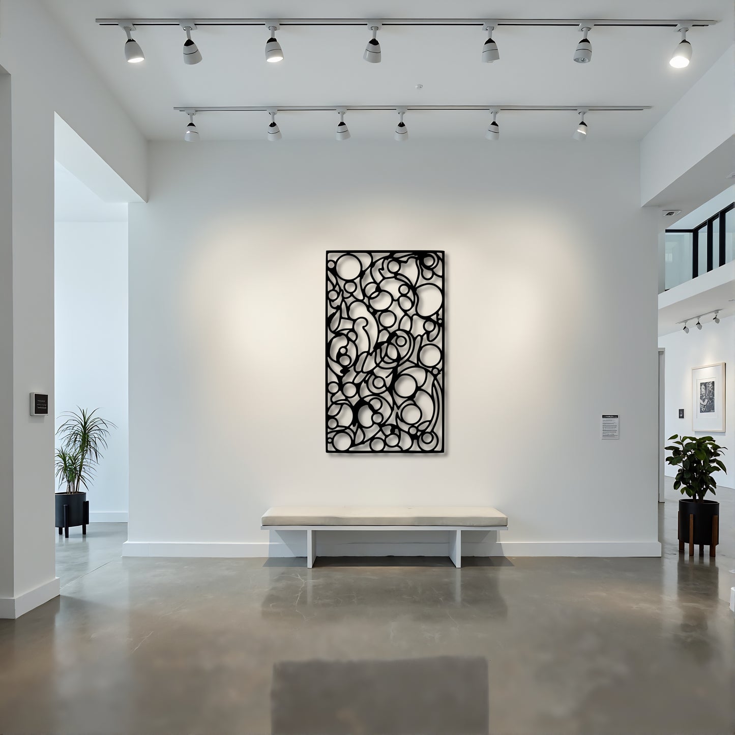 A stunning abstract metal panel with interconnected circular and flowing shapes, symbolizing movement, energy, and organic harmony.