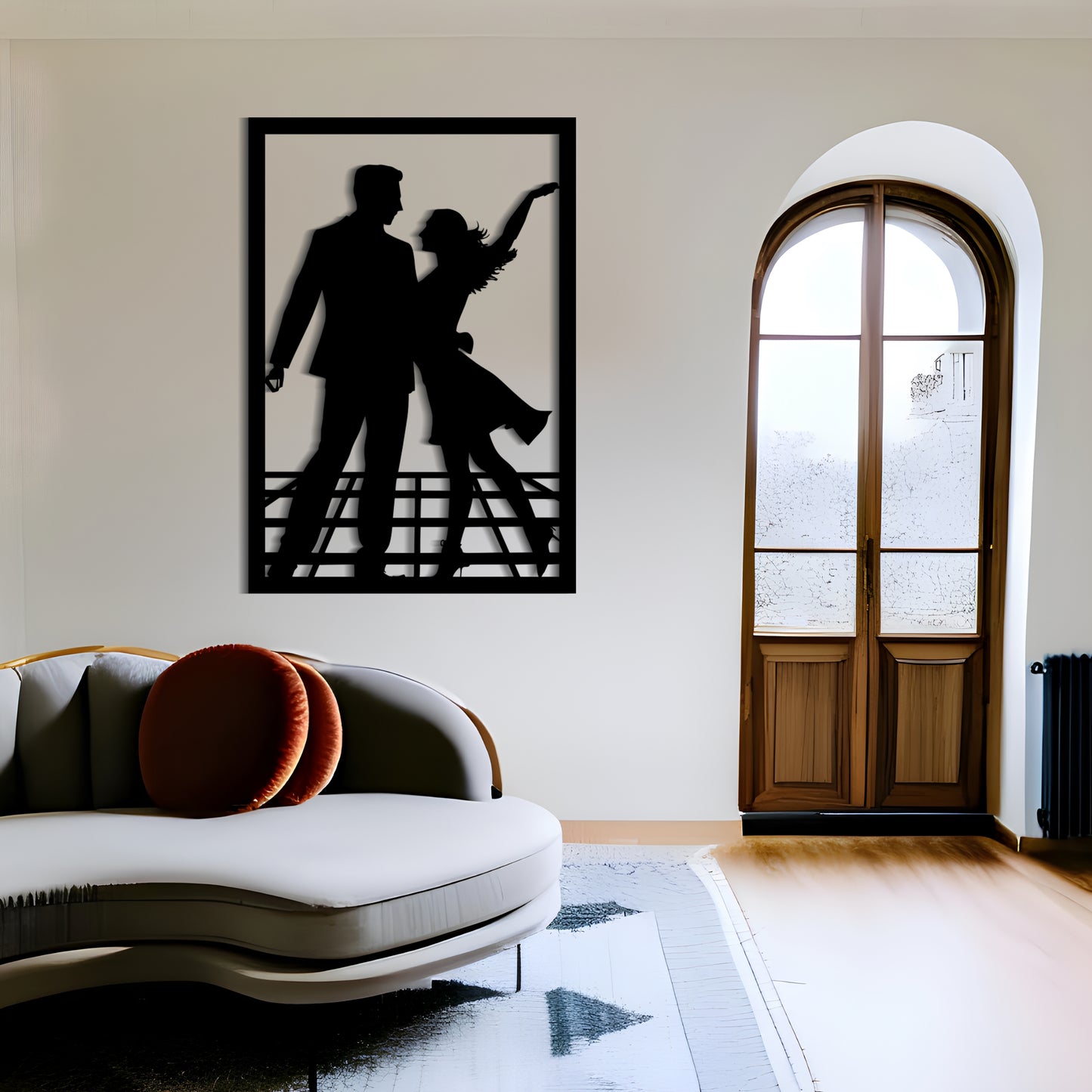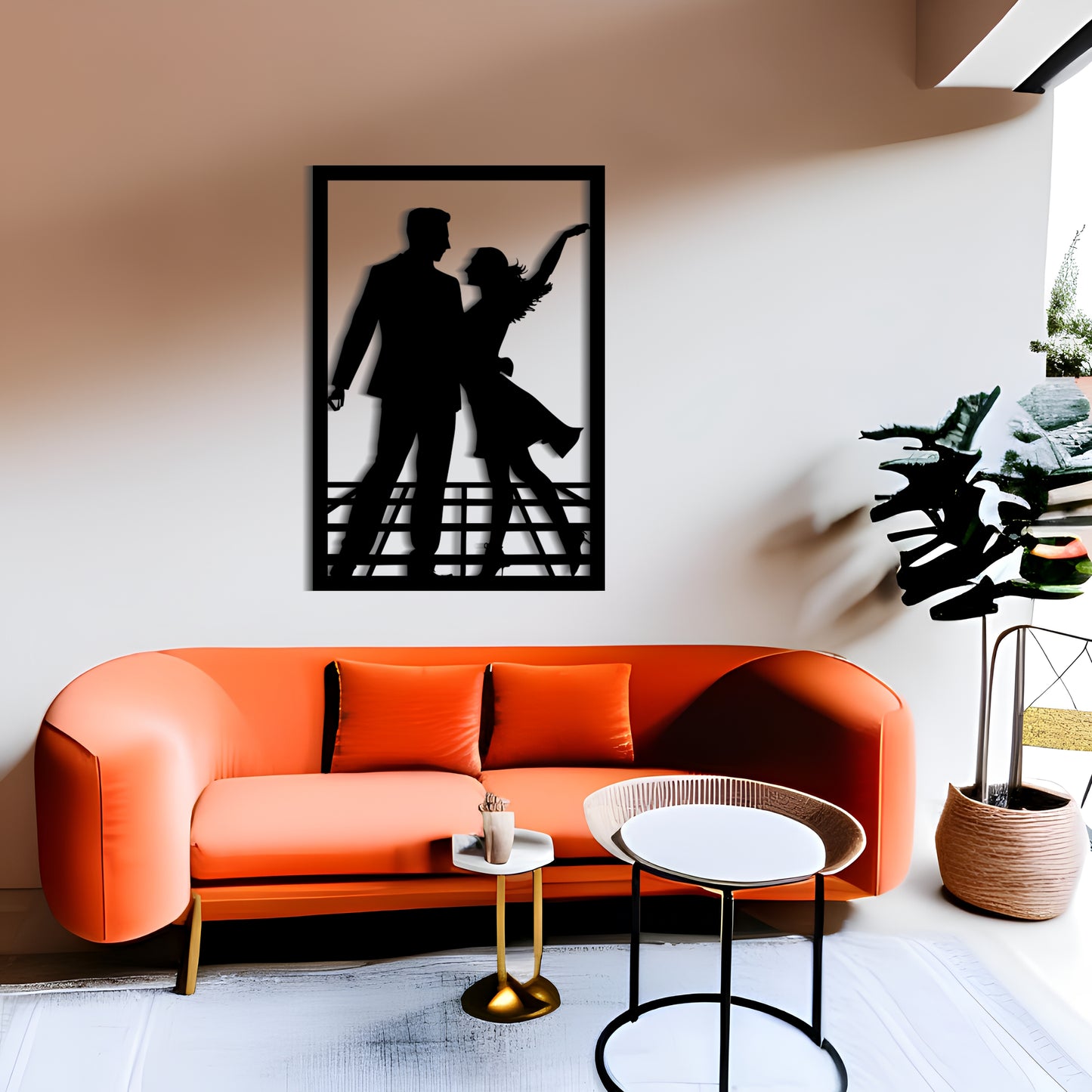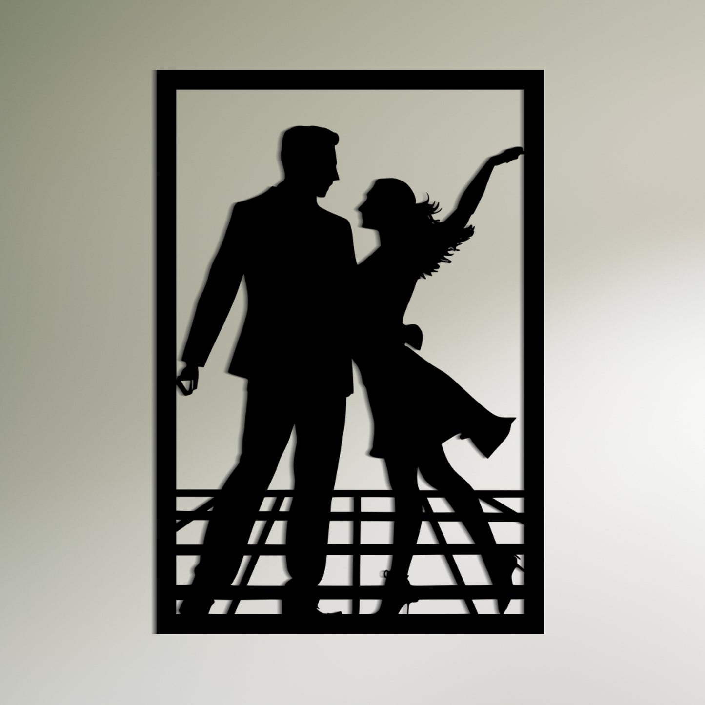 This charming metal wall art features a simplistic yet eye-catching design of a man and a woman dancing to jazz music. The cartoonish silhouette evokes feelings of delight and happiness and will add a playful touch to any room. The artwork is expertly crafted and made with high-quality metal, ensuring its durability and longevity. Whether you're looking for an engagement ceremony gift or a decorative piece for your home, this metal wall art is a perfect choice.