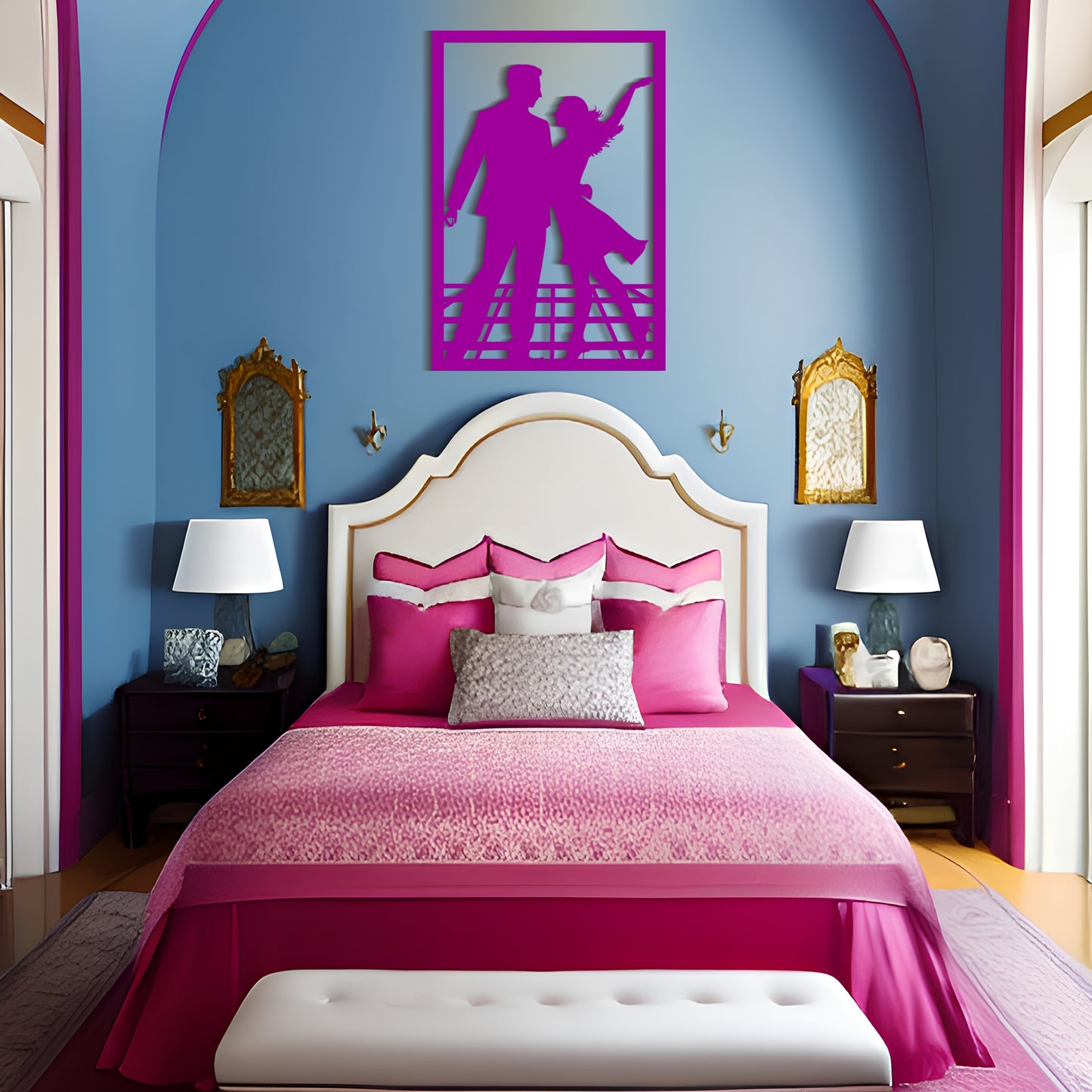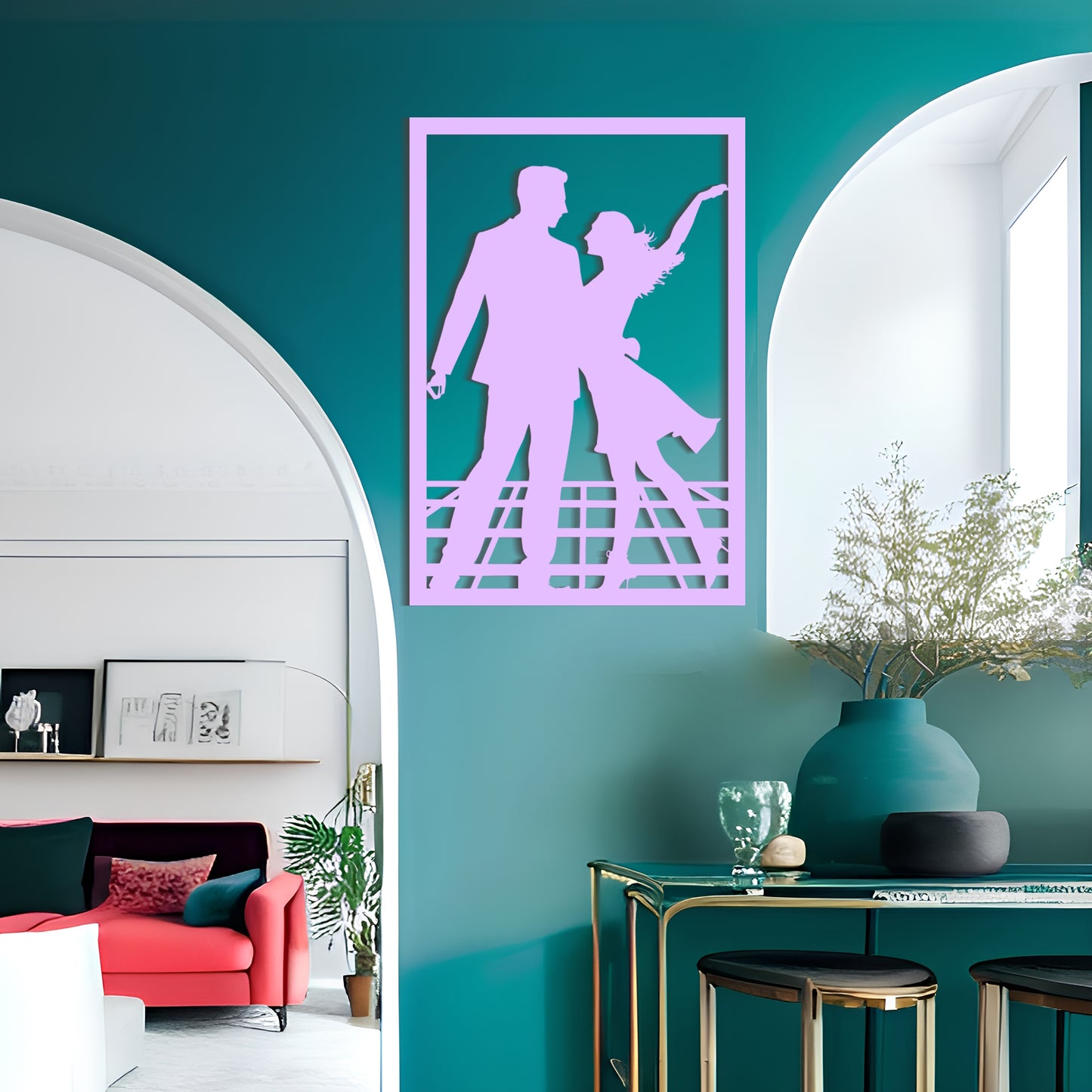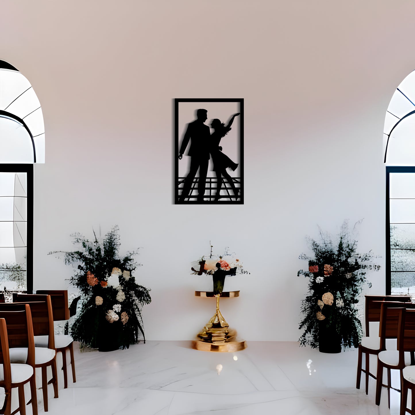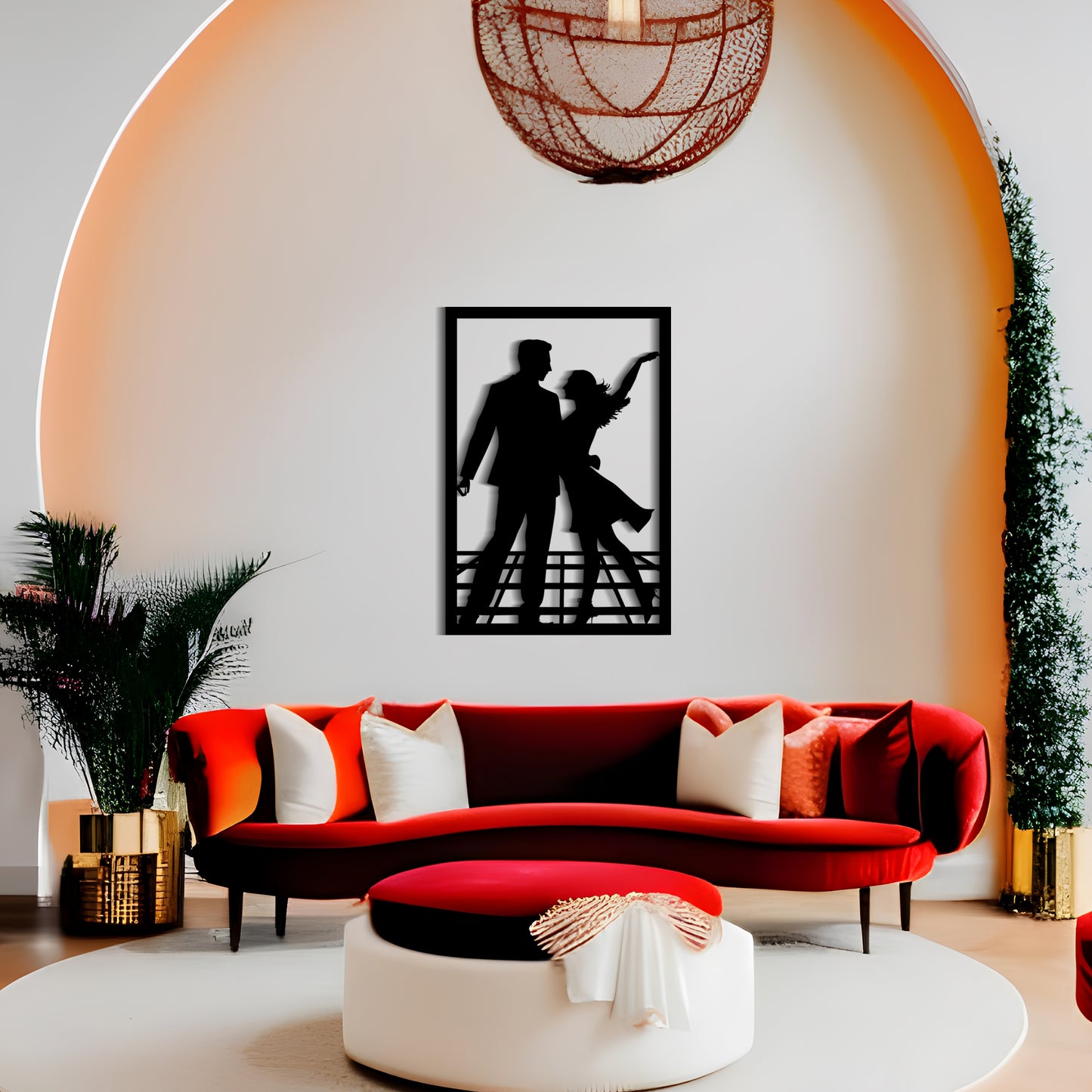 This charming metal wall art features a simplistic yet eye-catching design of a man and a woman dancing to jazz music. The cartoonish silhouette evokes feelings of delight and happiness and will add a playful touch to any room. The artwork is expertly crafted and made with high-quality metal, ensuring its durability and longevity. Whether you're looking for an engagement ceremony gift or a decorative piece for your home, this metal wall art is a perfect choice.