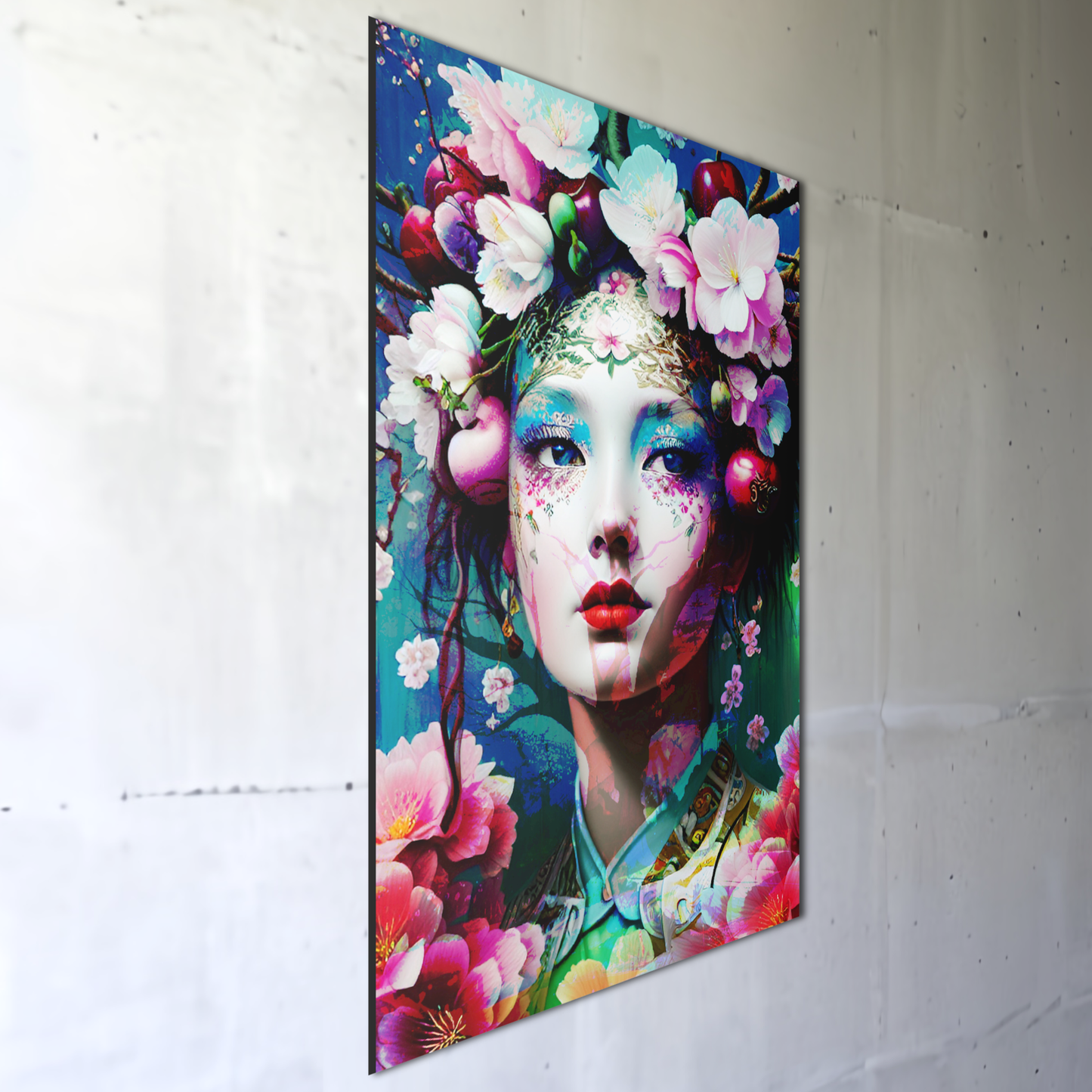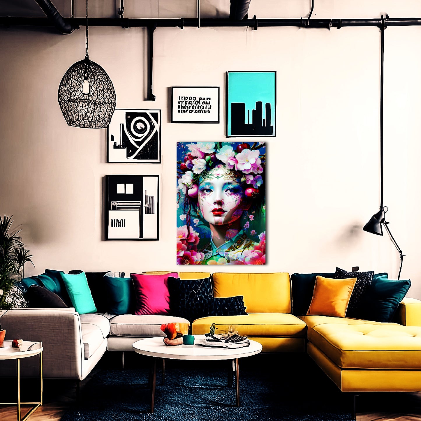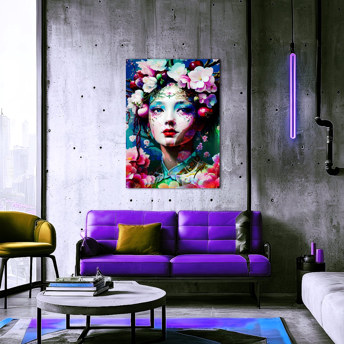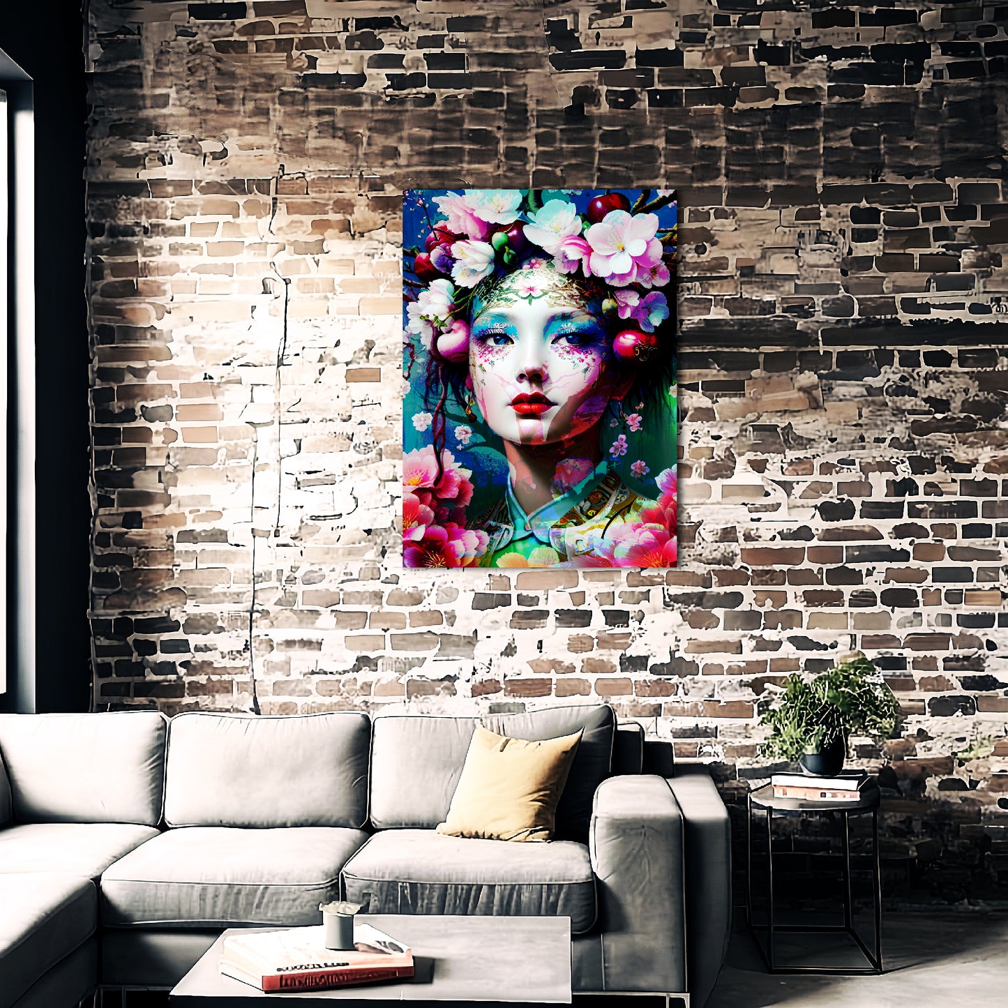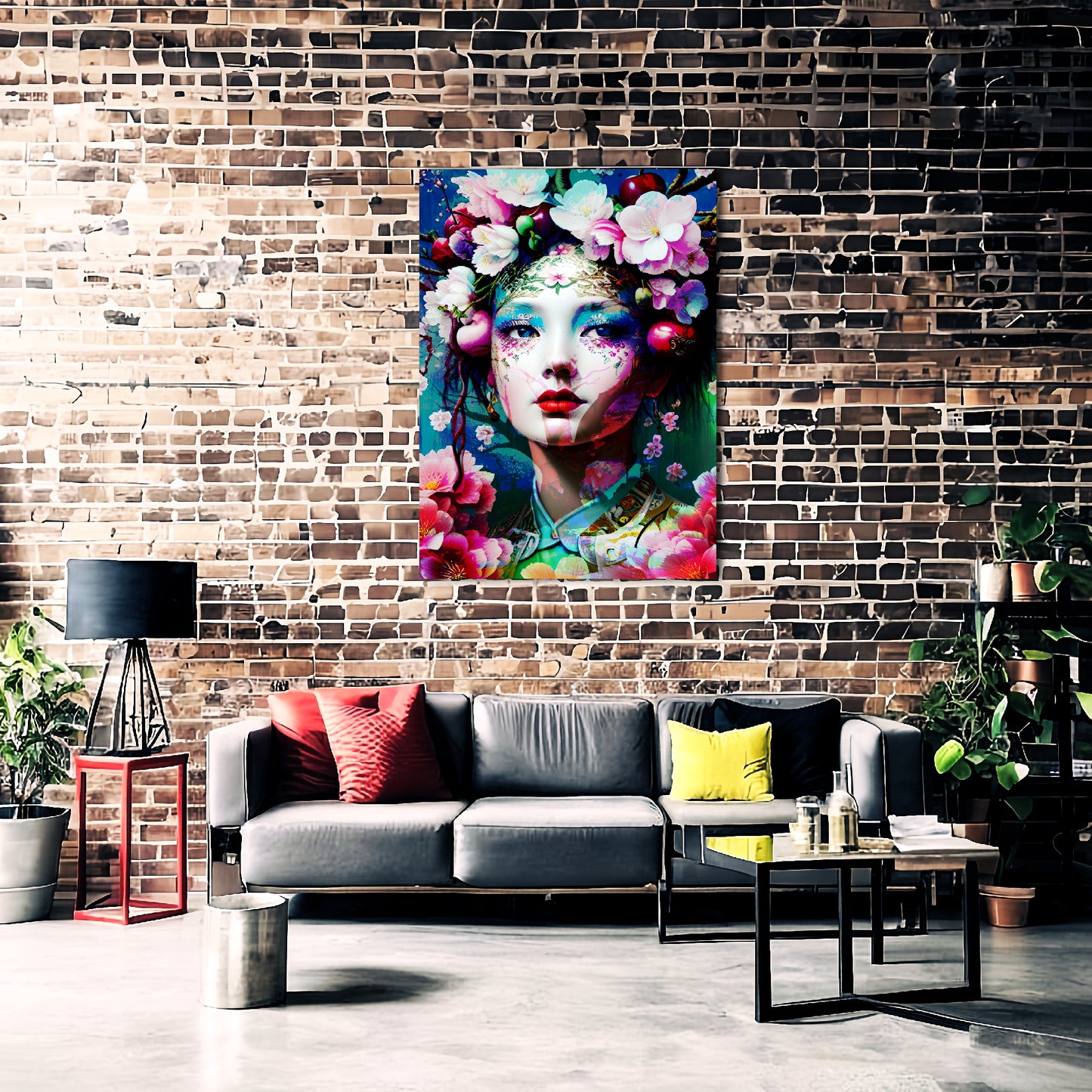 Step into a world of captivating beauty with our "Enchanted Geisha" metal poster. This stunning digital artwork showcases a glamorous and sexy geisha, adorned with colorful accessories and flowers in her hair. Her porcelain white face is a canvas of artistry, showcasing the intricate details that define pop surrealism. The fusion of oriental fantasy and exquisite digital art creates a visual masterpiece that will mesmerize any viewer. Our metal poster captures the vibrant colors and fine details of the artwork, offering a high-quality and durable display for your wall. Add a touch of elegance and intrigue to your space with this enchanting geisha artwork.