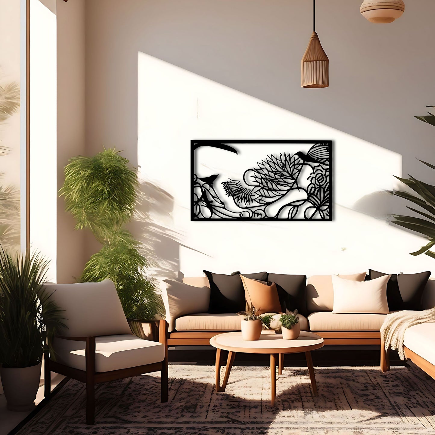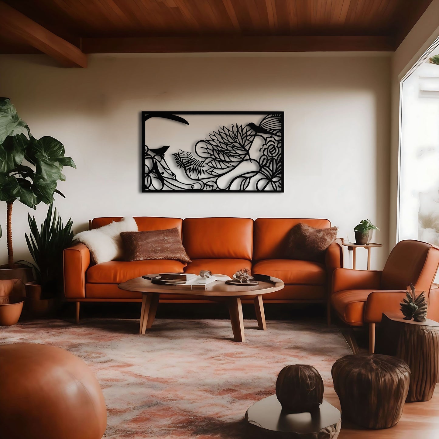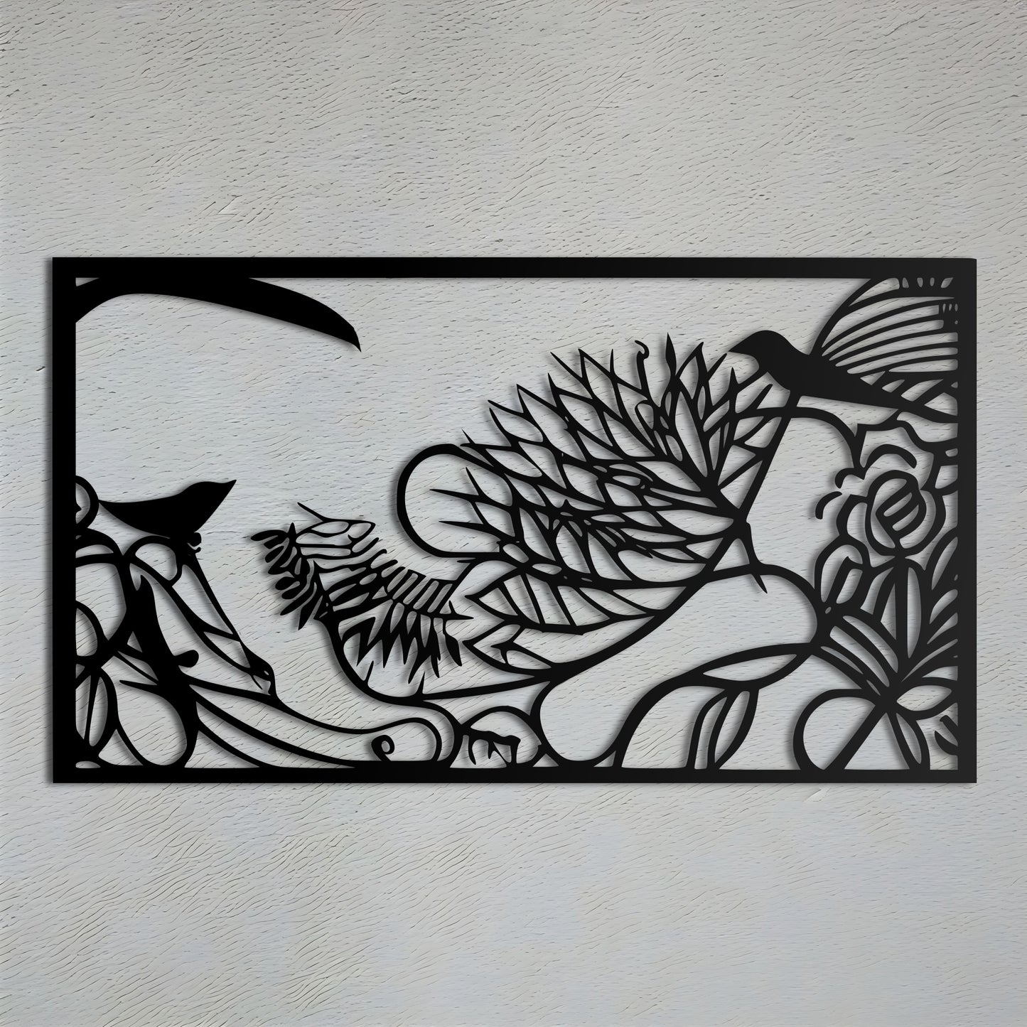 Add a touch of nature to your home or office with our "Flame Fern Birds on Branch" metal wall art. Inspired by the beauty of nature, this piece features a pair of birds perched on a branch adorned with flame ferns. The intricate line art design adds a touch of elegance to any space.