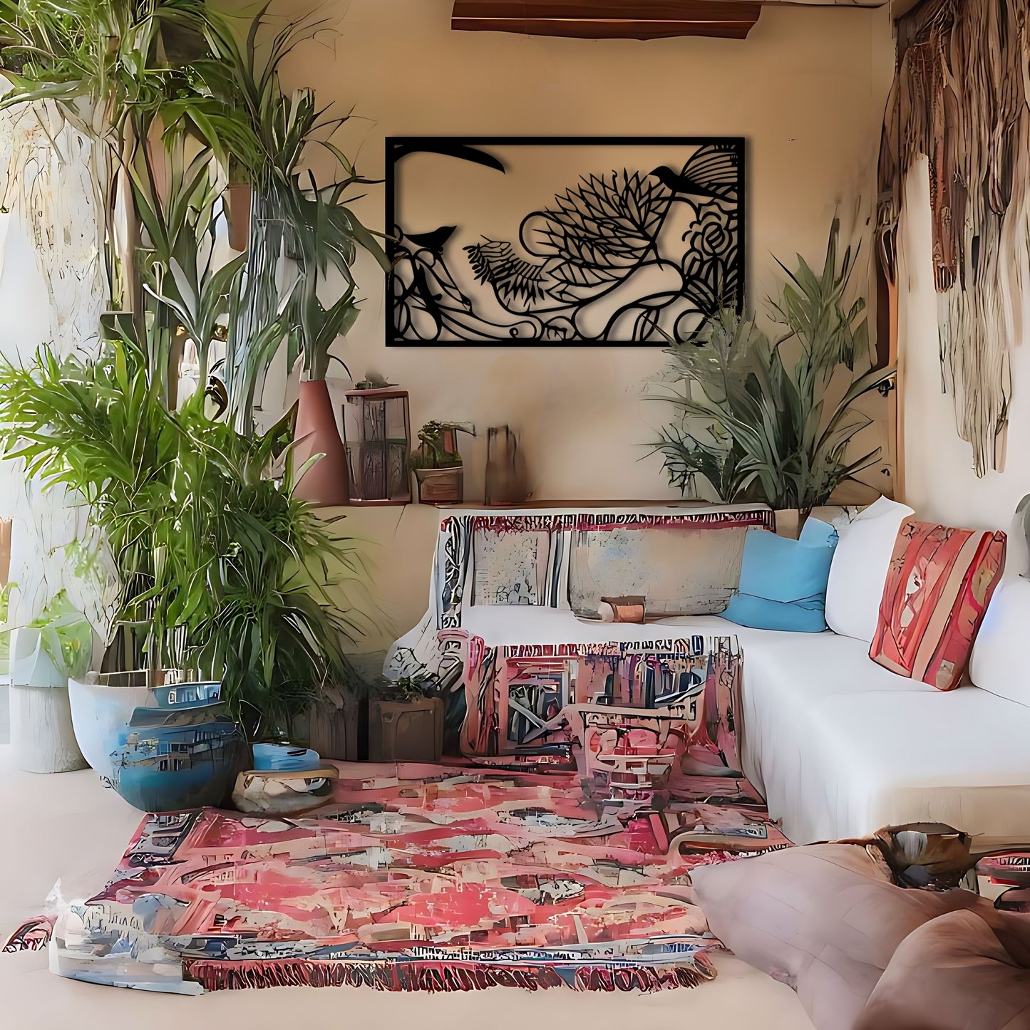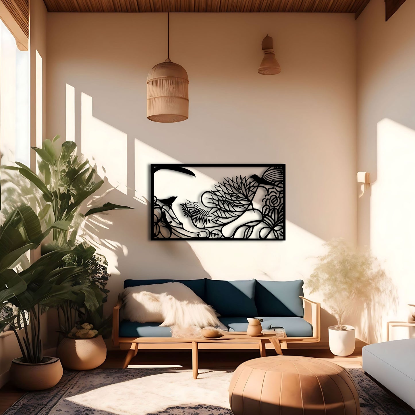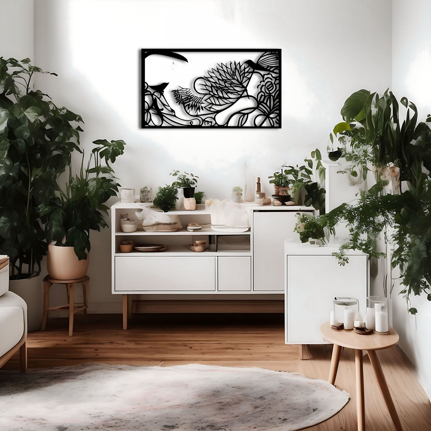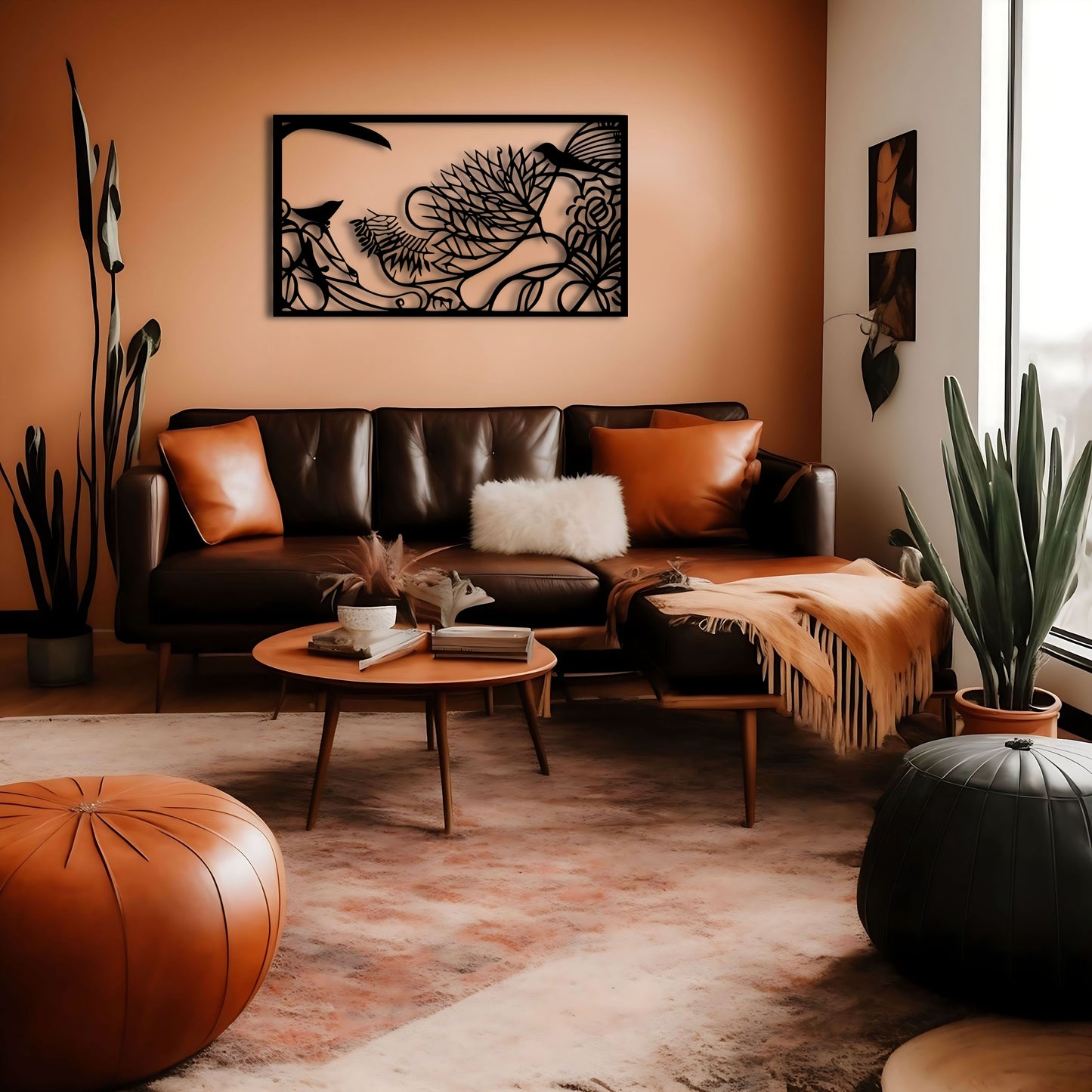 Add a touch of nature to your home or office with our "Flame Fern Birds on Branch" metal wall art. Inspired by the beauty of nature, this piece features a pair of birds perched on a branch adorned with flame ferns. The intricate line art design adds a touch of elegance to any space.