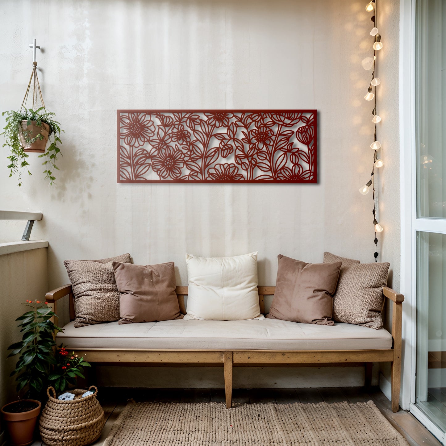 Add a touch of elegance to your home or garden with this stunning Floral Metal Wall Art Panel, meticulously handcrafted from durable steel. This piece features intricate flower patterns that bring a sense of natural beauty to any space. Perfect for both indoor and outdoor settings, this unique design is ideal for living rooms, patios, or entryways.