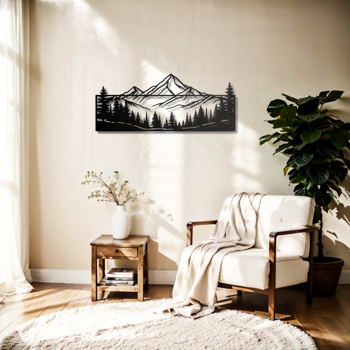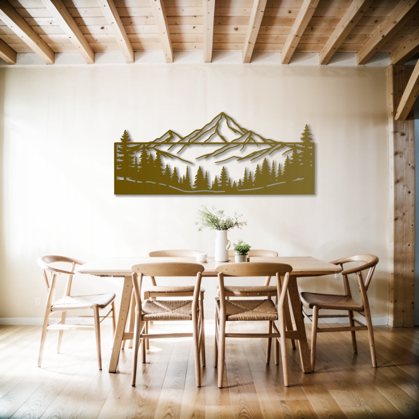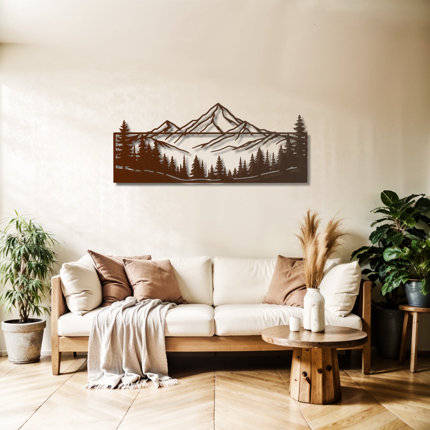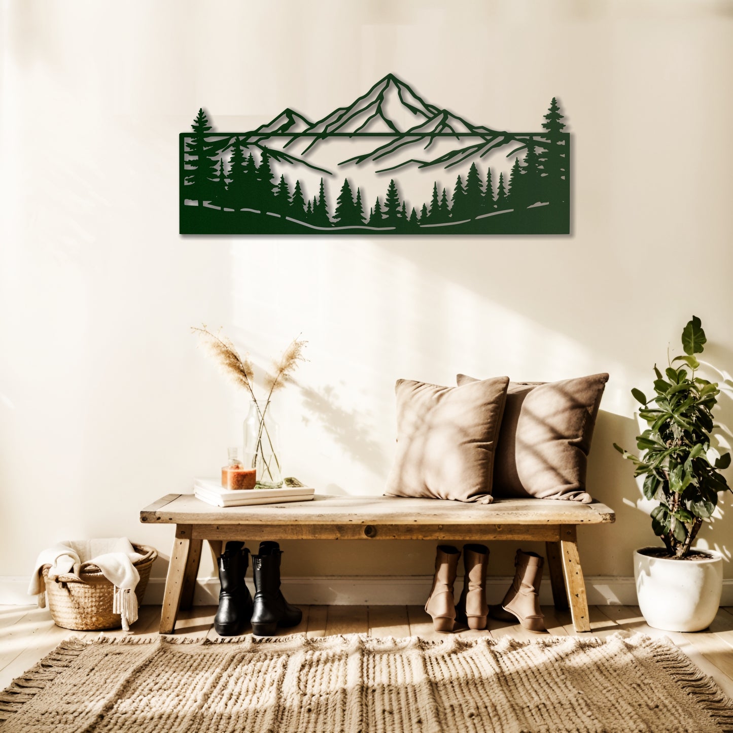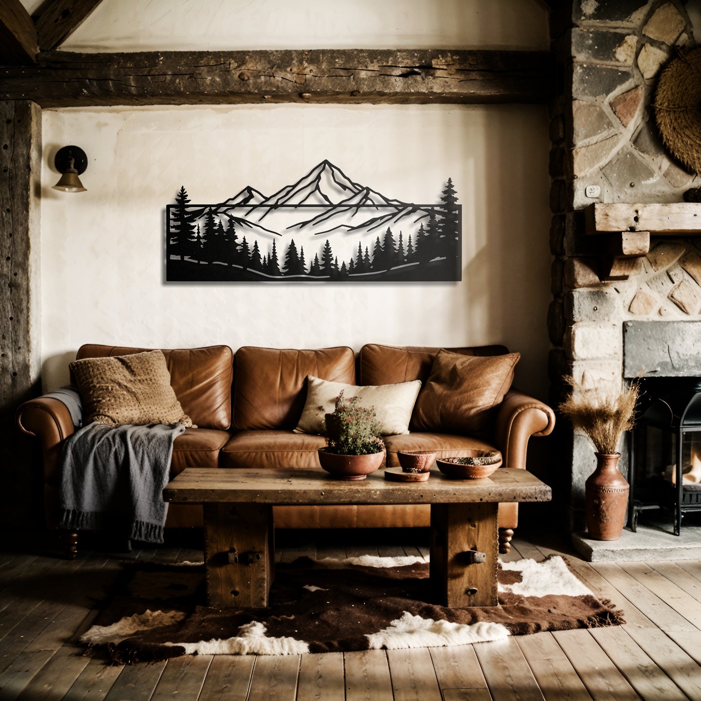Add a rustic yet modern touch to your home with this framed metal wall art featuring a stunning mountain and forest silhouette. Perfect for nature lovers, this piece is a striking way to bring the beauty of the outdoors inside. 🏔️🌲