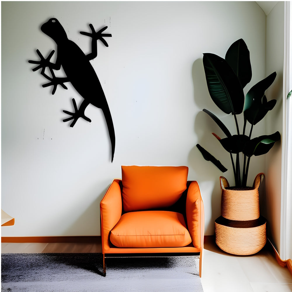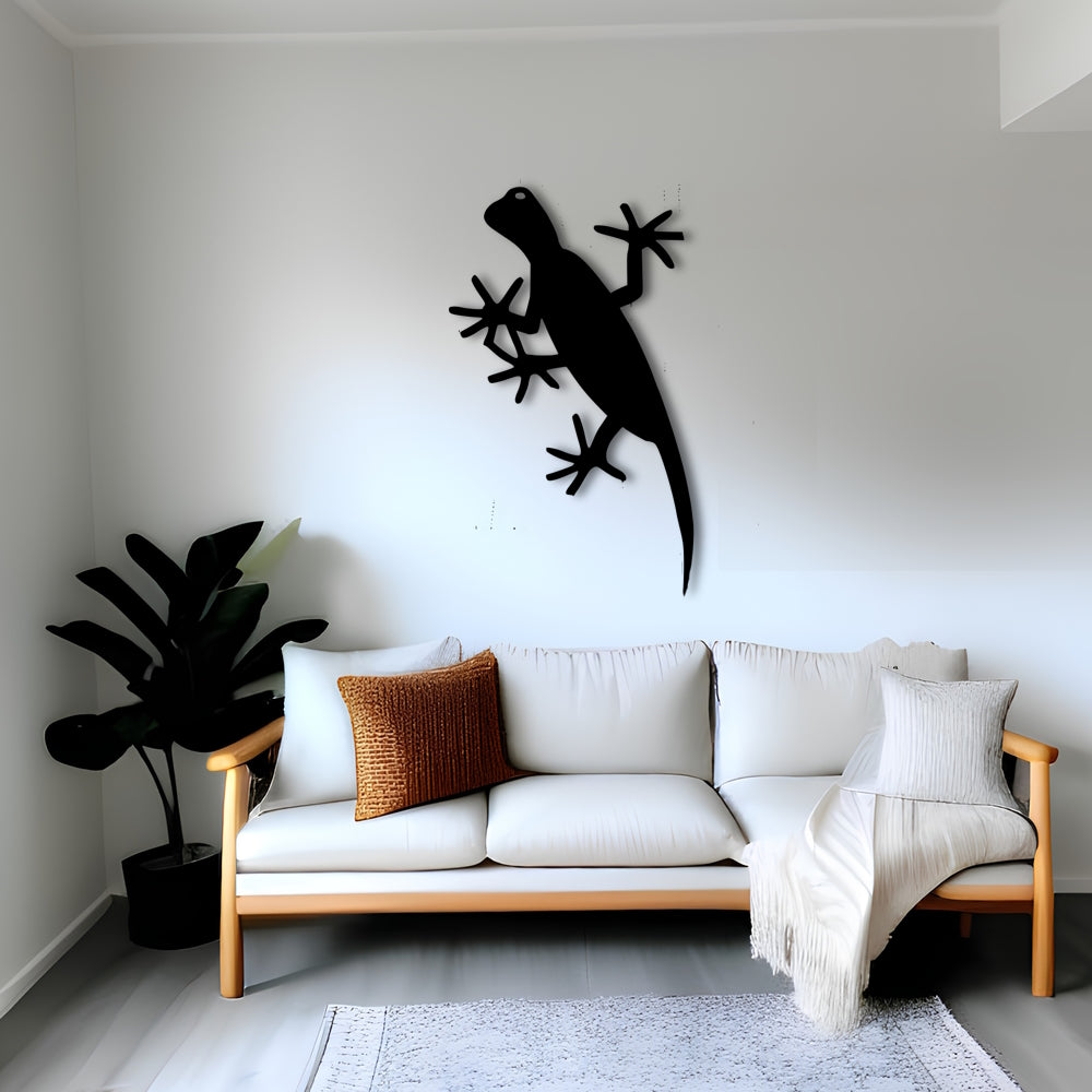 Add a touch of Australian tonalism to your wall decor with this stunning Gecko Metal Wall Art. Featuring a stylized gecko wall climbing, this metal wall art is a perfect addition to your home. The symmetrical and optical illusion design of this wall art is sure to grab your attention. Made with durable metal, this wall art is perfect for indoor and outdoor use.