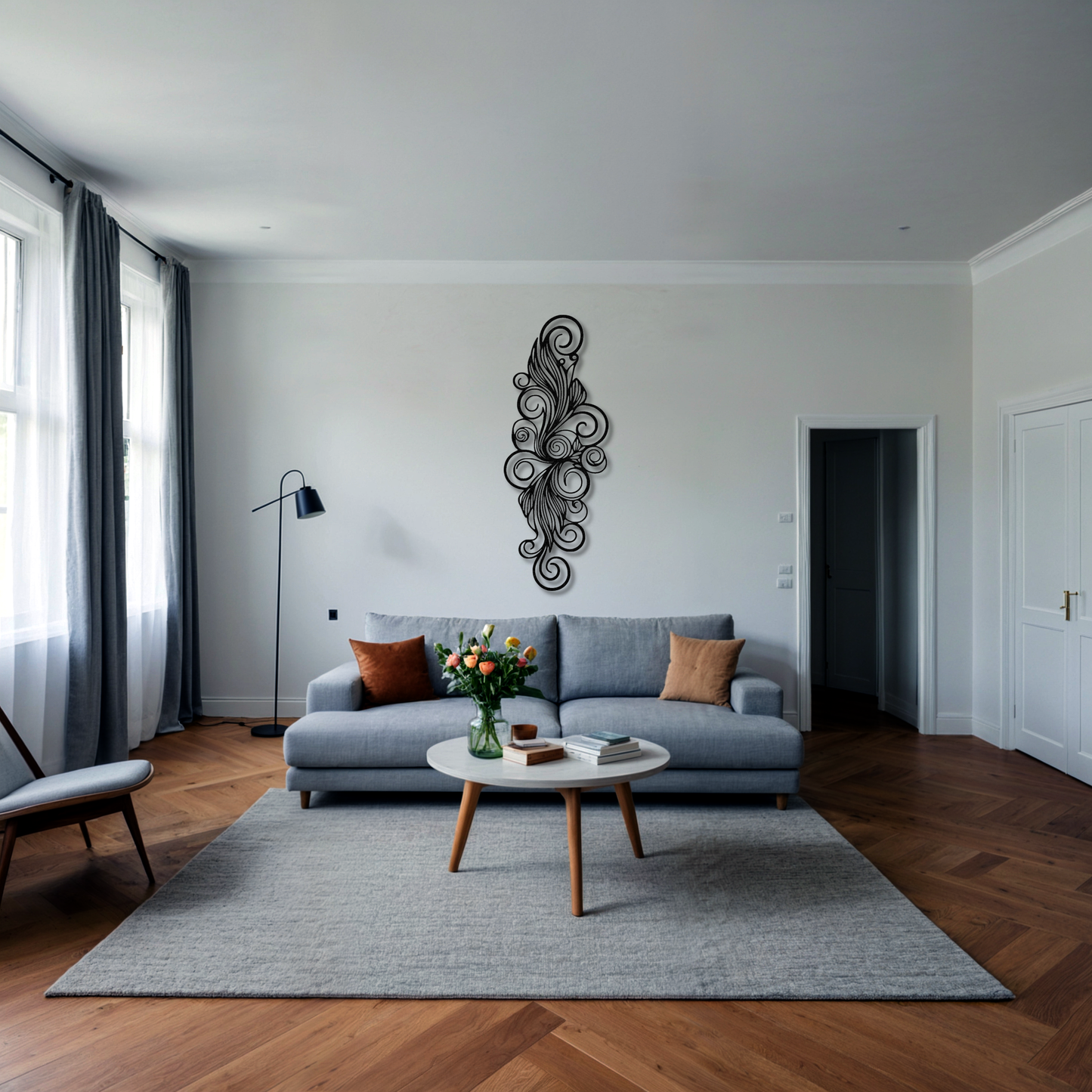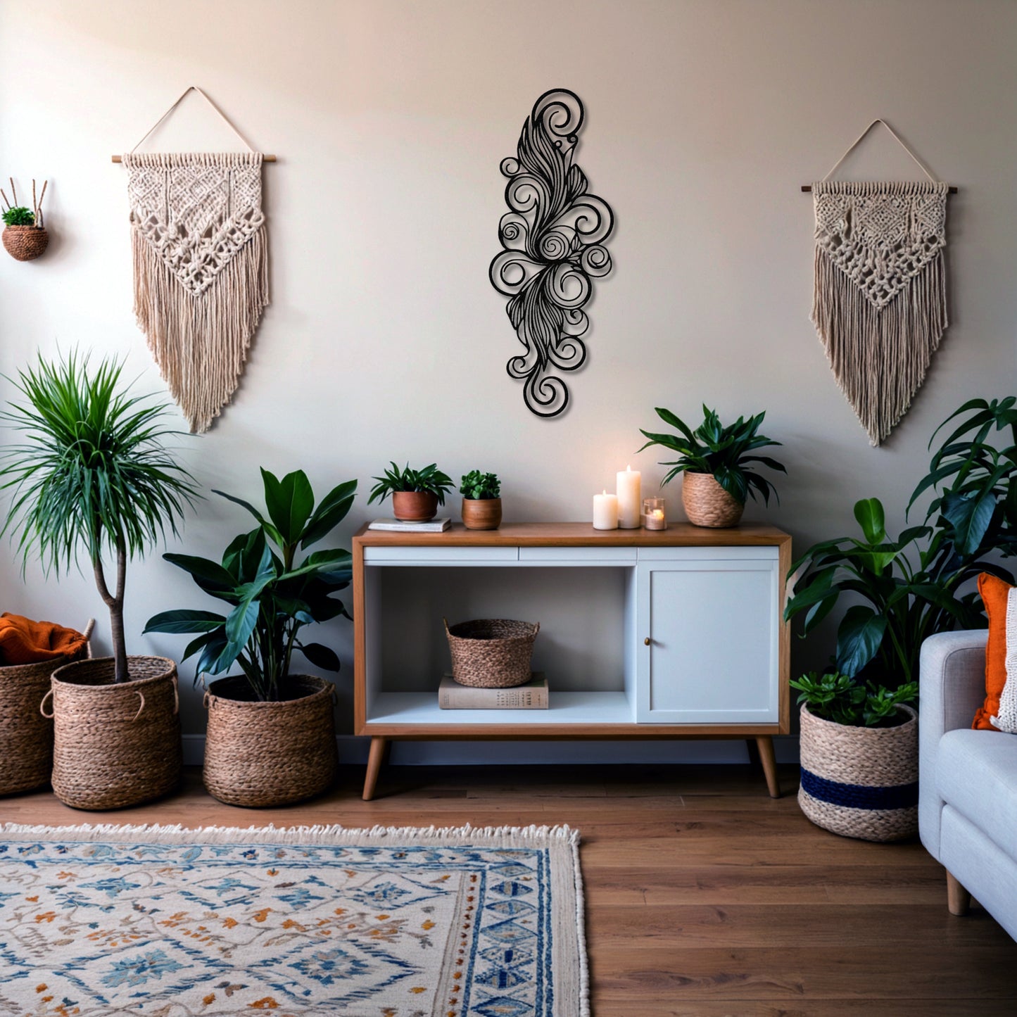Featuring flowing swirls and botanical elements, this intricate metal art piece adds a touch of nature-inspired elegance to any wall. Its graceful design is both modern and timeless.