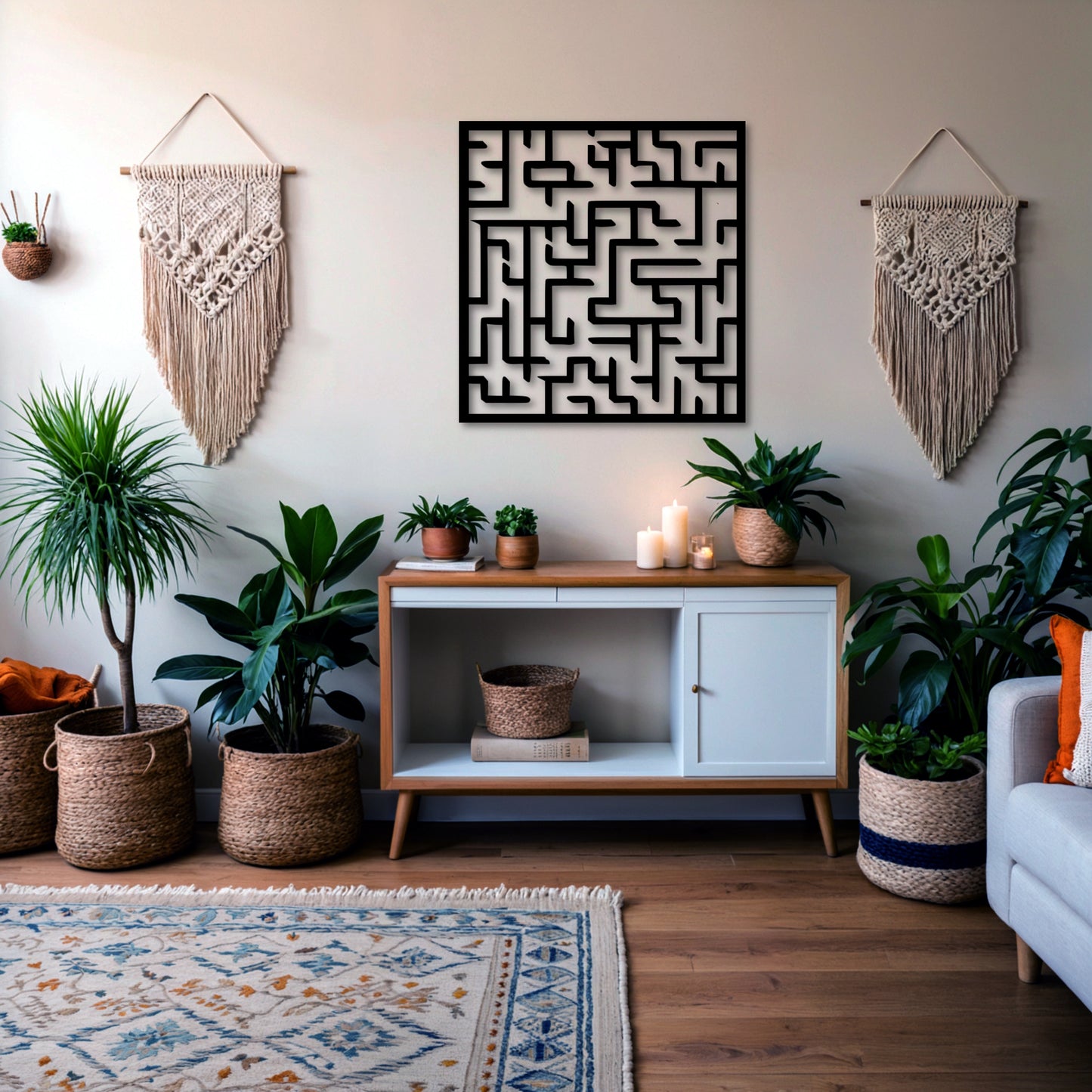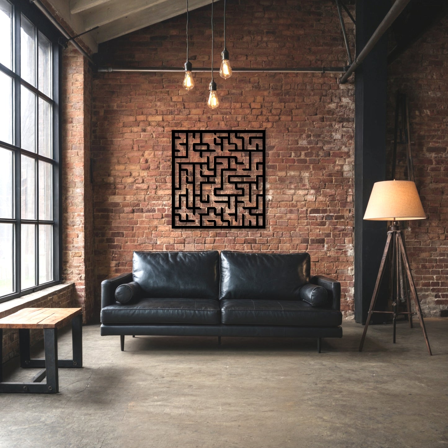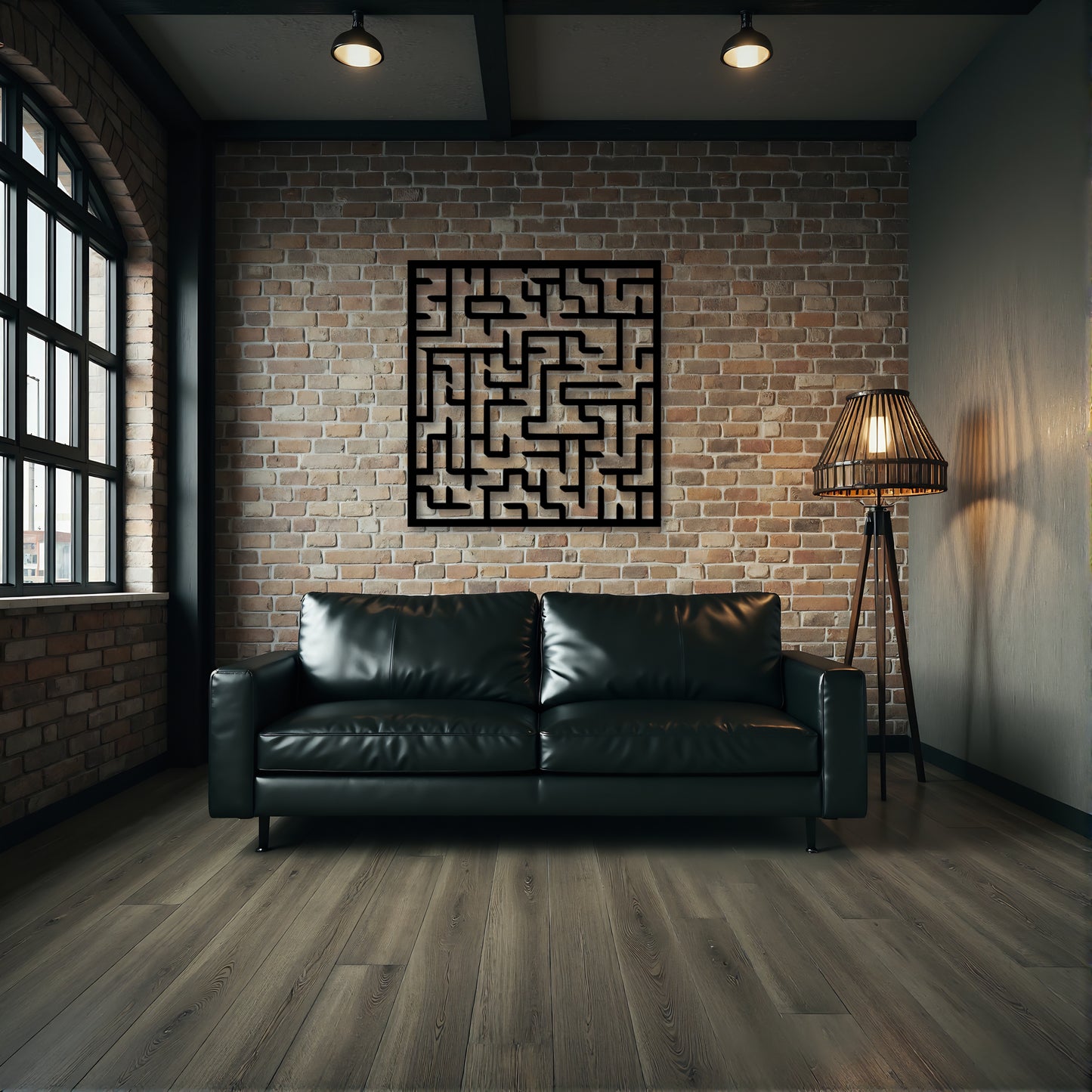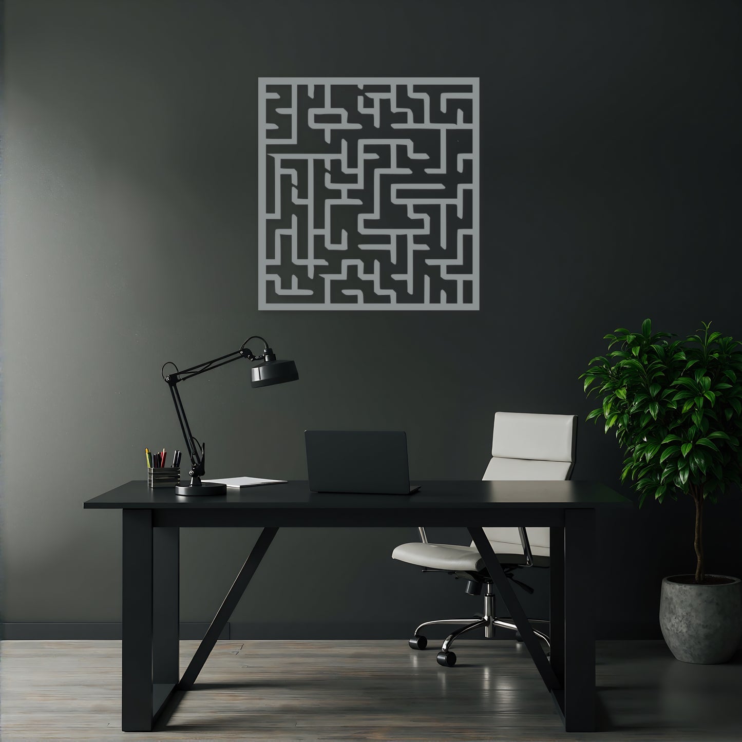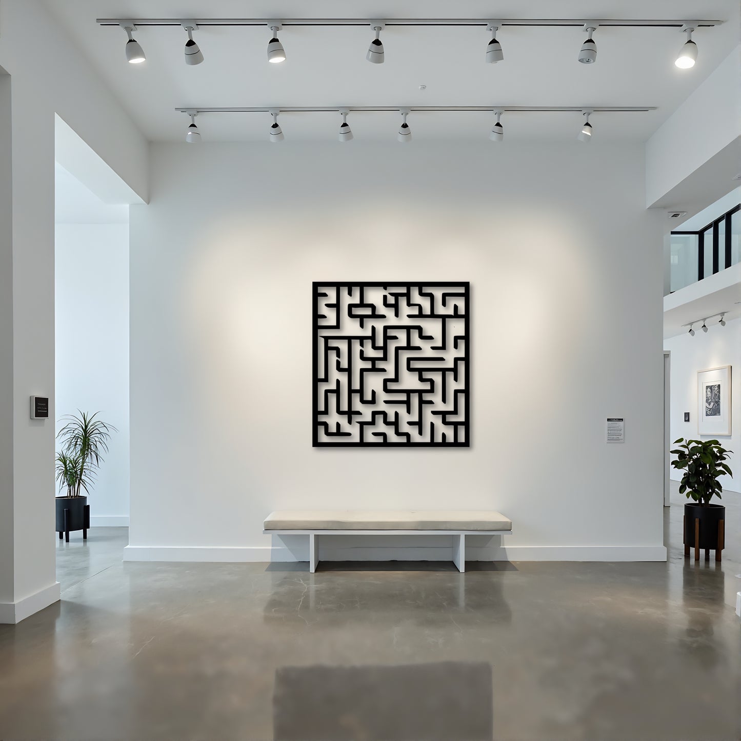 A captivating maze-inspired design, featuring sharp geometric patterns within a square frame. This modern piece adds a playful yet sophisticated touch to any space.